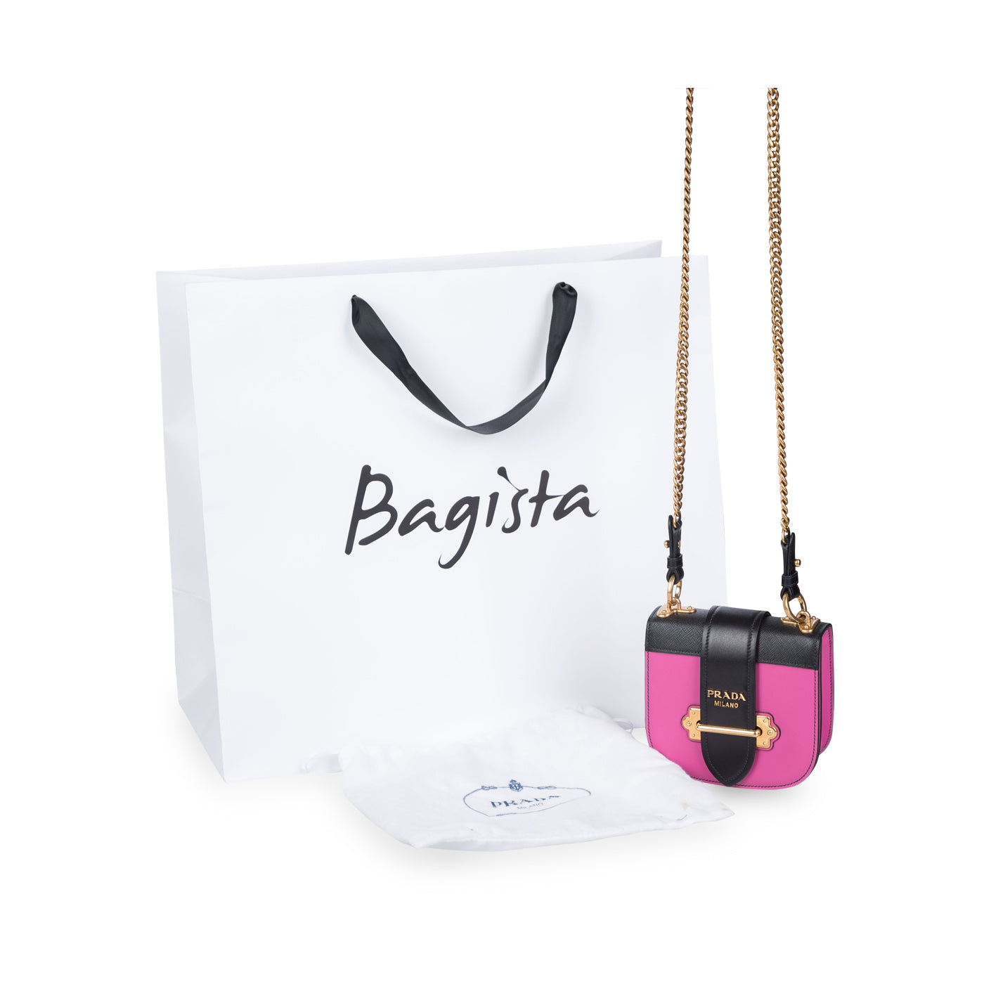 The Prada ‘Pionnière’ was first debuted as part of their fall 2016 collection and was an instant hit. The bag is compact enough to be worn cross body but has enough interior space to be worn every day, and all the Italian style you could ask for. This pink and black two-tone bag will add a fun pop of colour to any outfit.