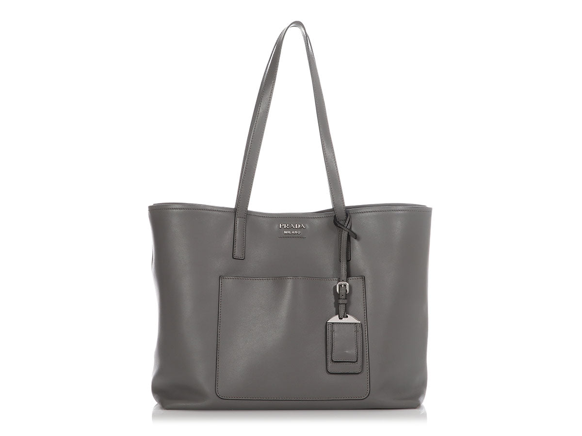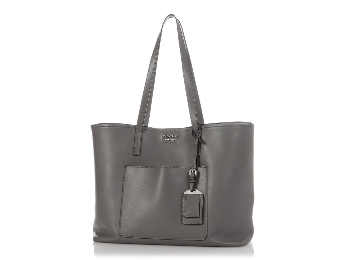 Prada’s Gray City Calf Shopping Tote is a year-round beauty in this versatile, neutral color! Made of soft-gray leather with gunmetal hardware, it has one slide pocket on the front and dual handles with a 9.75-inch drop. The top secures with a magnet and inside you’ll find a black-leather-lined interior with a matching gray-leather zipped pouch on a leash. In very good condition with a luggage tag and cards, it has light wear on the corners, light scratches throughout, a few small stains on the bottom, light wear on the pouch, and a subtle perfume smell. This roomy Prada is perfect for shopping, errands, work, or play!