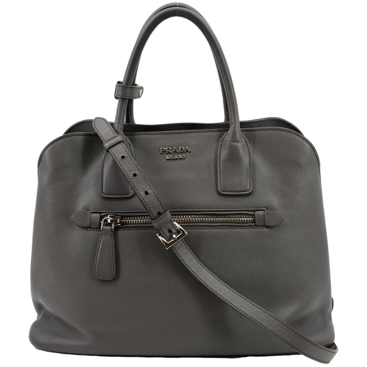 PRADA Cuir Open Promenade Saffiano LeatherTop Handle Tote Bag Grey