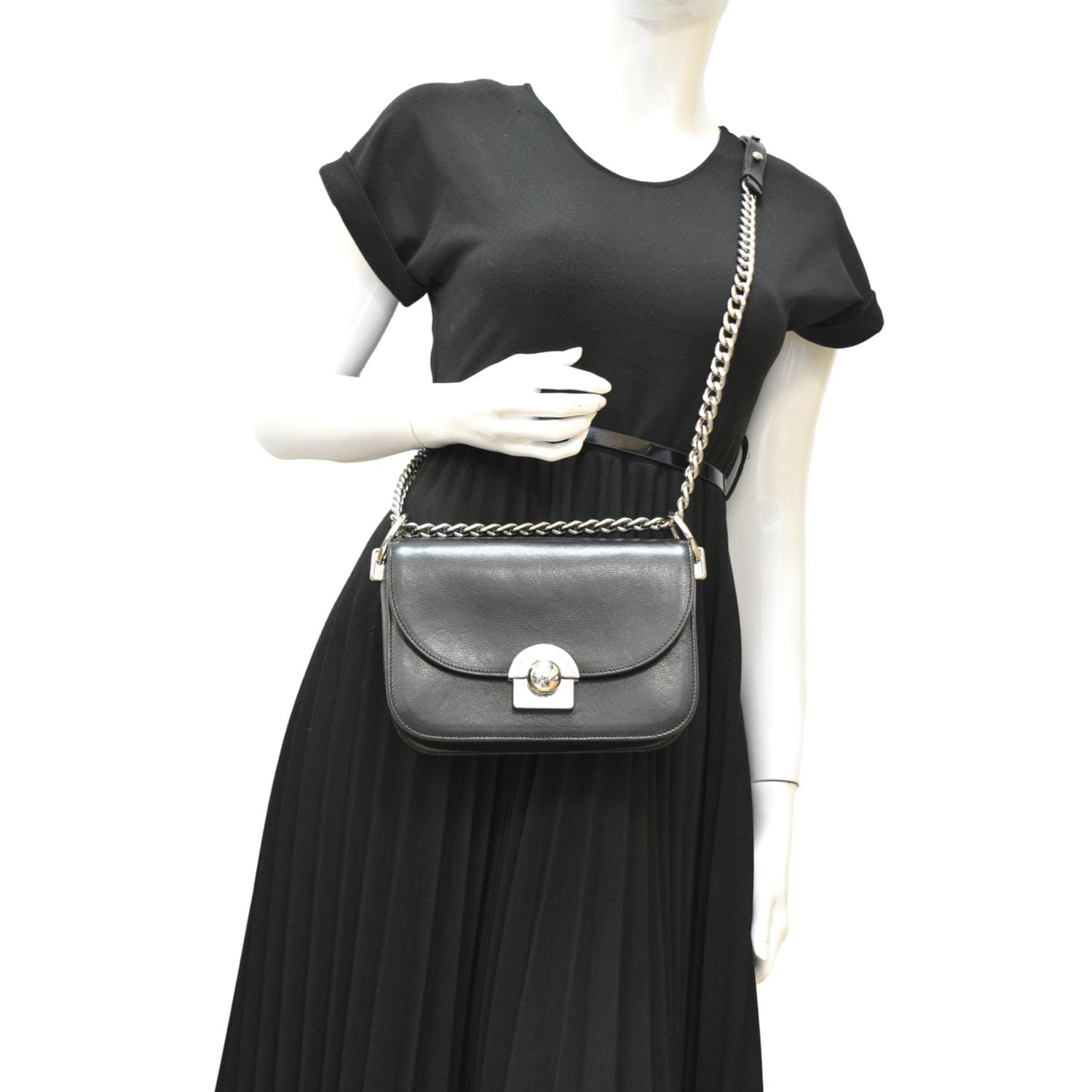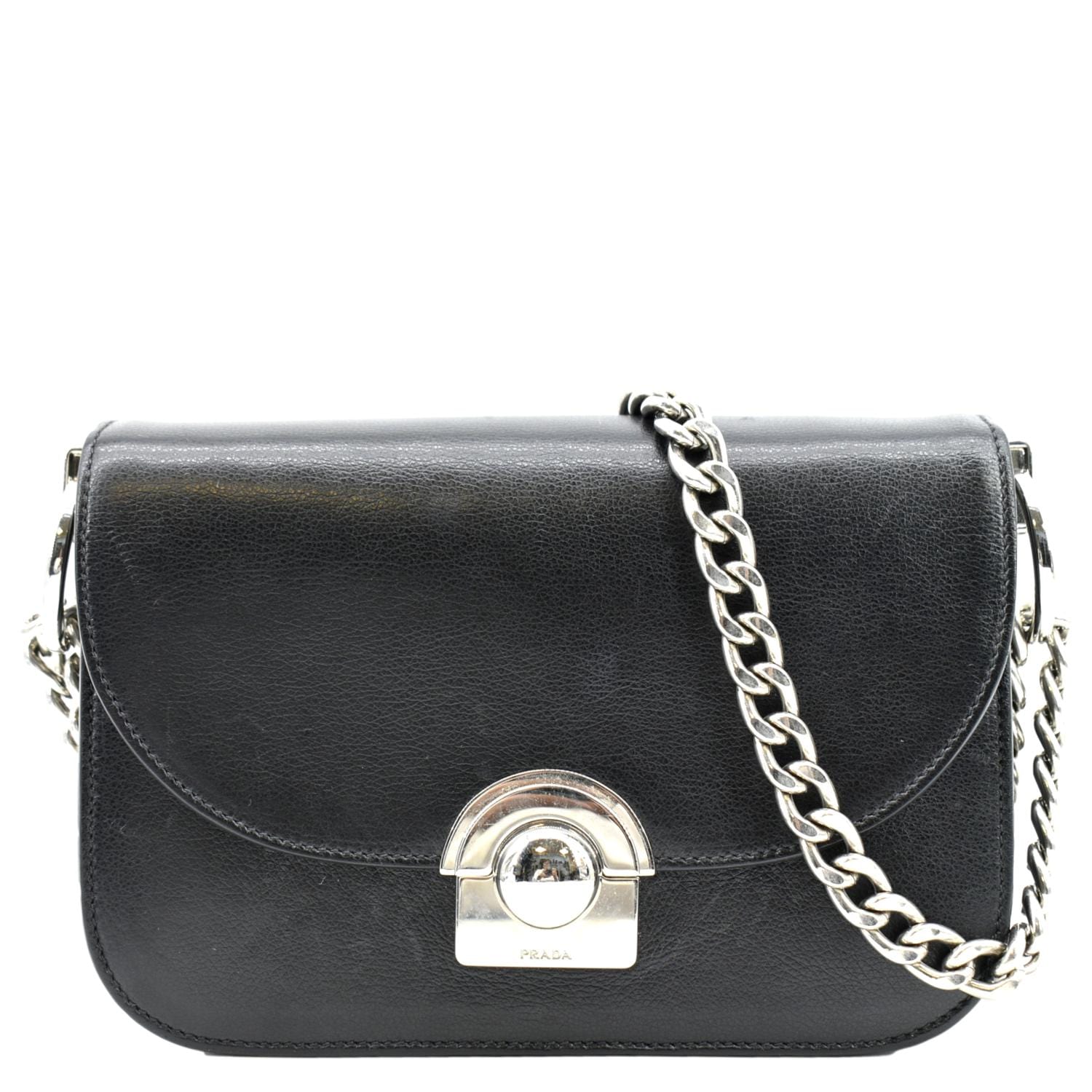 PRADA Arcade Glace Calf Leather Chain Crossbody Bag Black