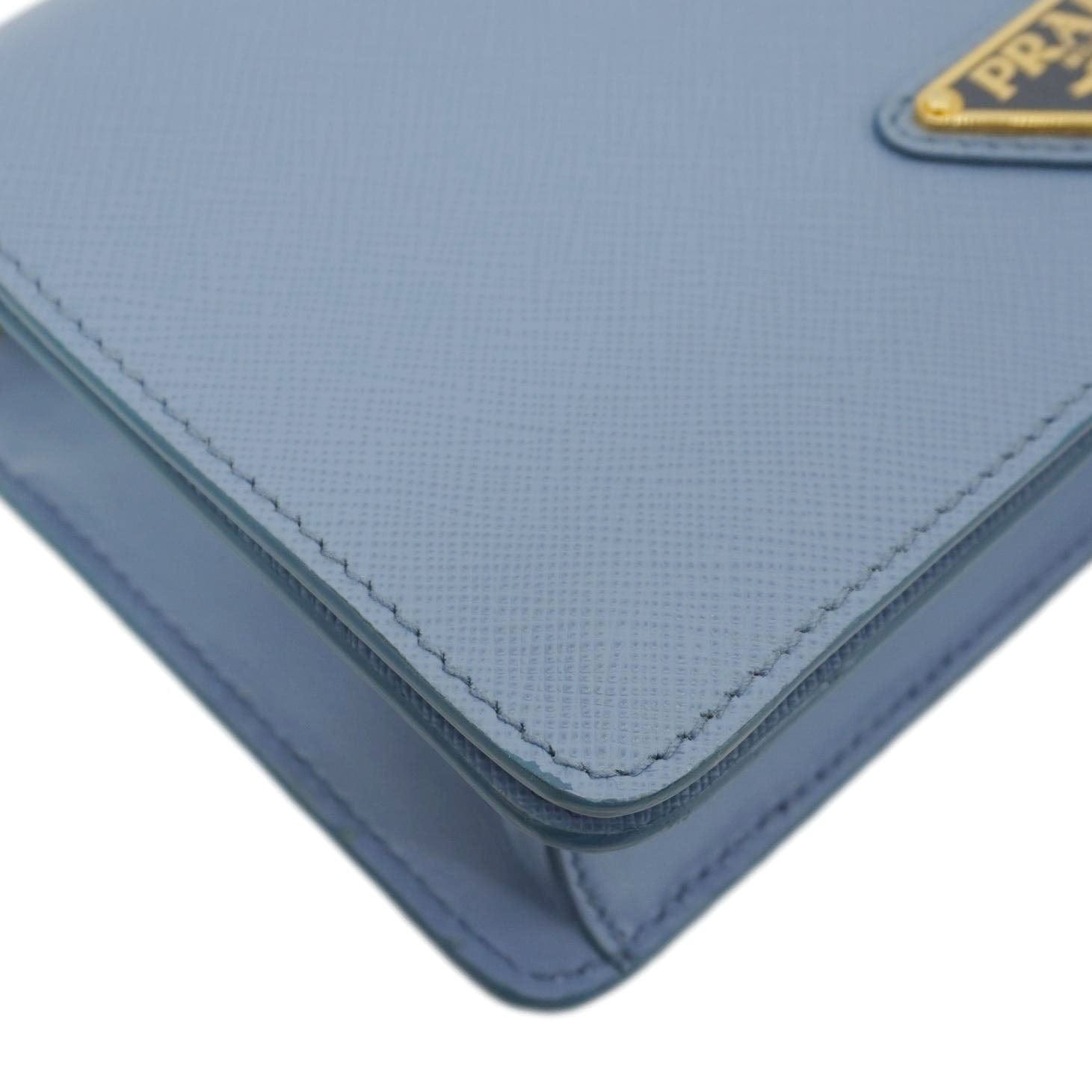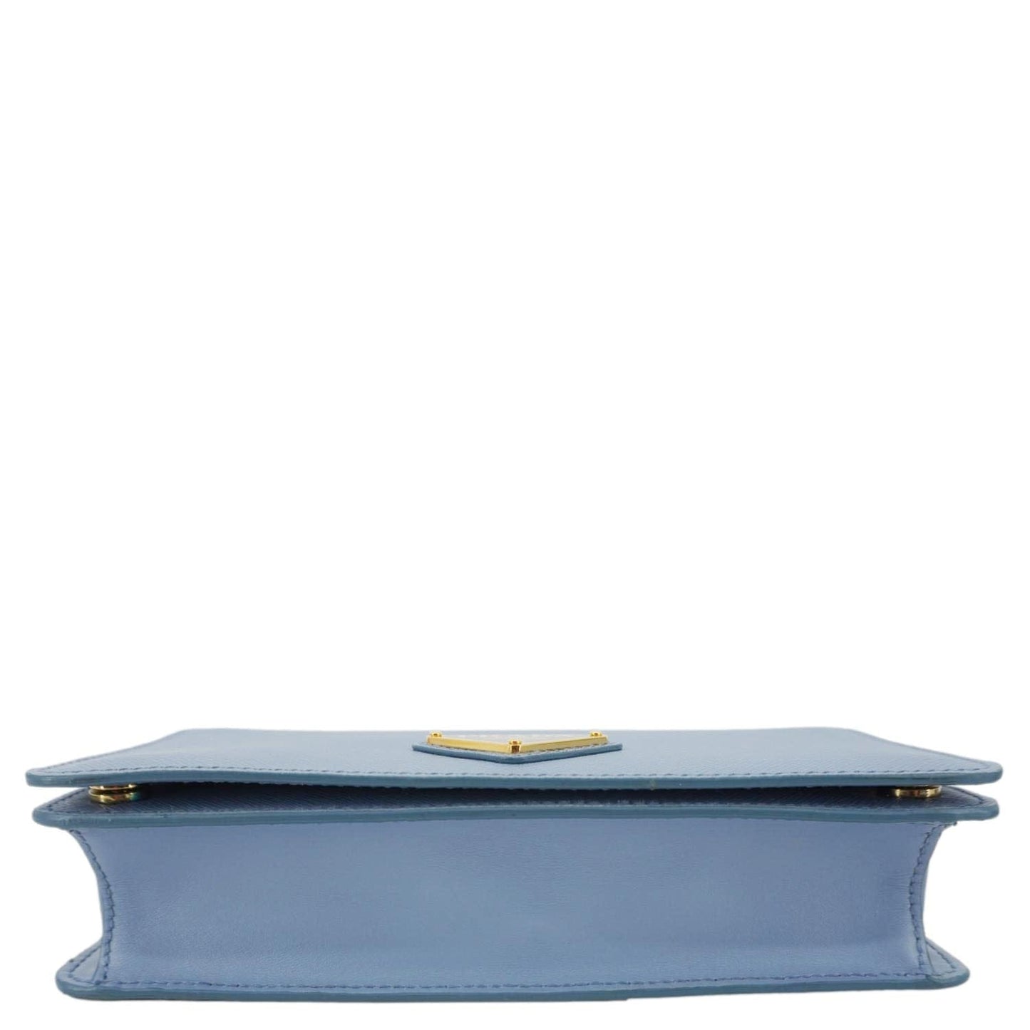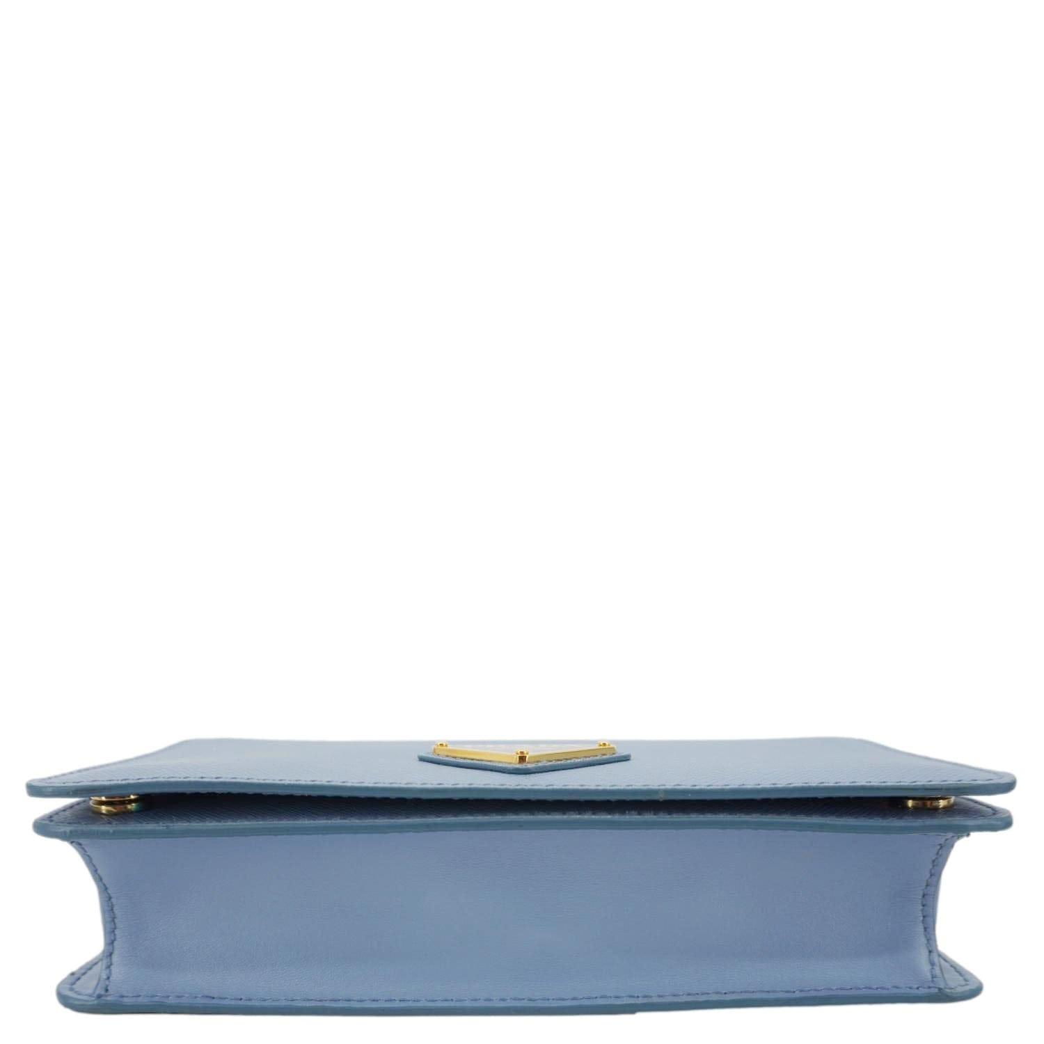 PRADA Bandoliera Flip Lock Saffiano Leather Chain Crossbody Bag Blue
