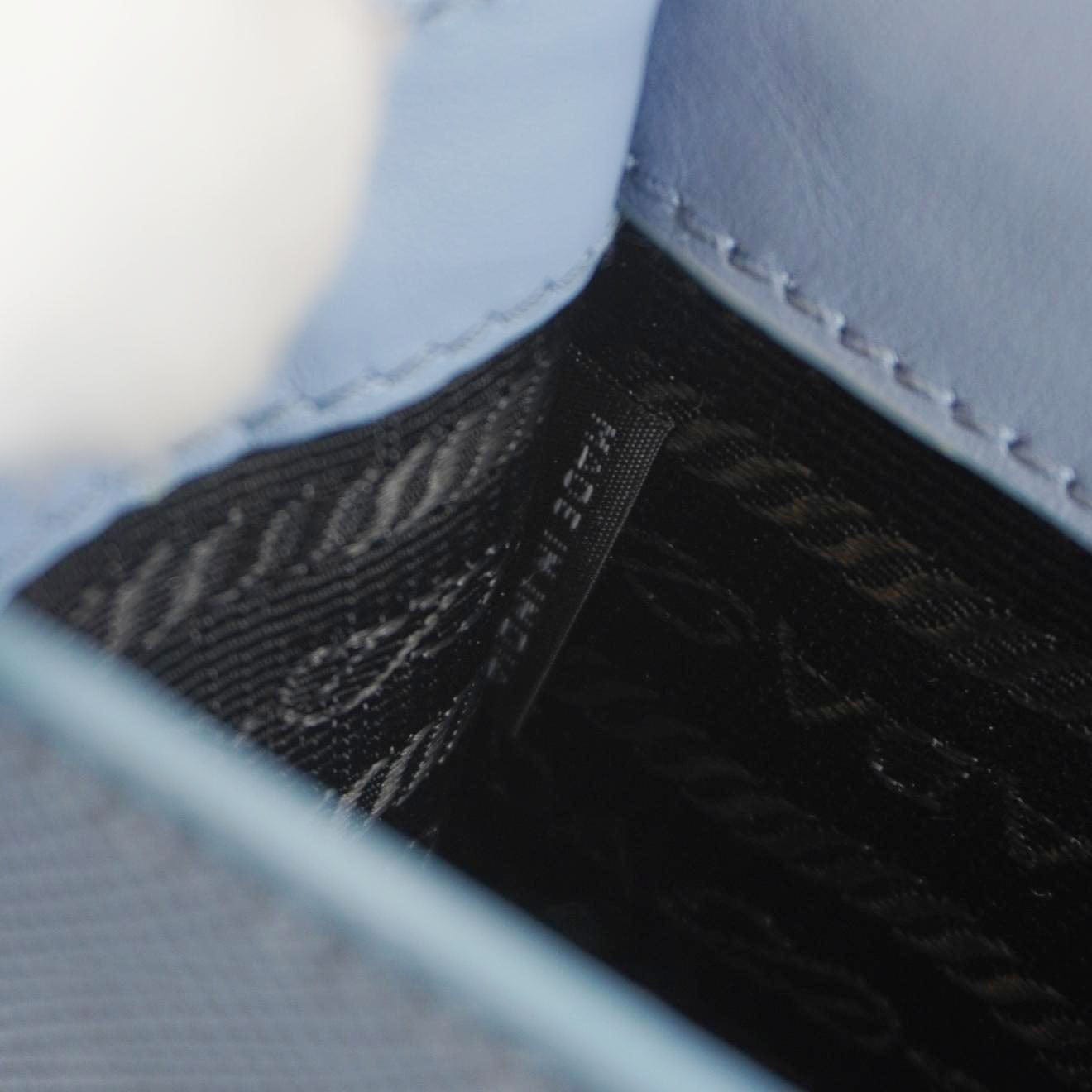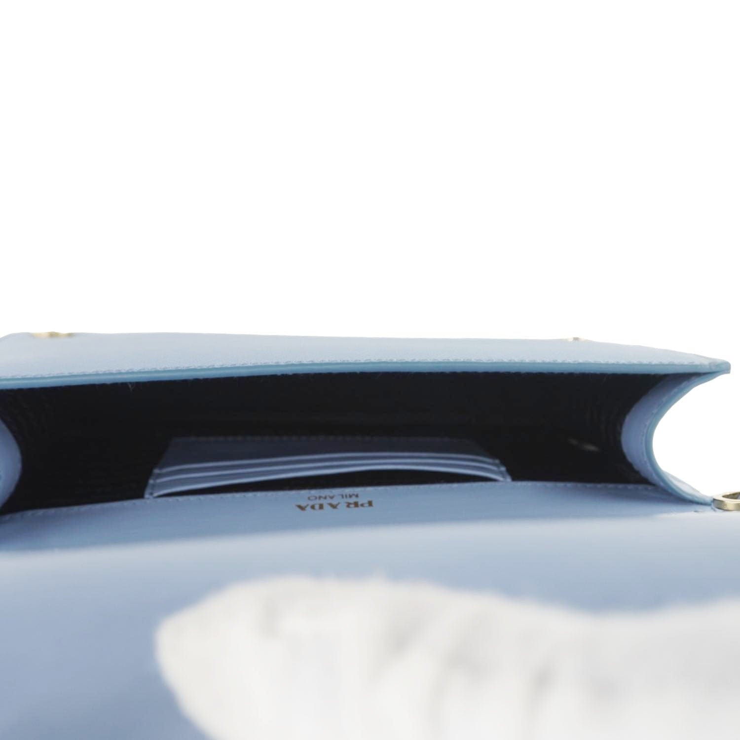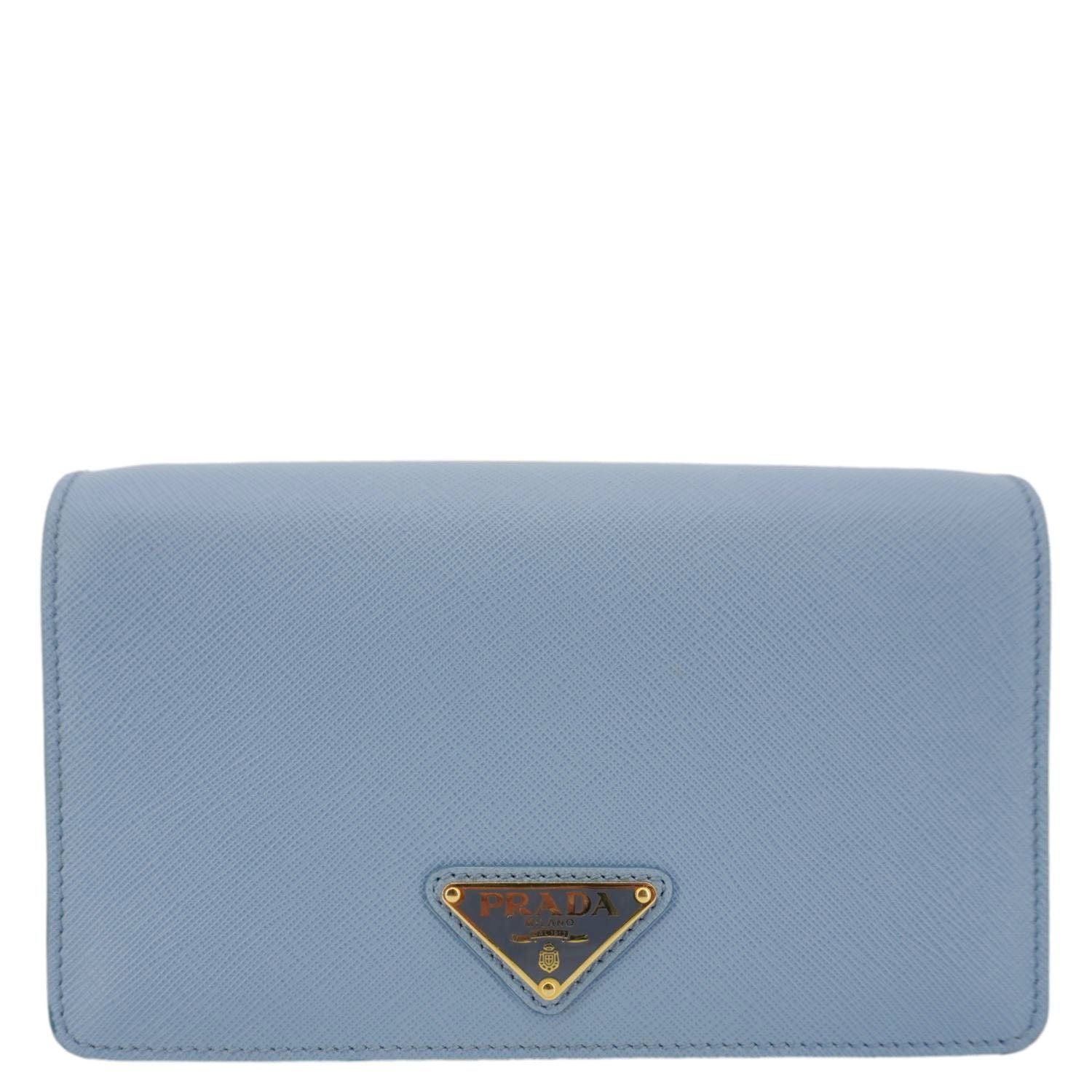 PRADA Bandoliera Flip Lock Saffiano Leather Chain Crossbody Bag Blue