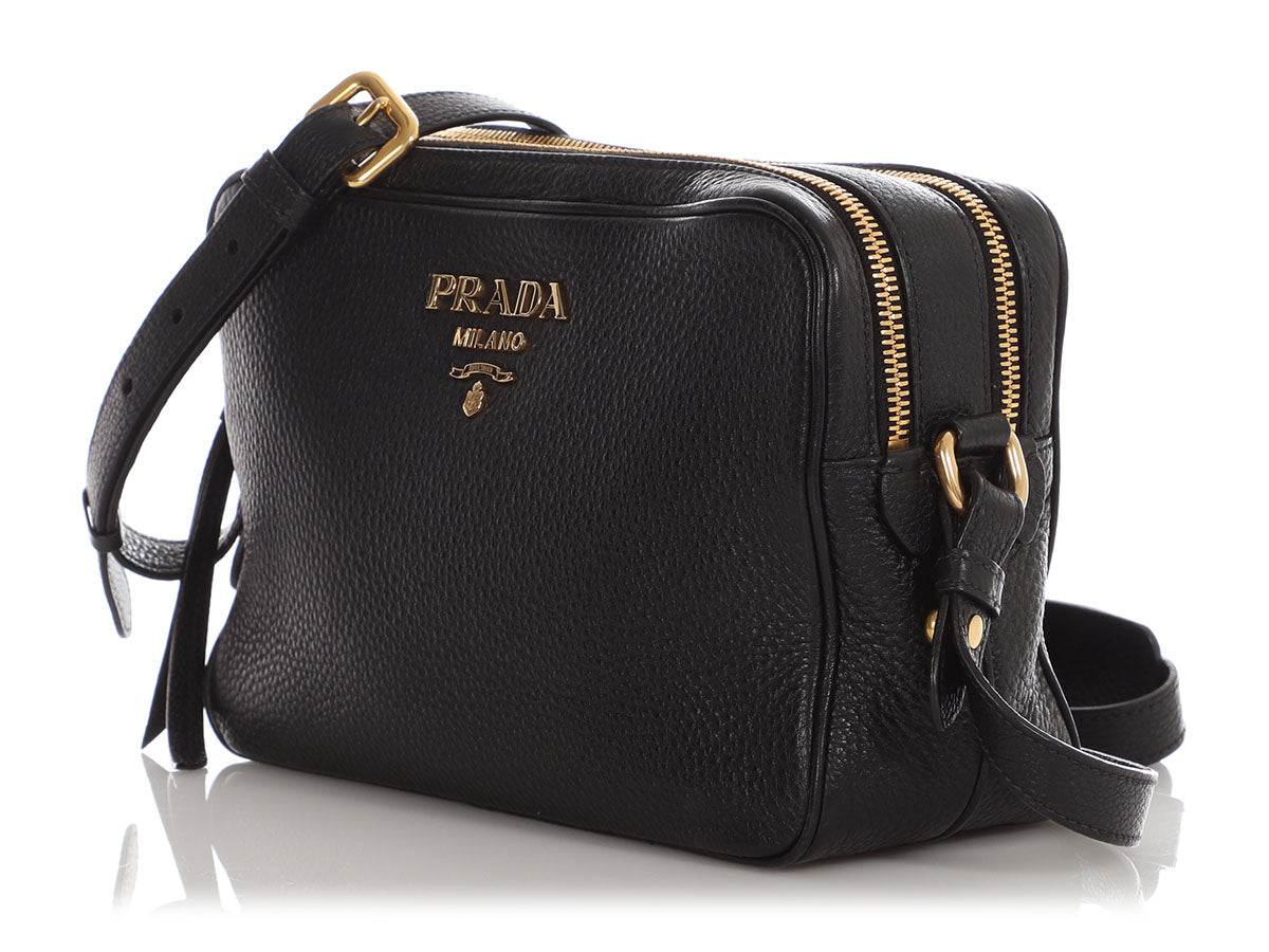 Prada Black Double Zip Vitello Phenix Camera Bag