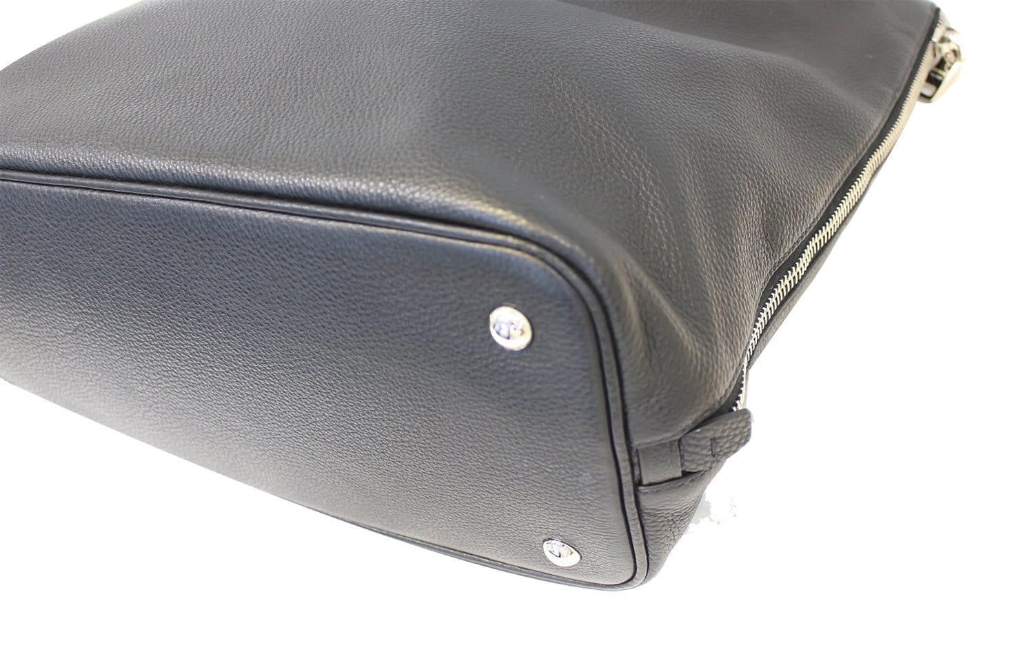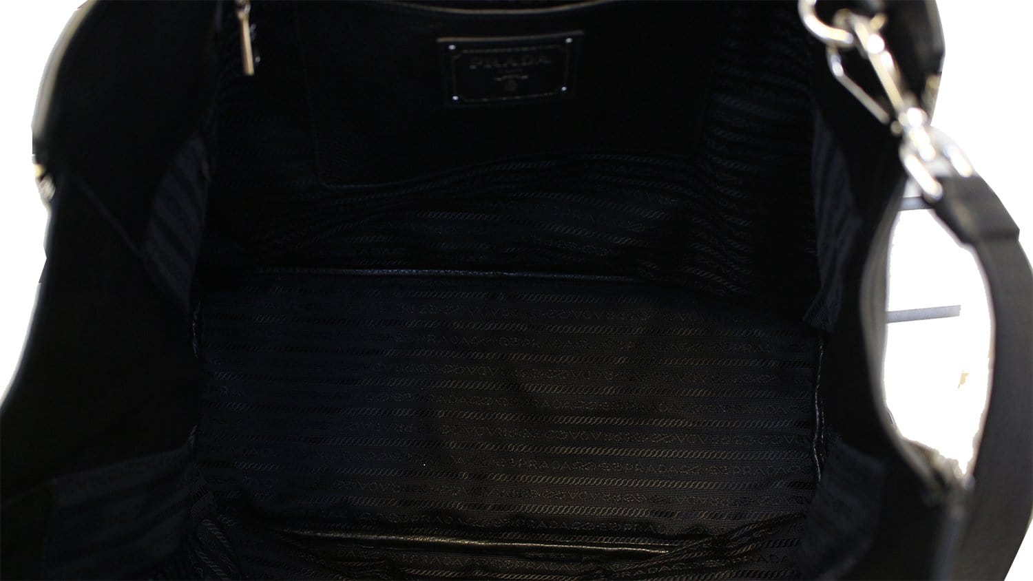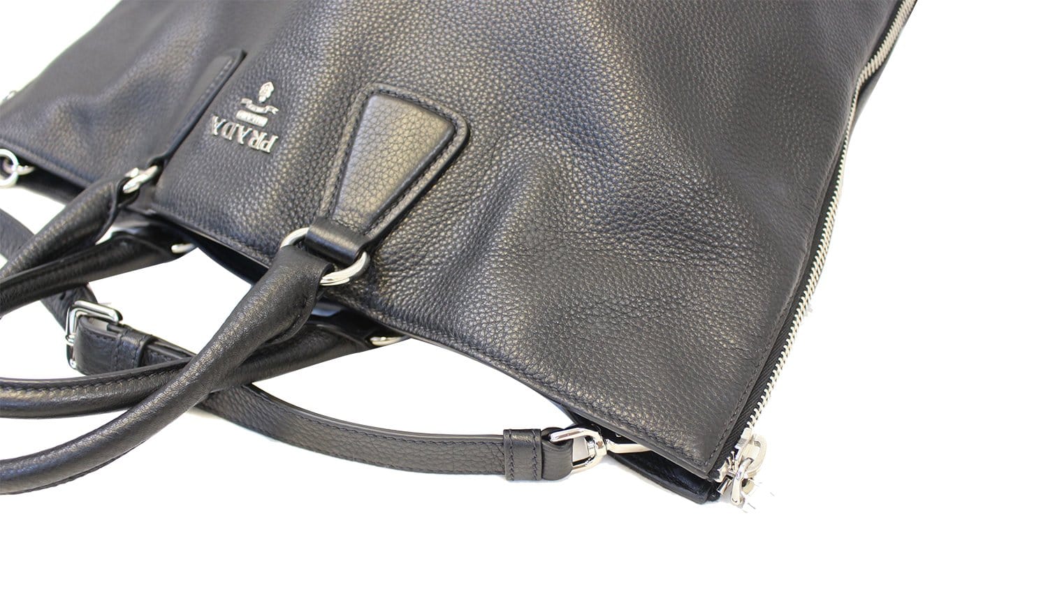 PRADA Black Leather Vitello Phenix Convertible Shopping Tote Bag