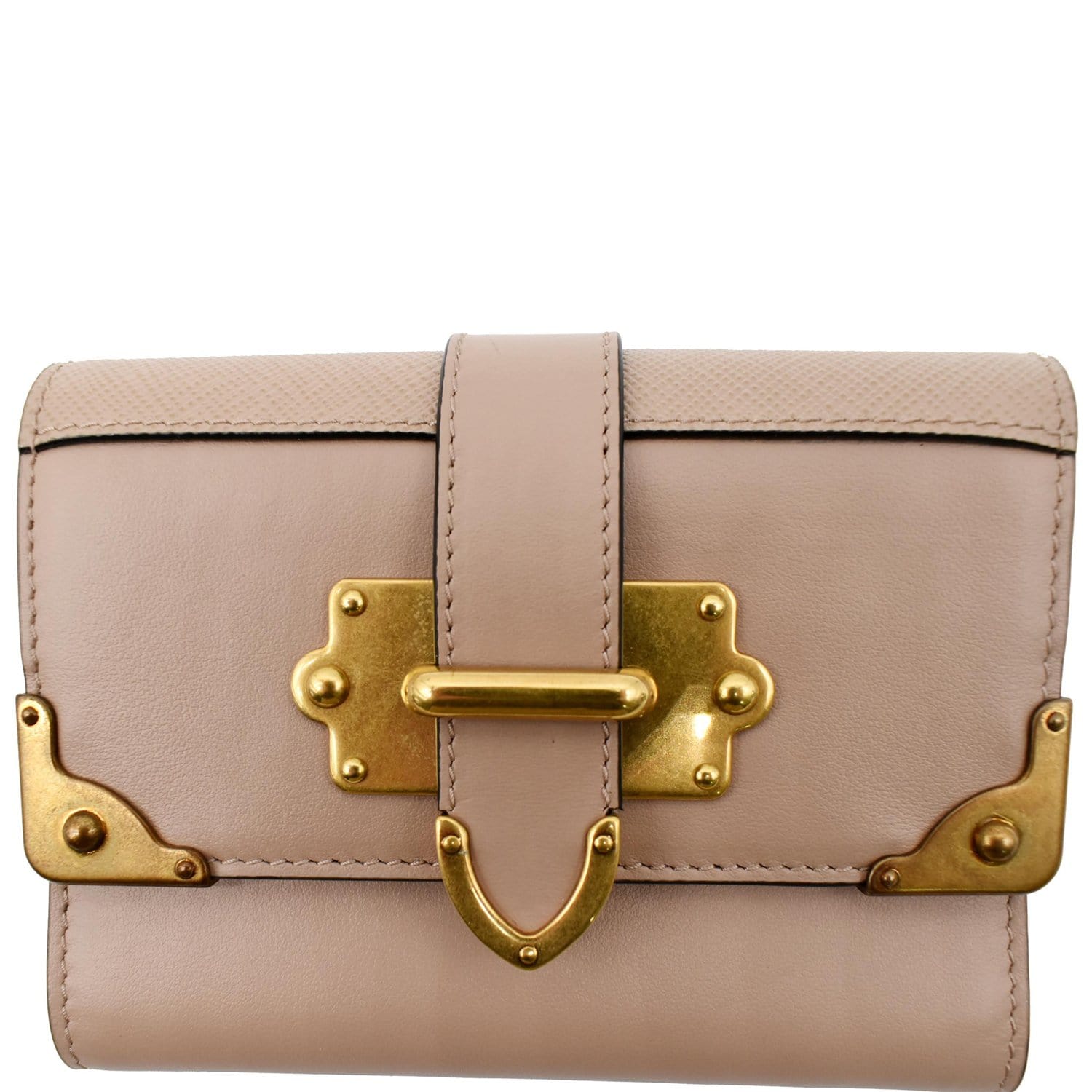 PRADA Cahier Saffiano French Compact Flap Wallet Beige