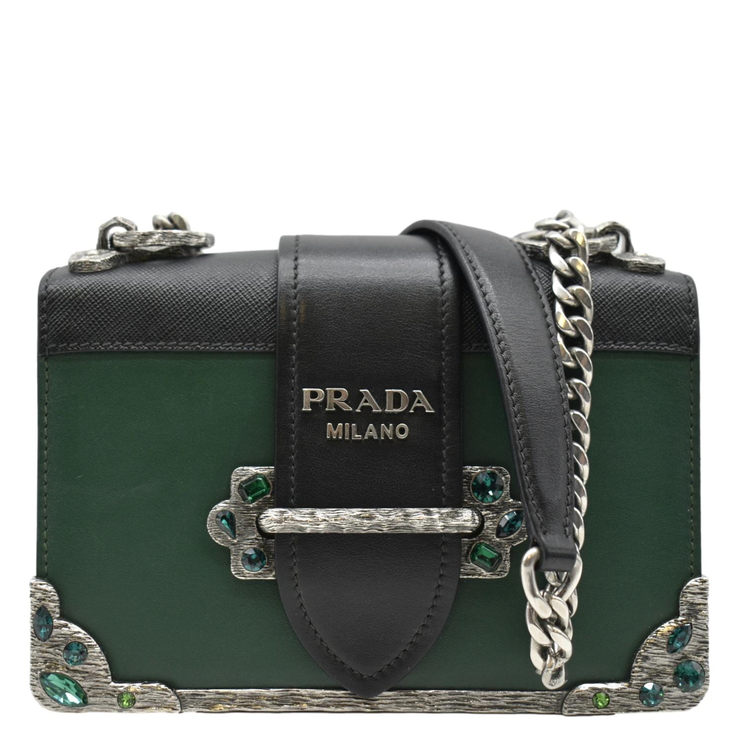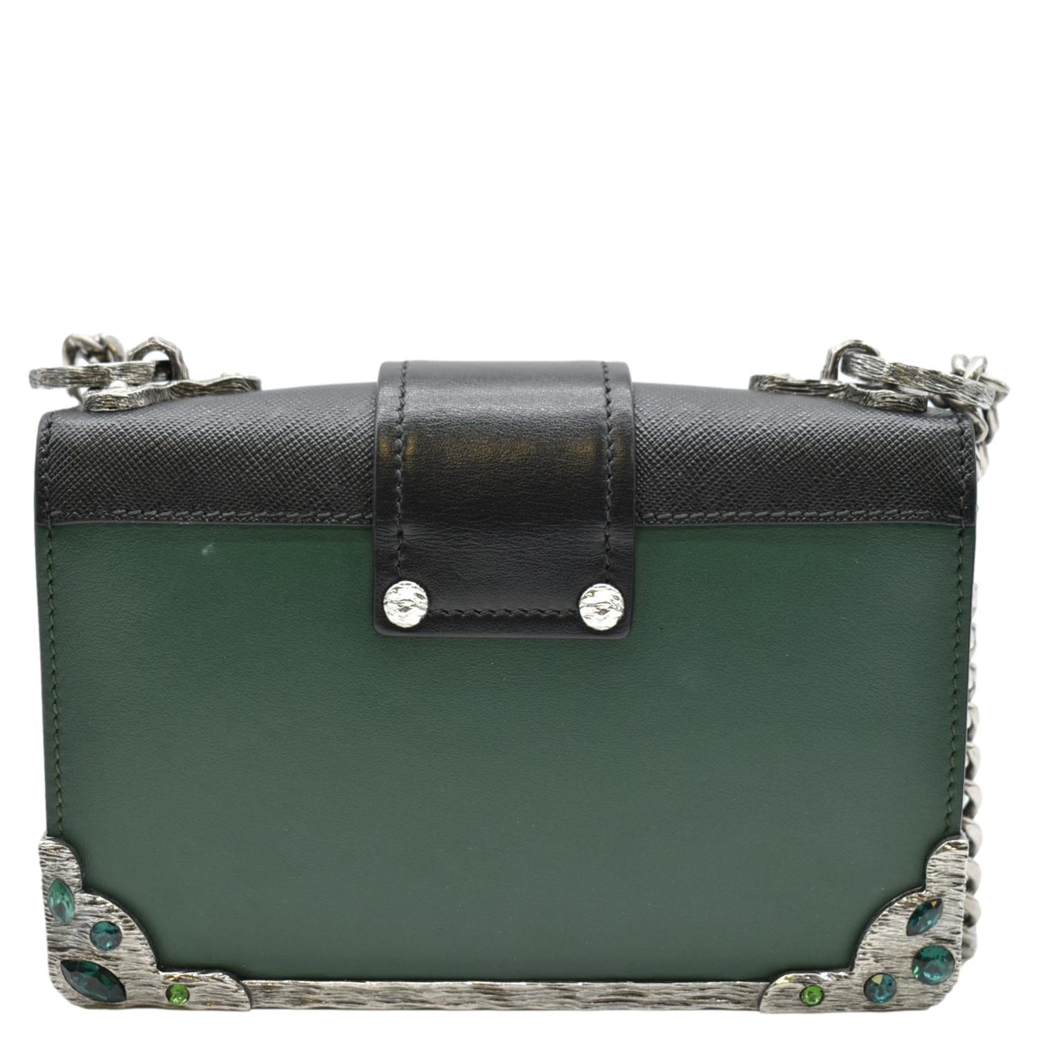 PRADA Cahier Swarovski Crystals Leather Shoulder Bag Green
