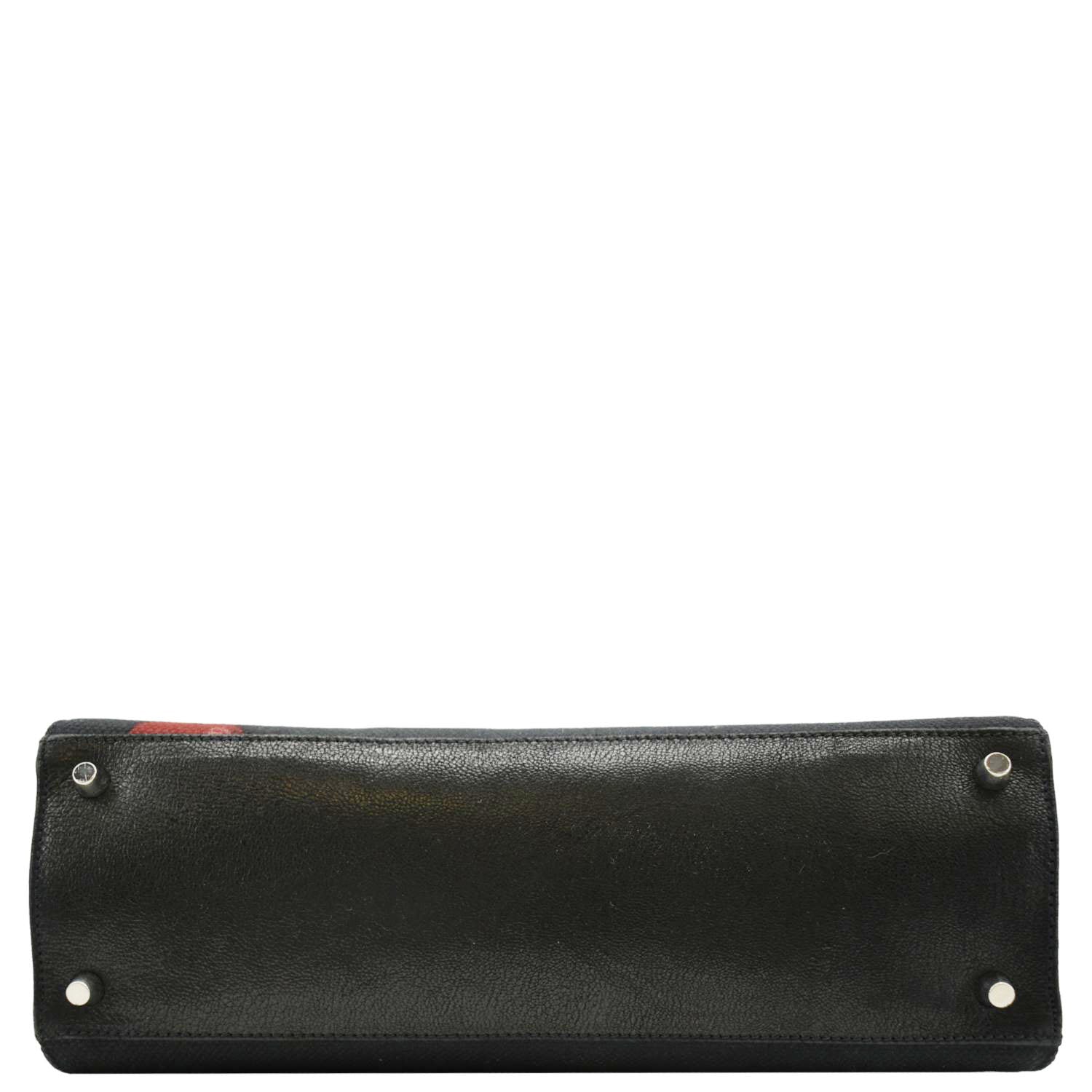 PRADA Canapa Floral Frame Canvas Top Handle Tote Bag Bag Black