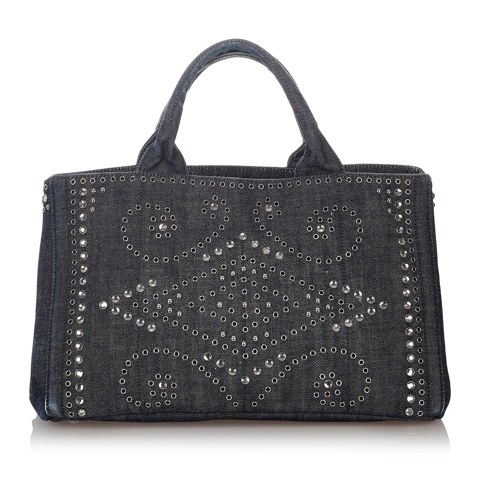 Prada Canapa Studded Denim Tote Bag (SHG-26862)