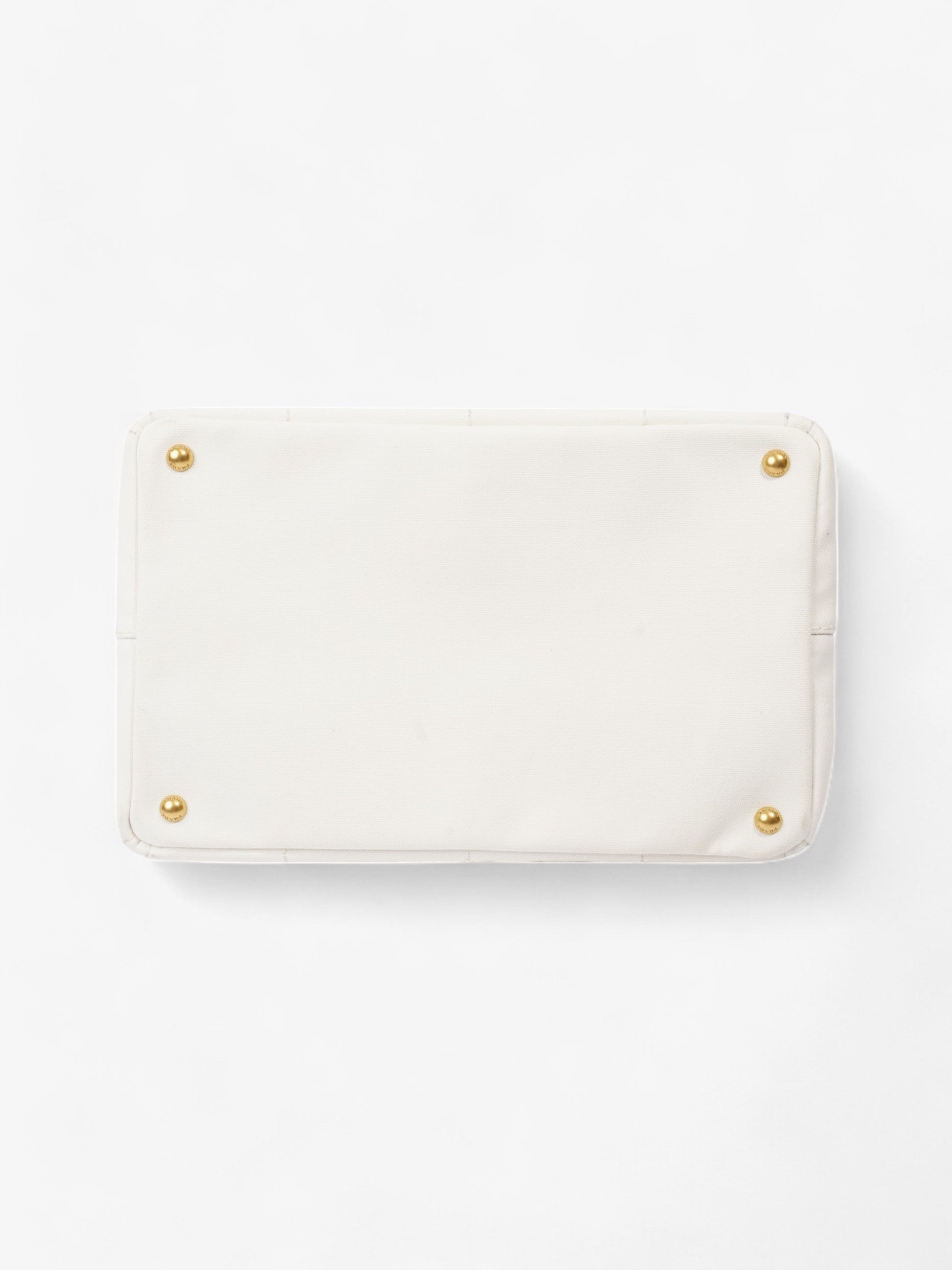 Prada Canapa Tote White / Navy Blue Canvas Medium