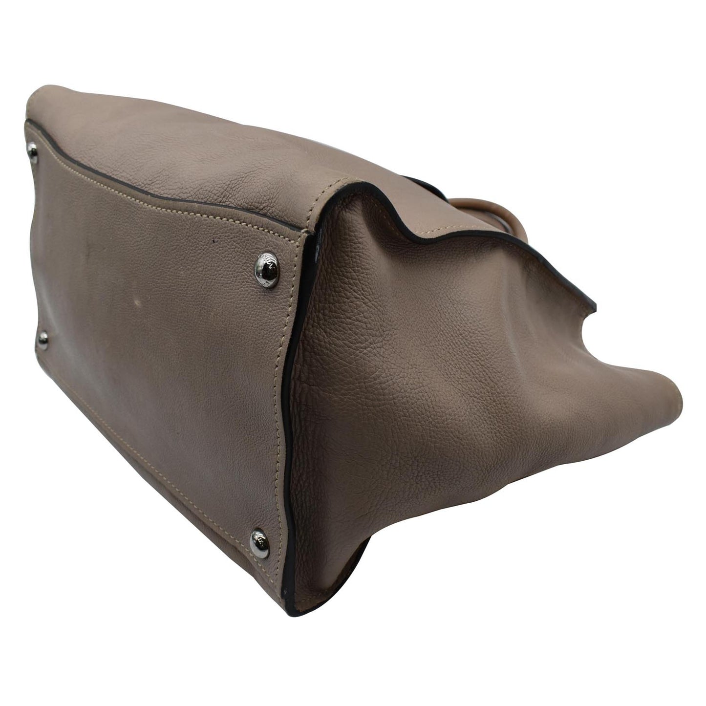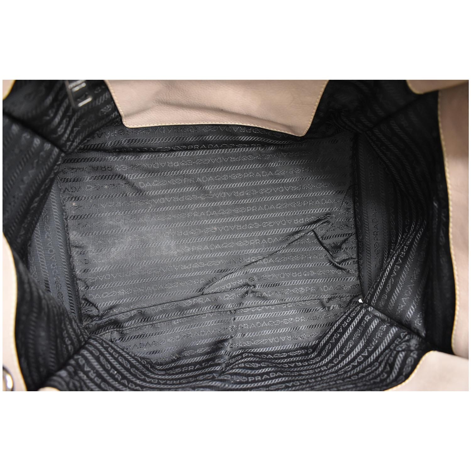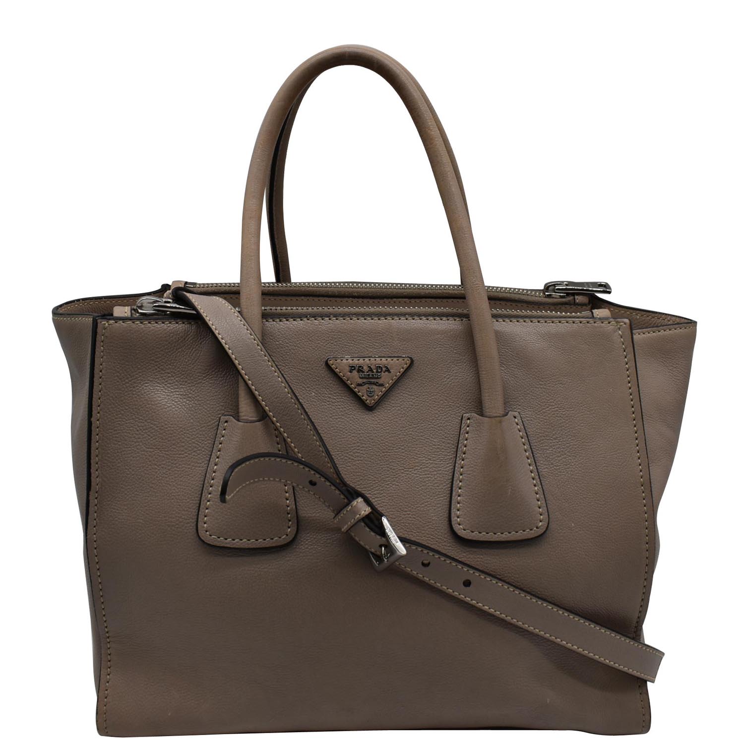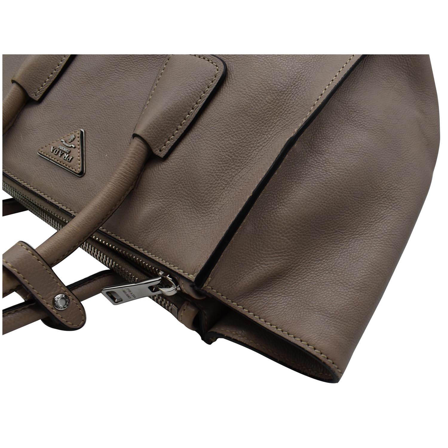 PRADA City Twin Pocket Calf Leather Tote Shoulder Bag Taupe