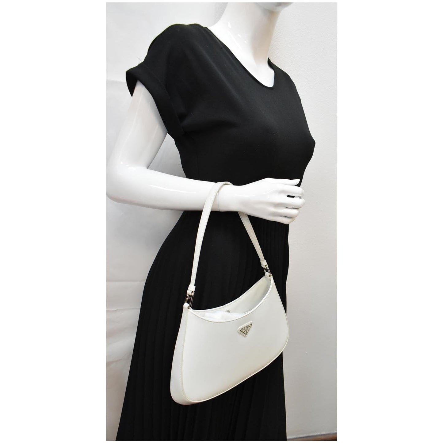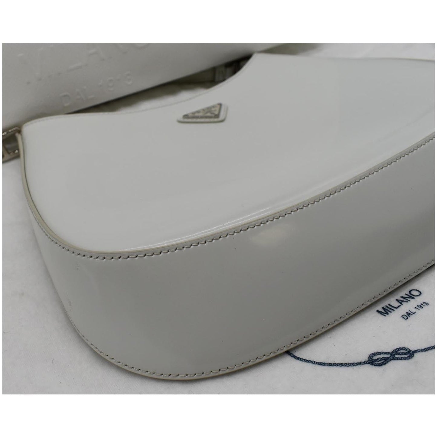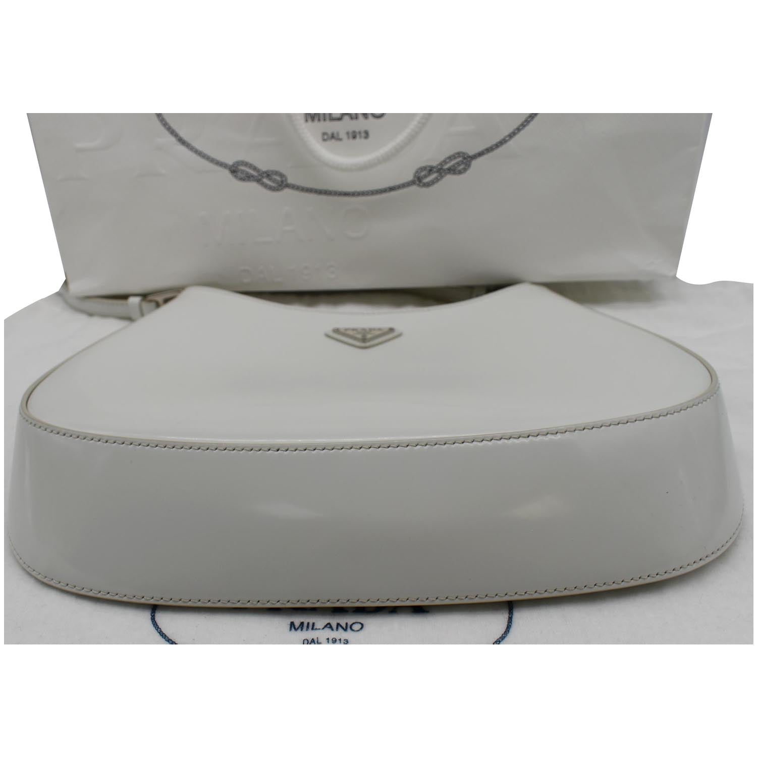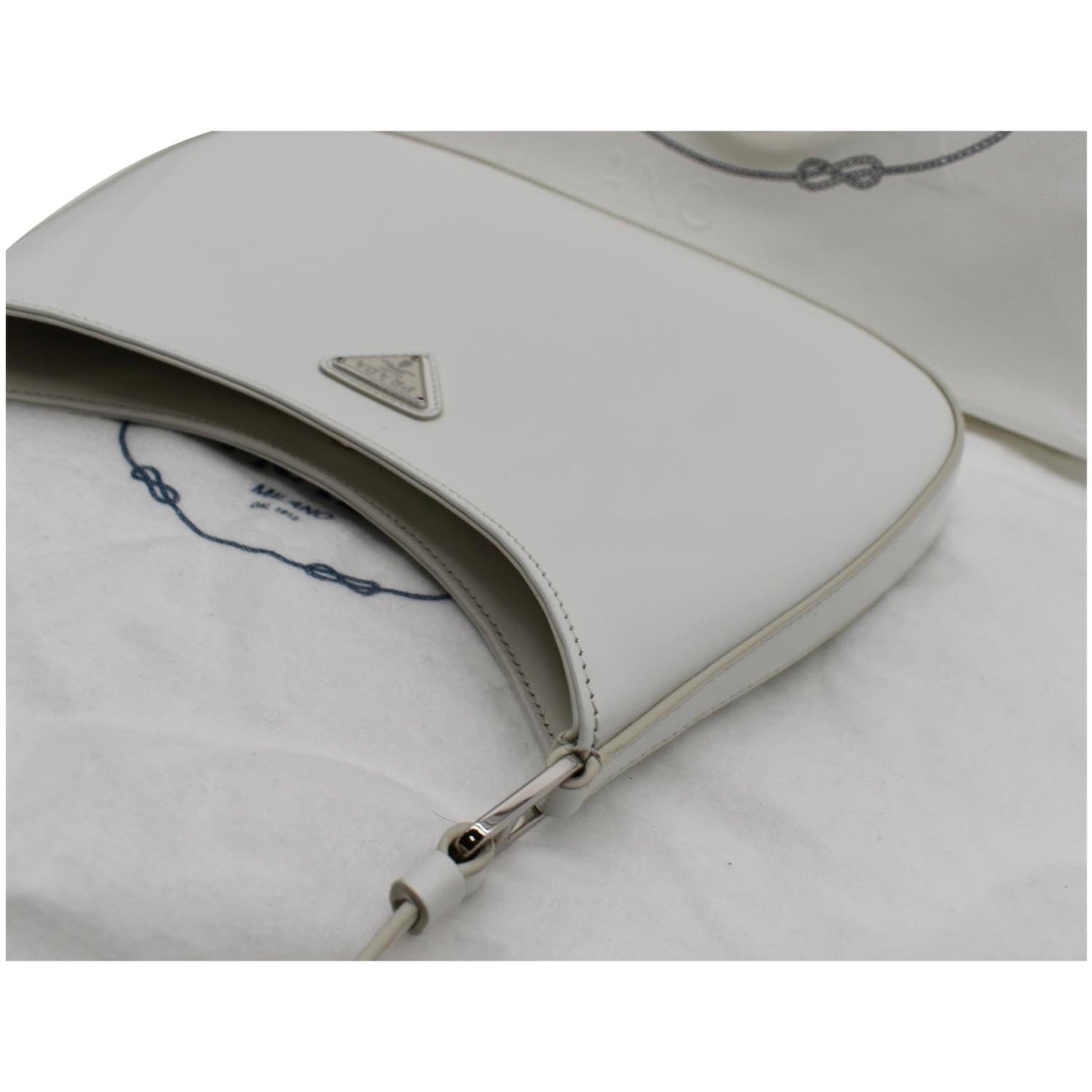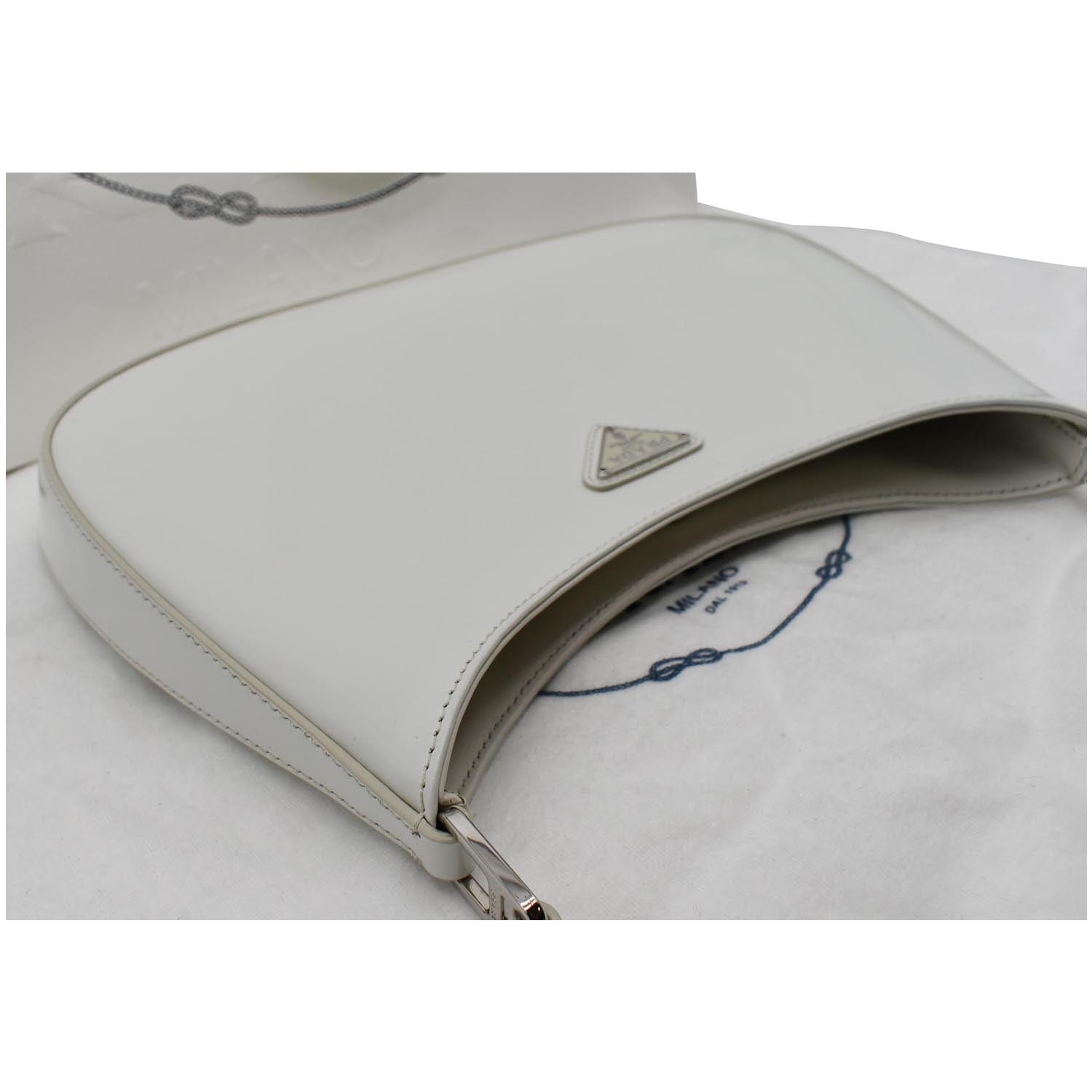 PRADA Cleo Brushed Leather Shoulder Bag White