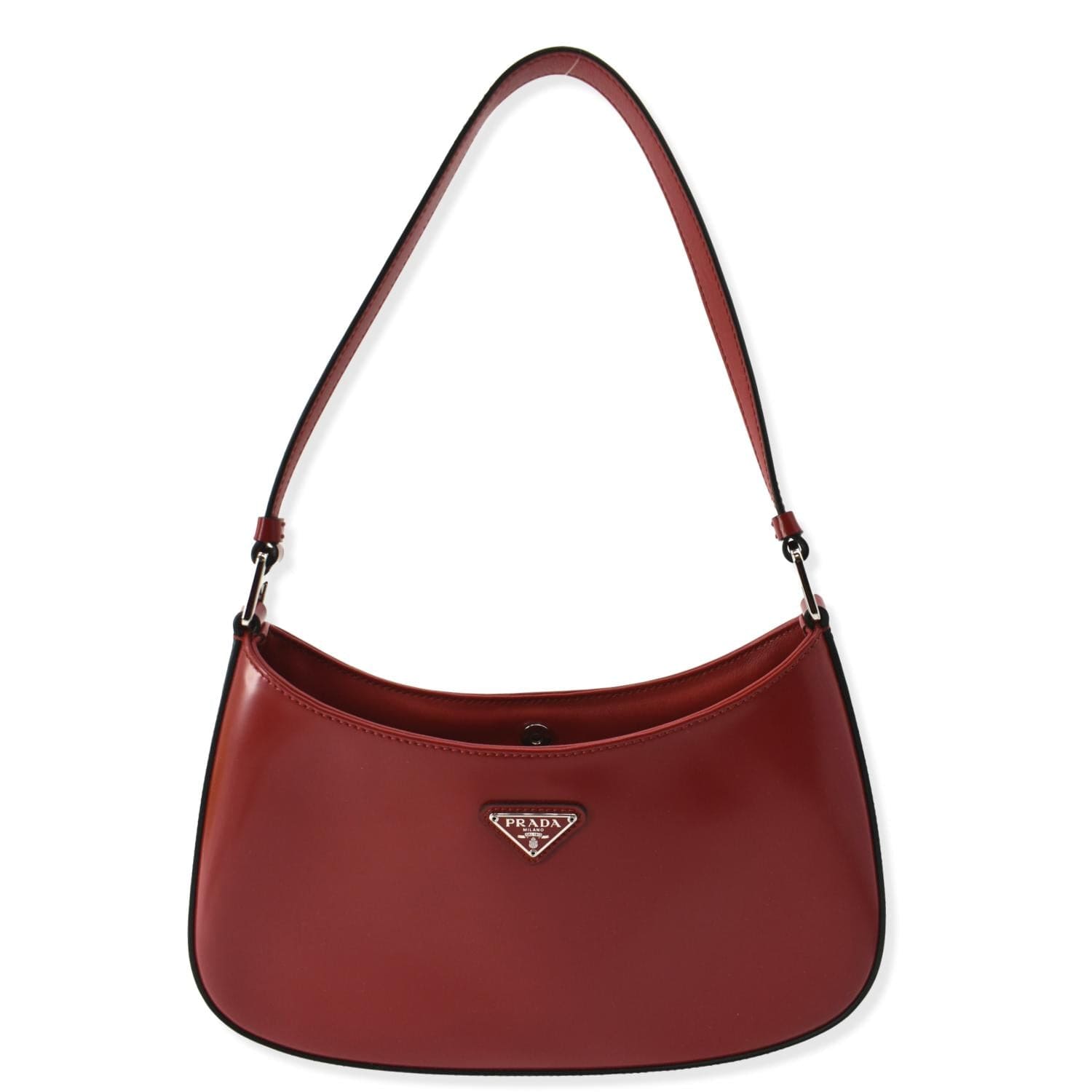 PRADA Cleo Brushed Leather Shoulder Bag Scarlet