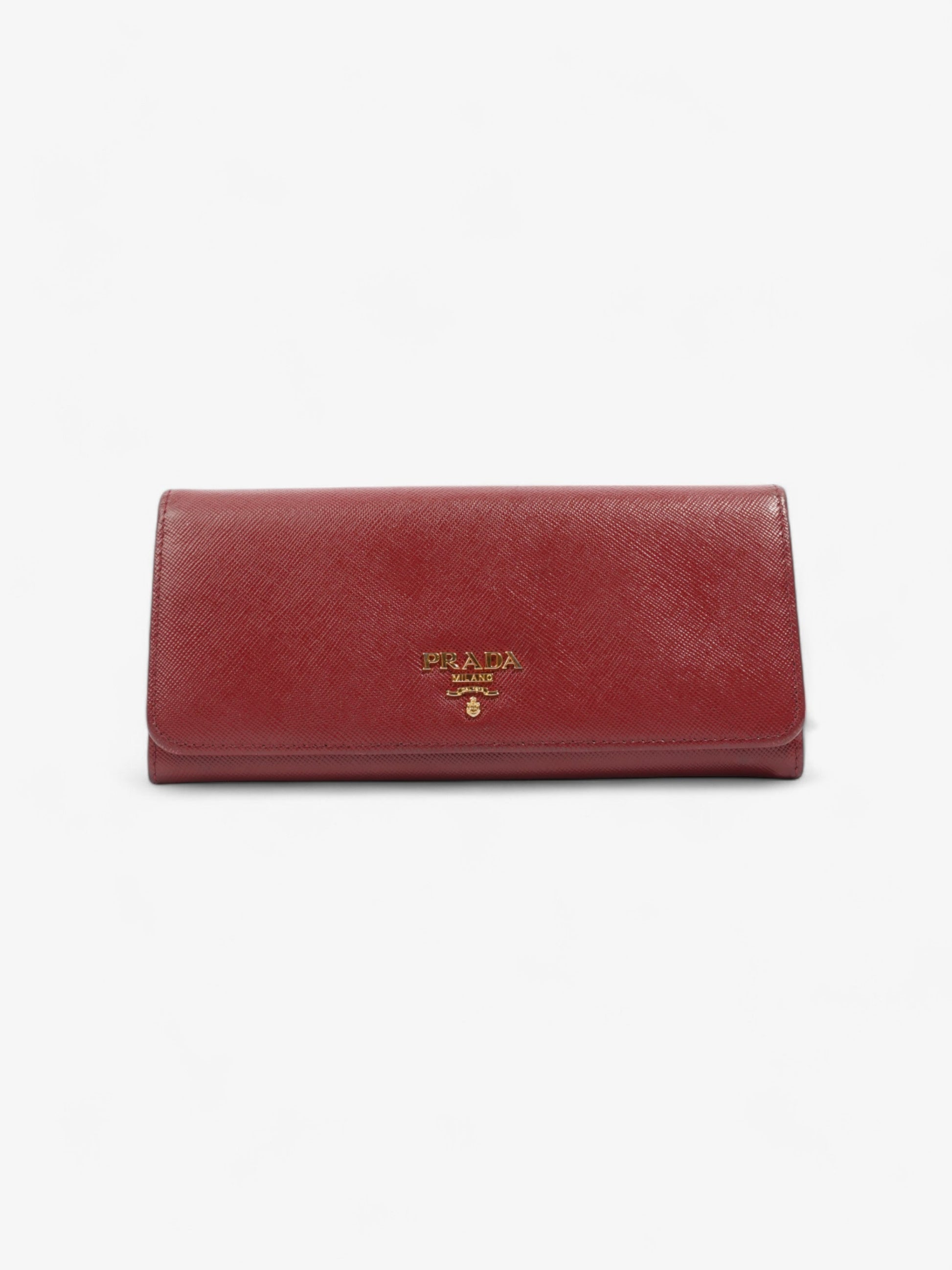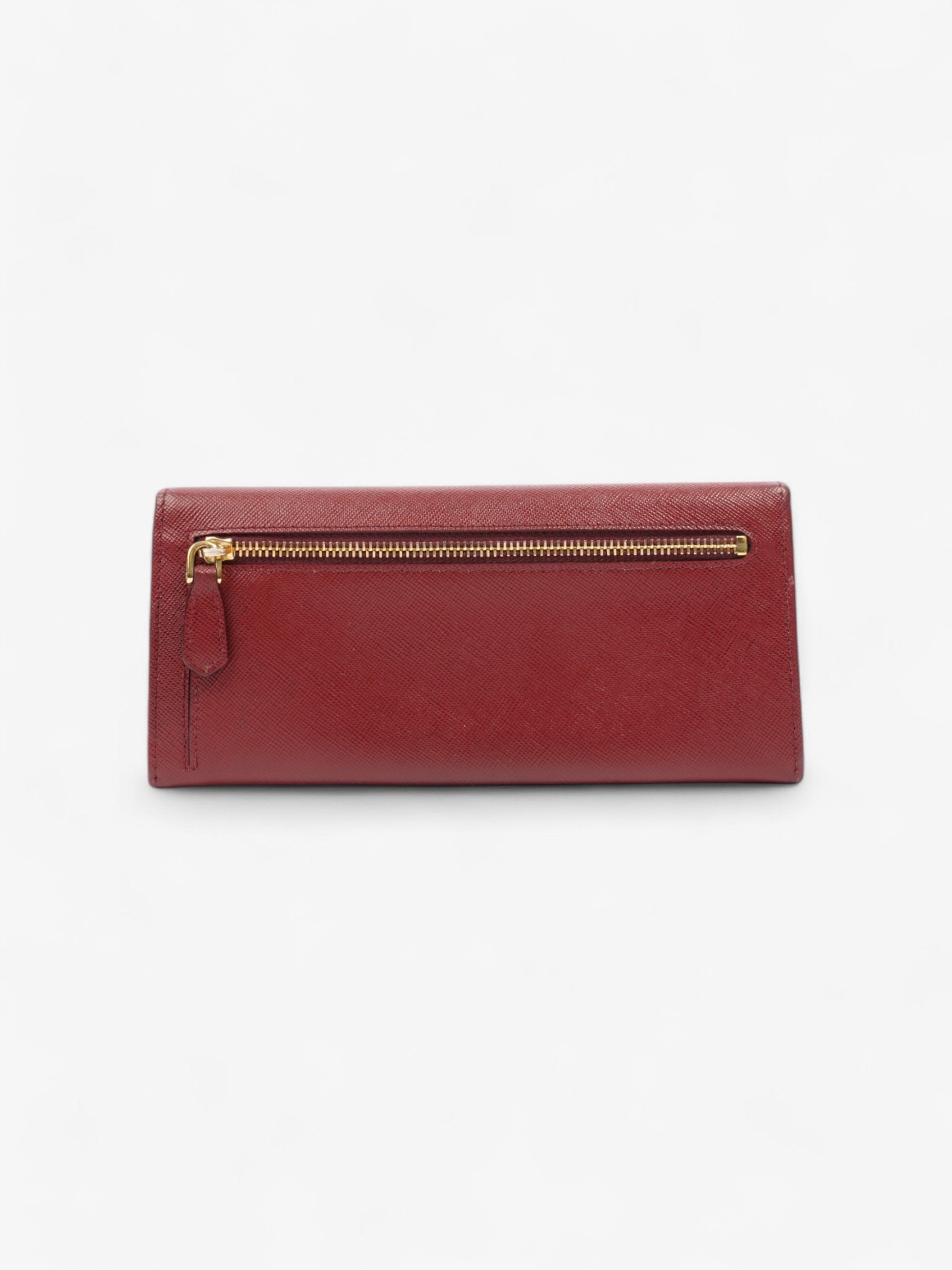 Prada Continental Wallet Burgundy / Gold Saffiano Leather
