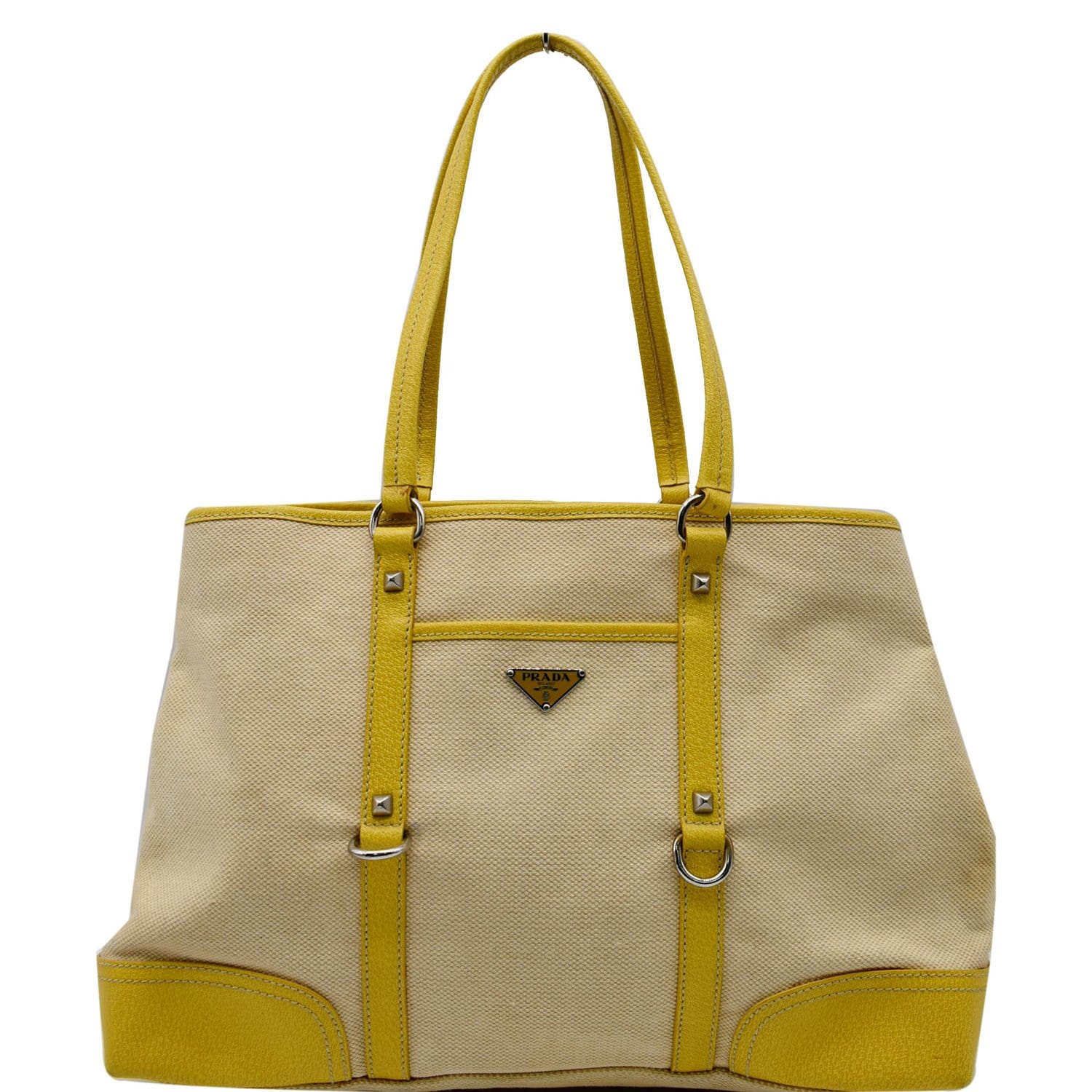 PRADA Fabric Canvas Leather Tote Bag Beige - 25% OFF