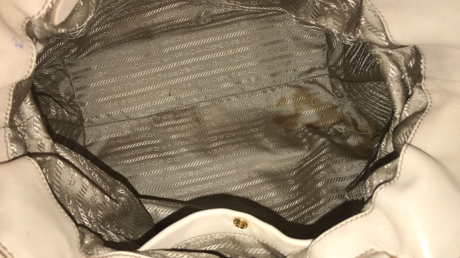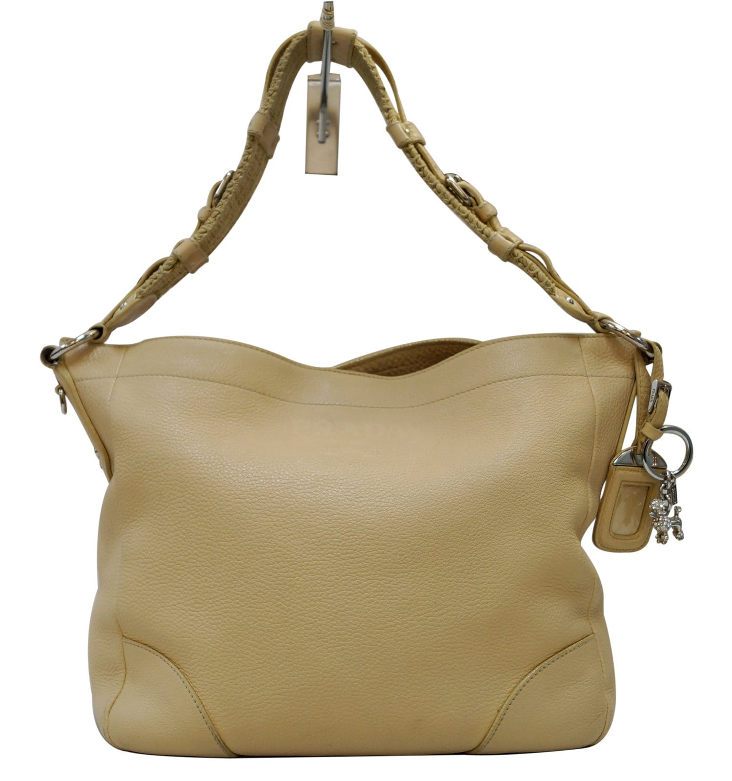 Prada. Prada PRADA Cream Leather Daino Hobo Shoulder Bag Prada <