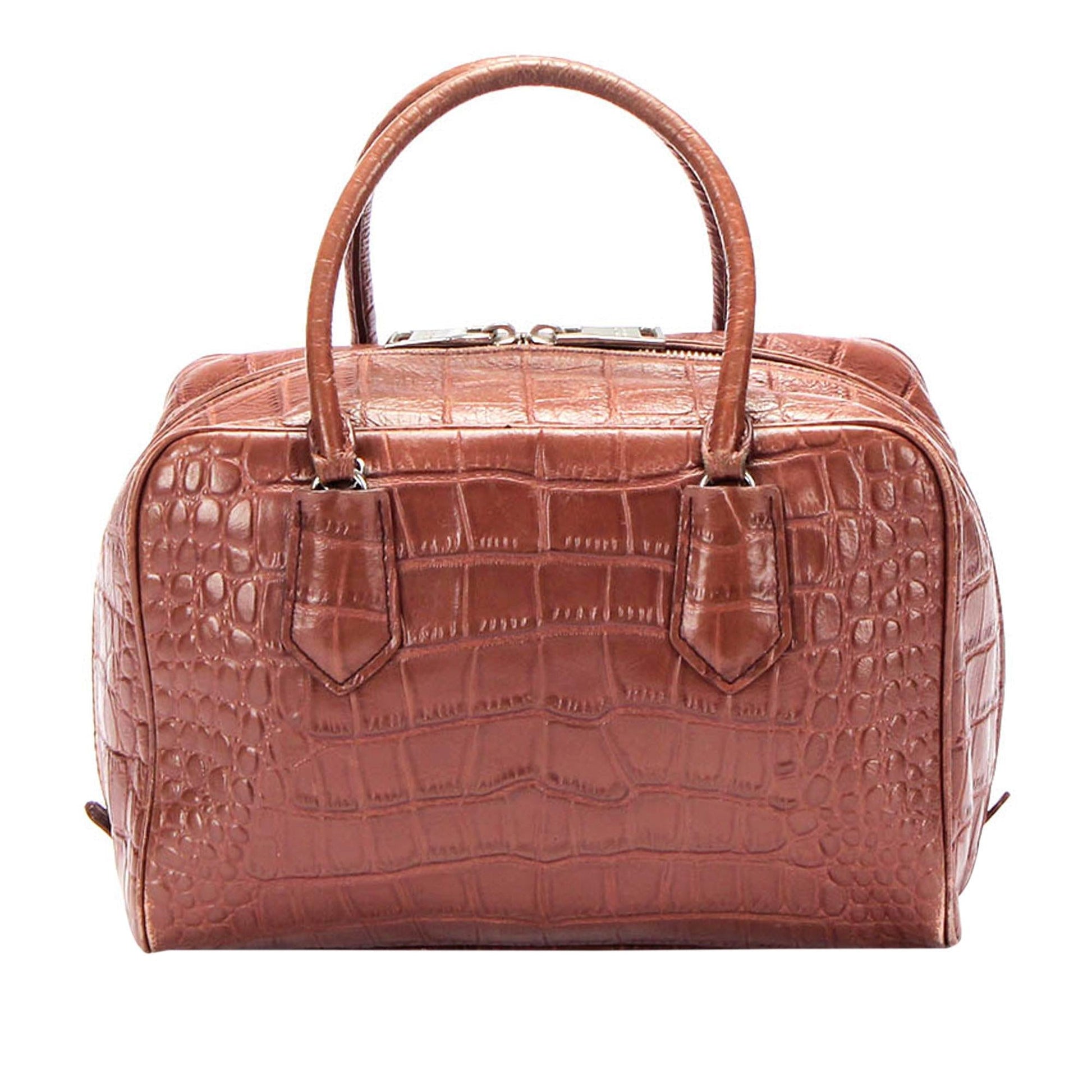 Prada Croc Embossed Leather Handbag (SHG-26197)
