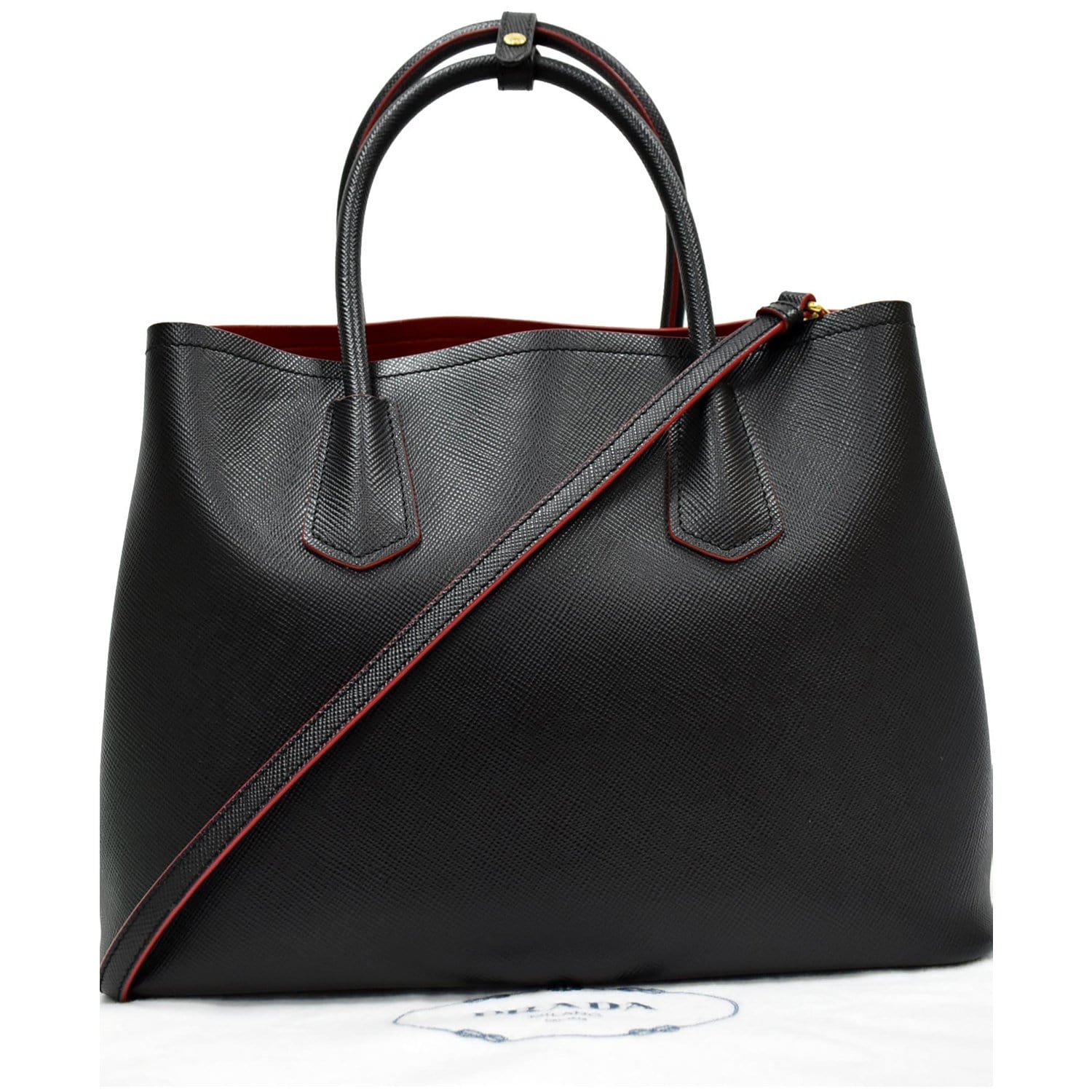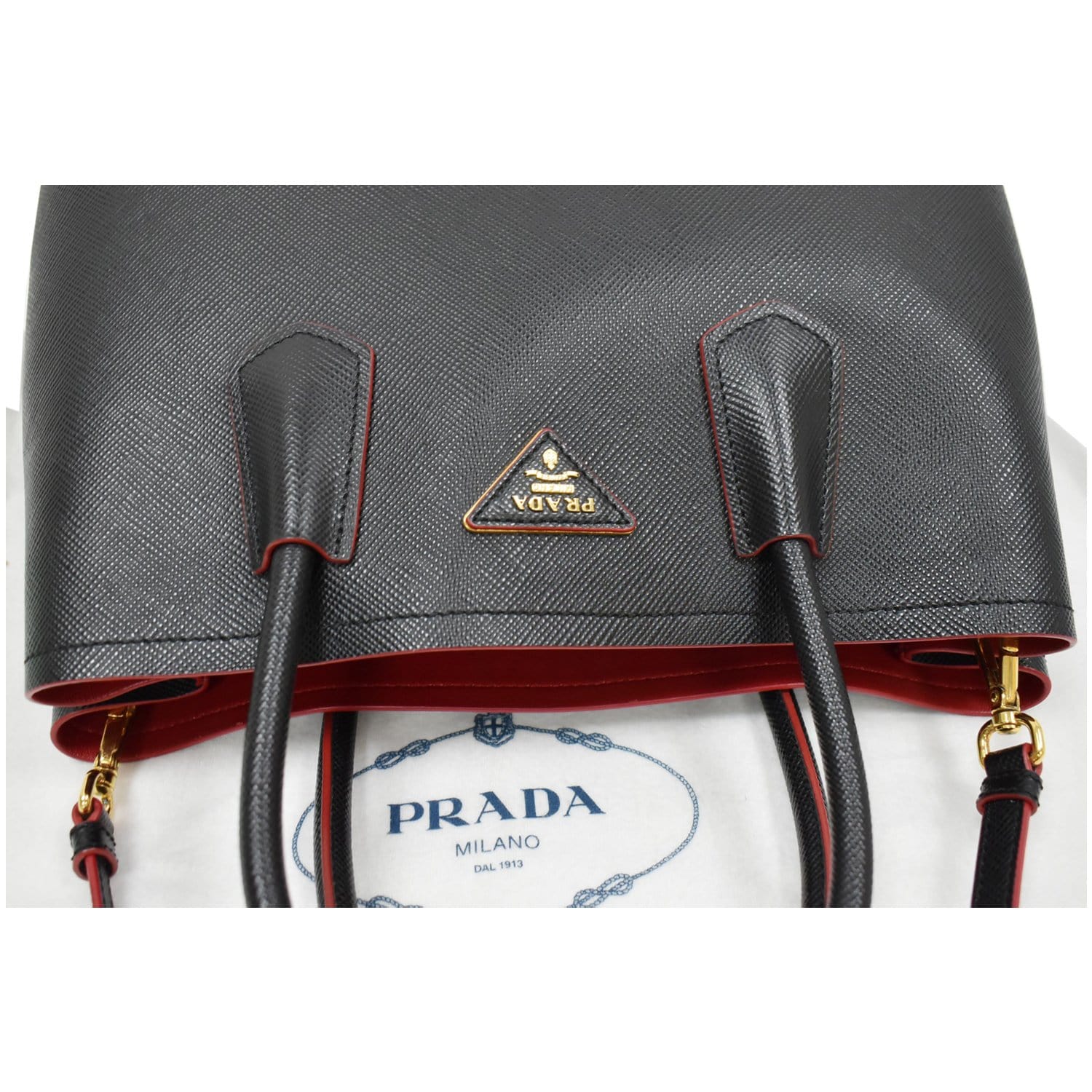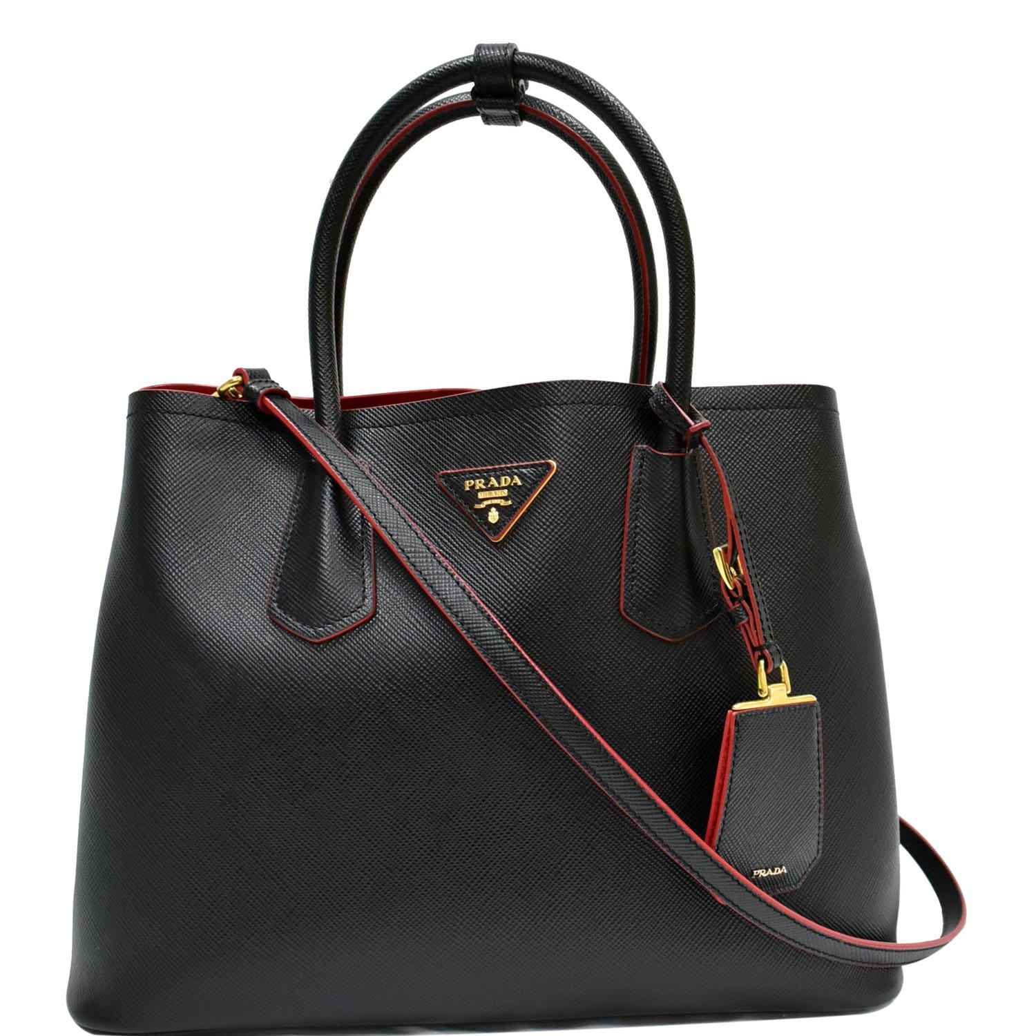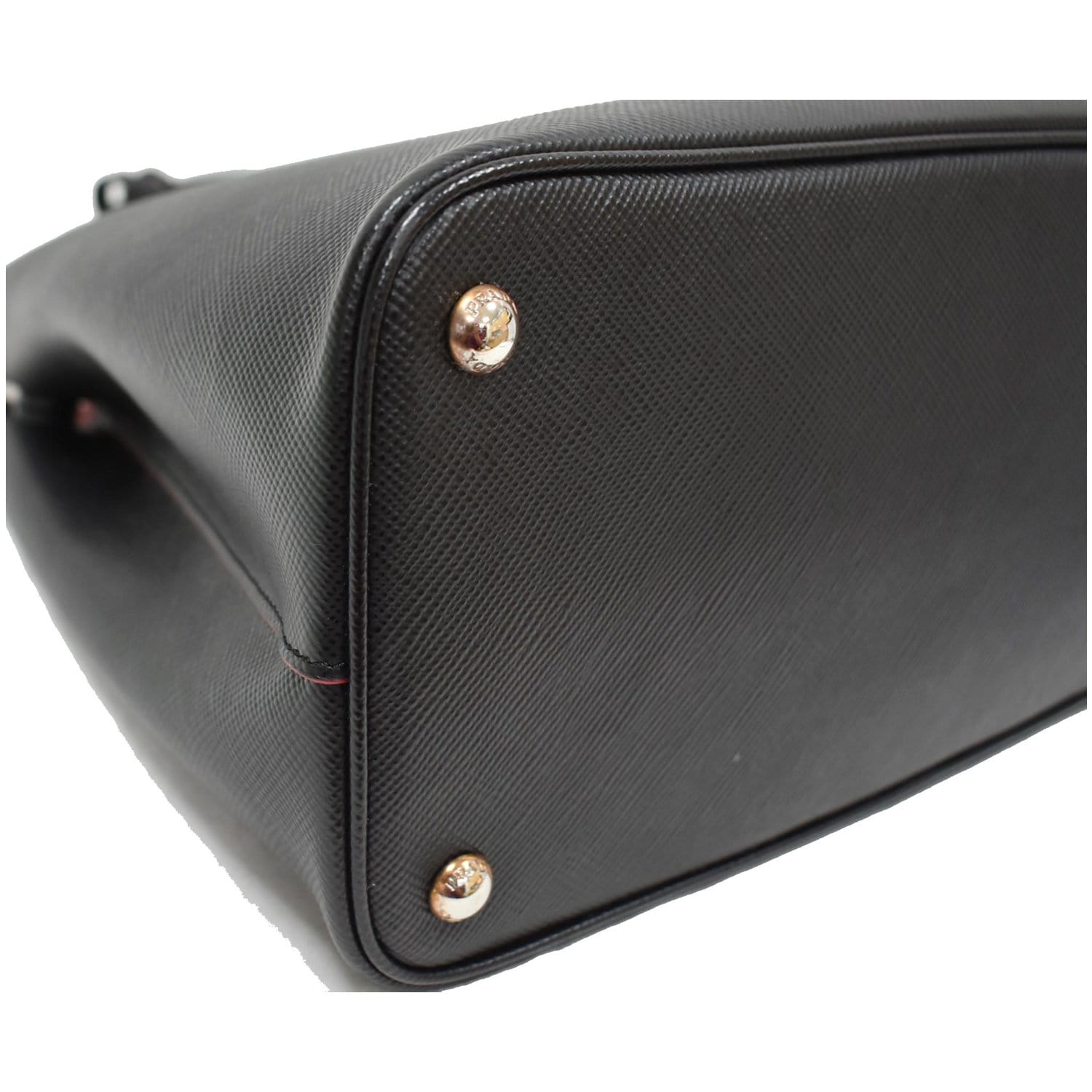 PRADA Double Handle Saffiano Cuir Leather Tote Shoulder Bag Black