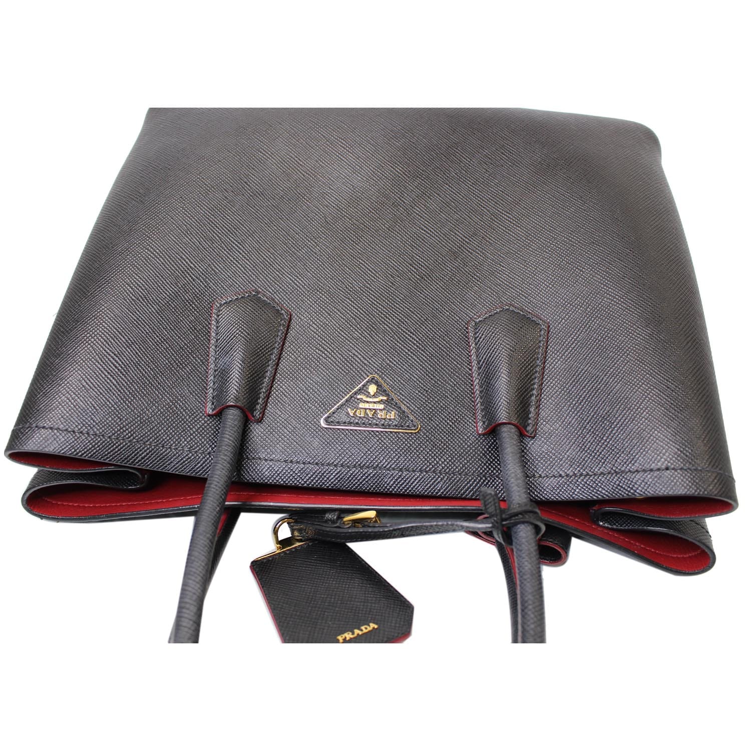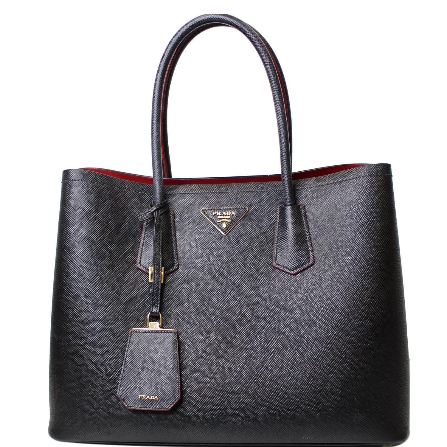 PRADA Double Handle Saffiano Leather Tote Bag Black