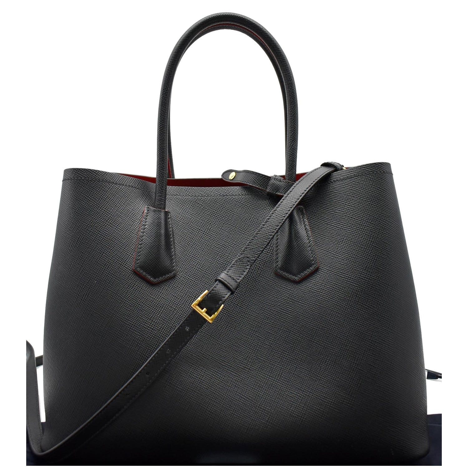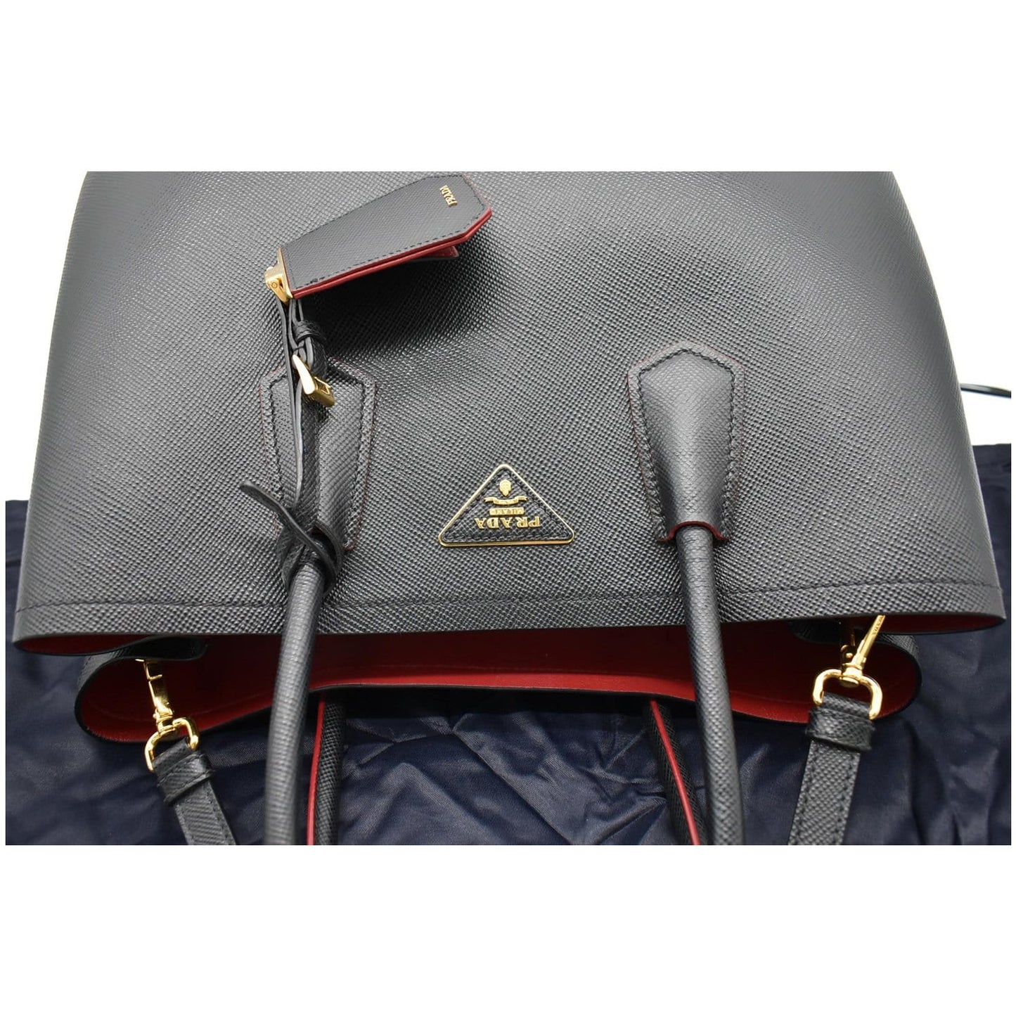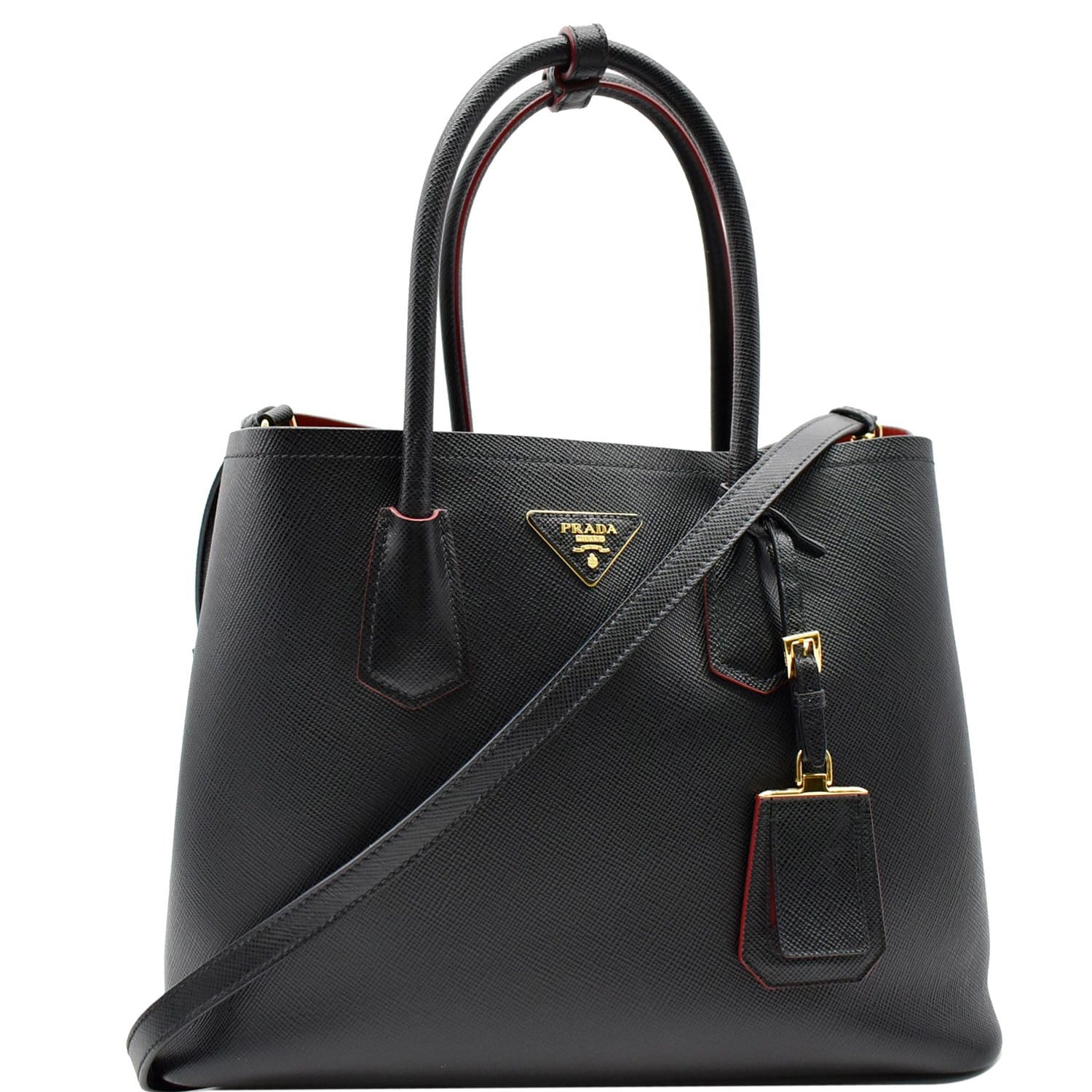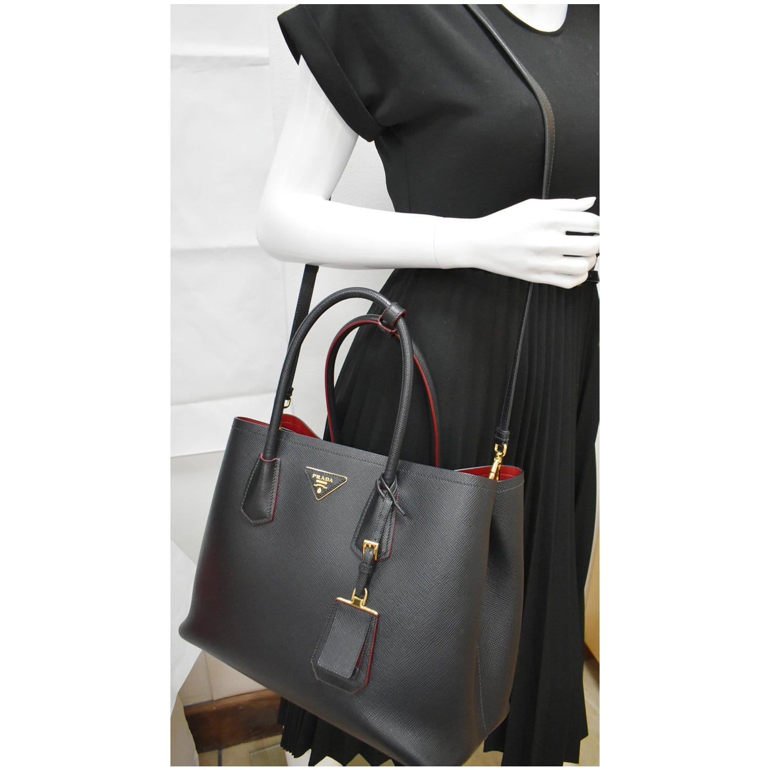 PRADA Double Handle Saffiano Leather Tote Shoulder Bag Black