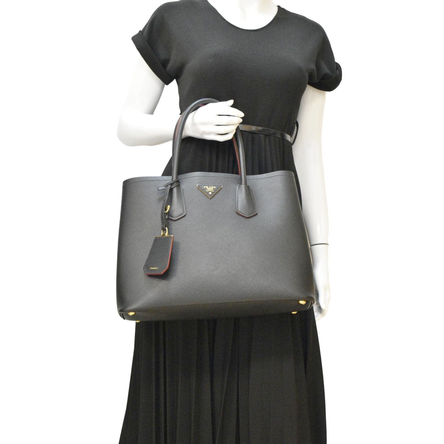 PRADA Double Handle Saffiano Leather Tote Bag Black