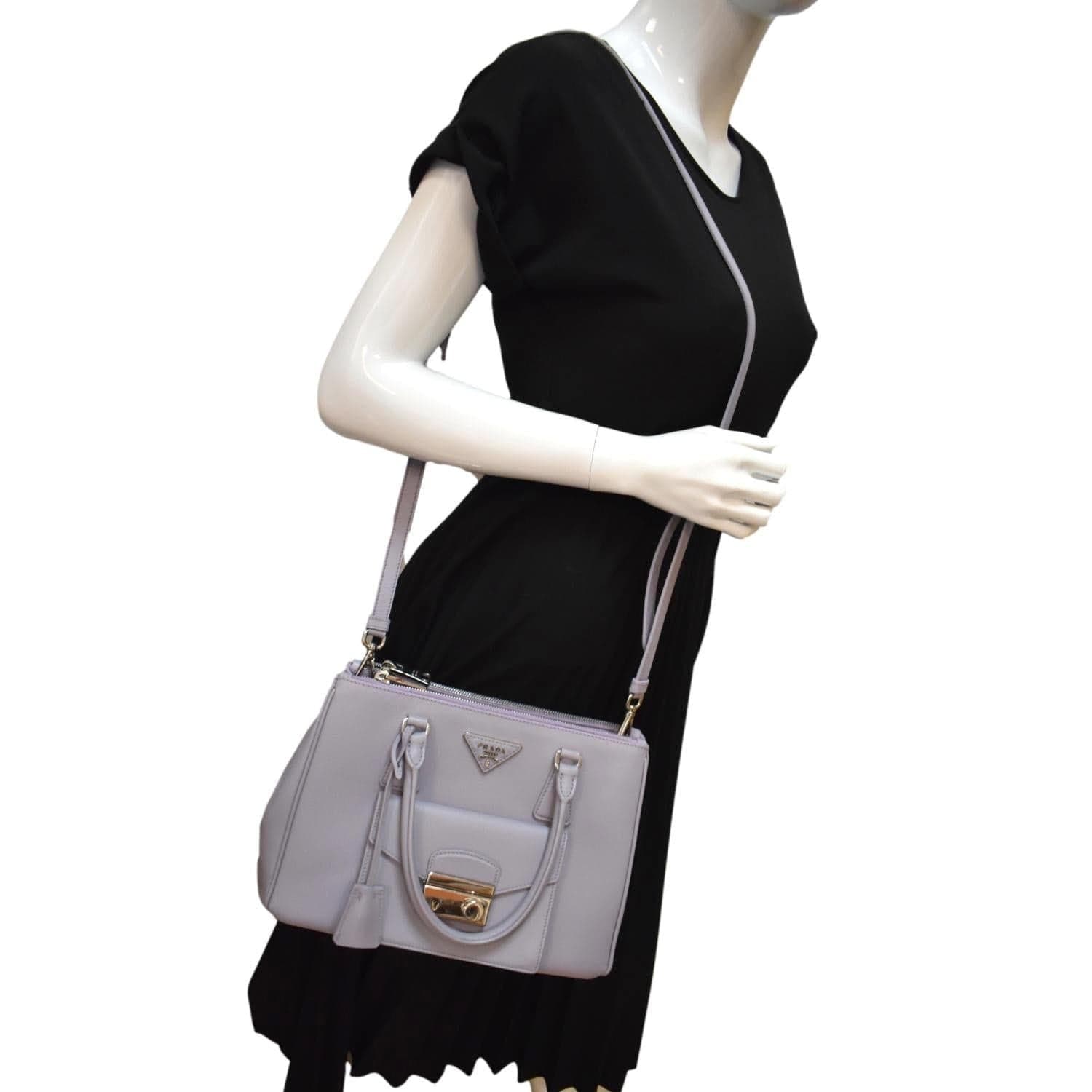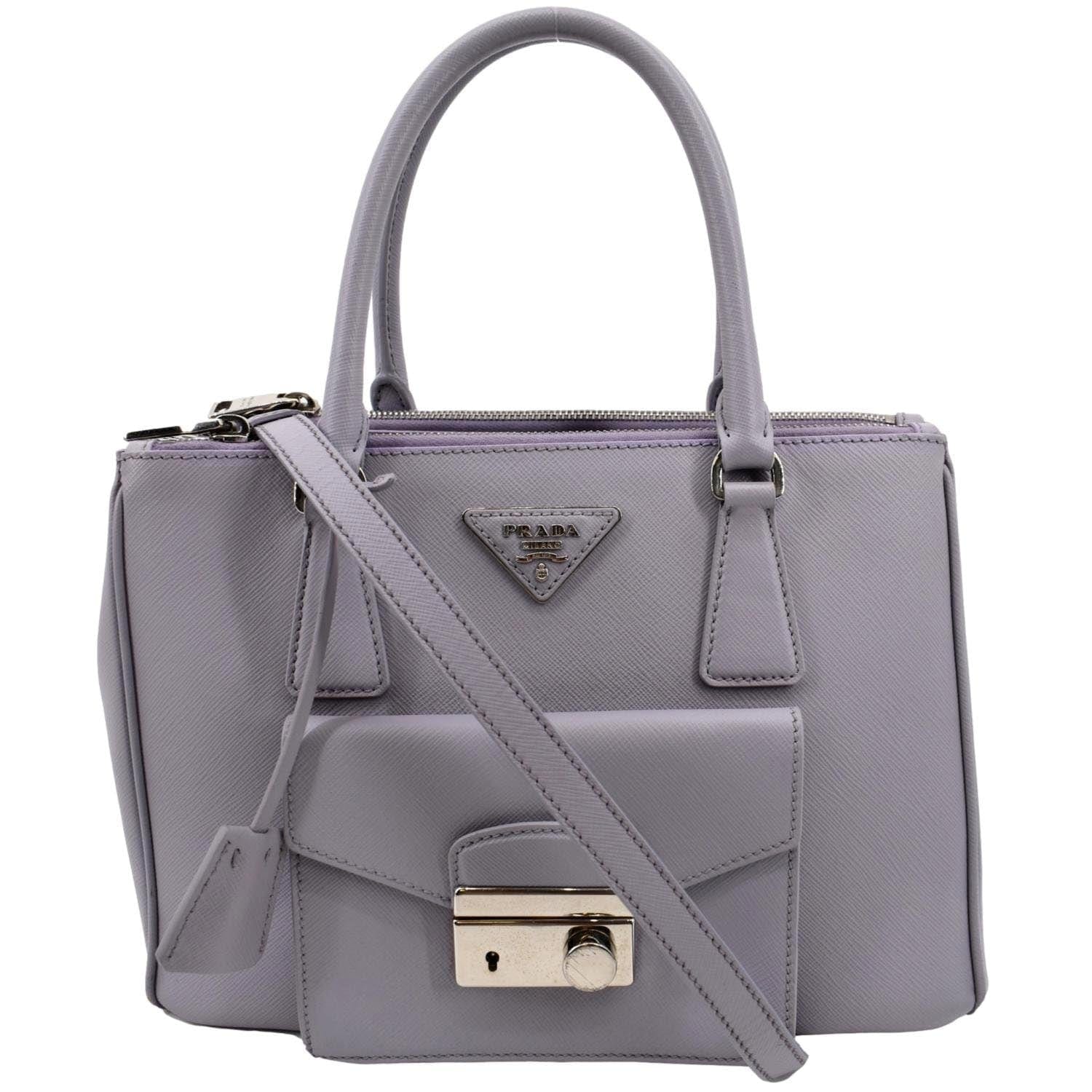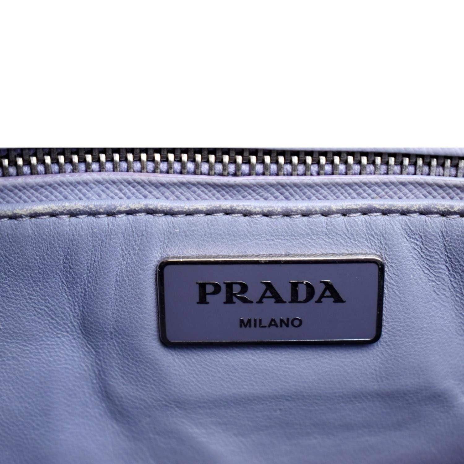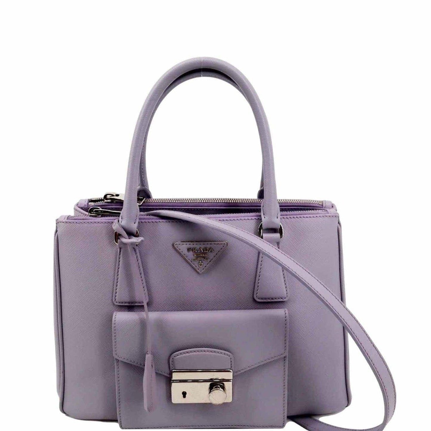 PRADA Front Pocket Double Zip Saffiano Leather Tote Shoulder Bag Light Purple