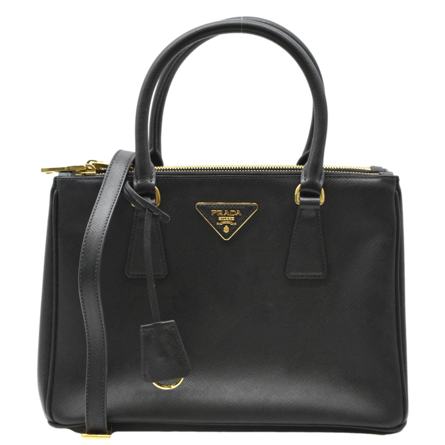 PRADA Galleria Double-Zip small Saffiano Leather Tote Bag Black