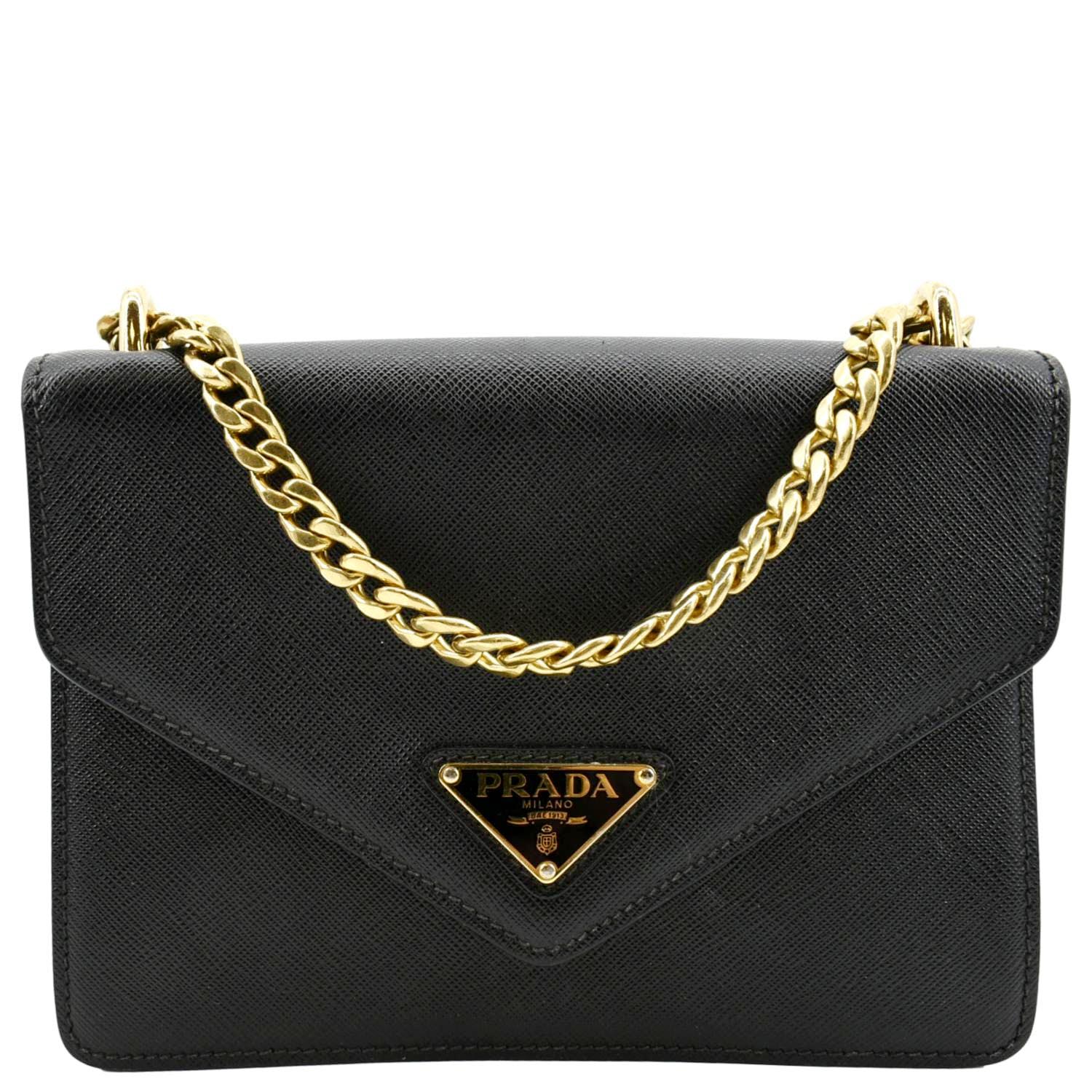 PRADA Flip Lock Chain Saffiano Leather Crossbody Bag Black