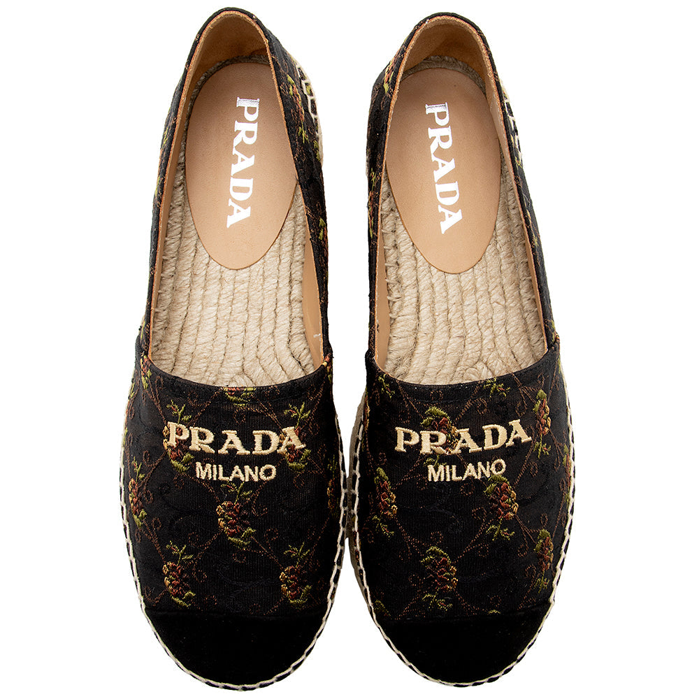 Prada Floral Jacquard Anemon Espadrilles - Size 8 / 38 (SHF-18660)