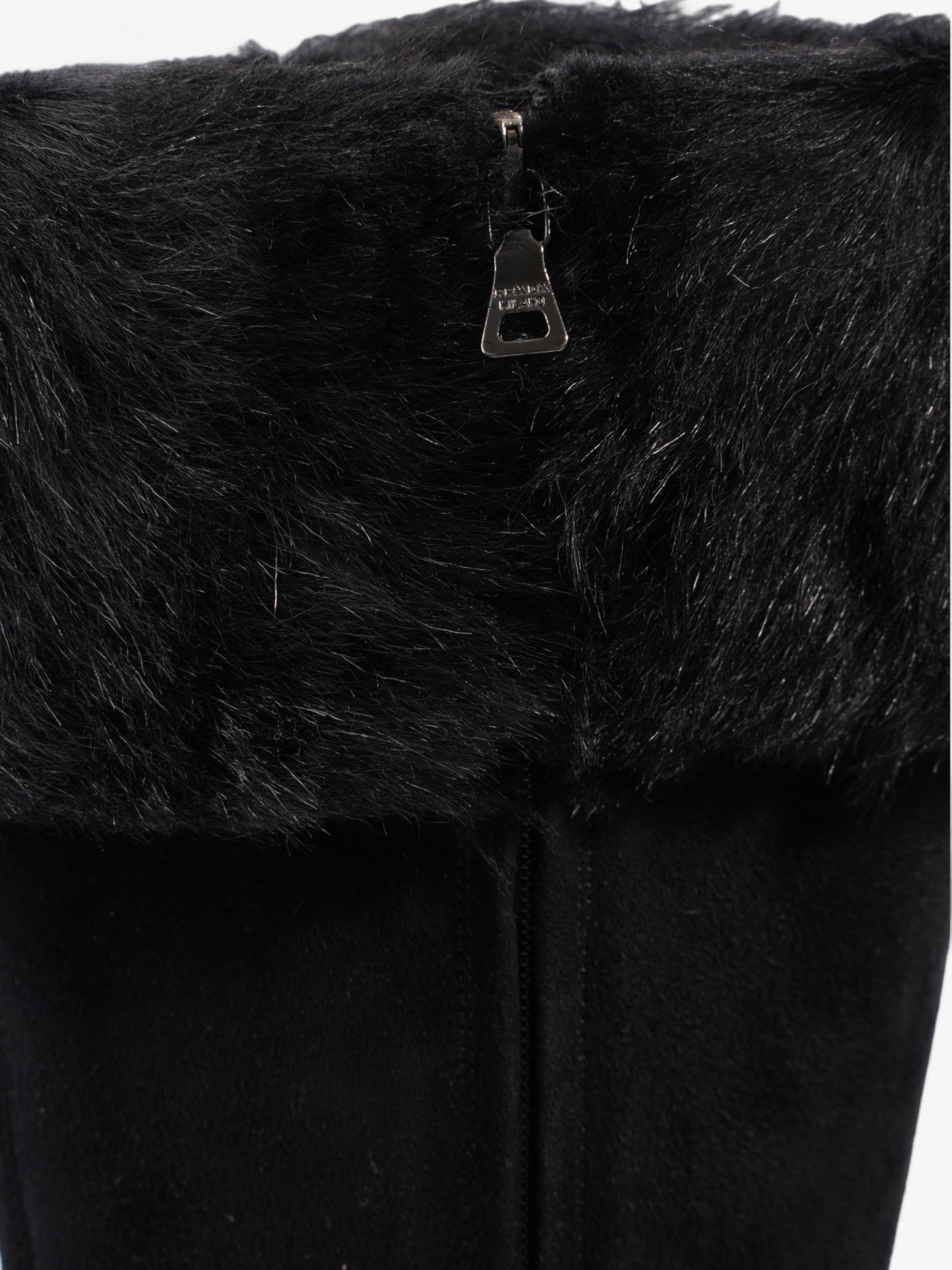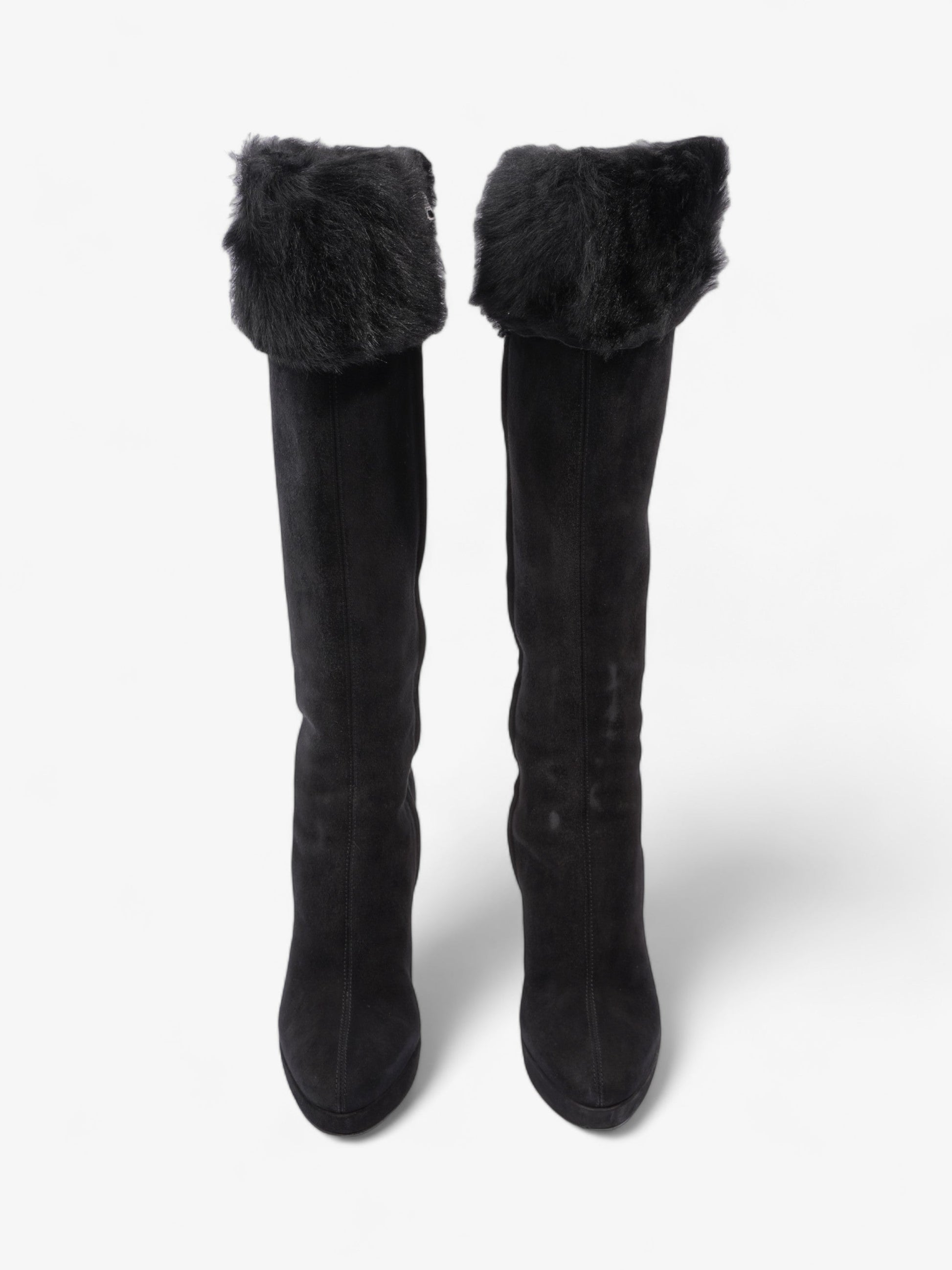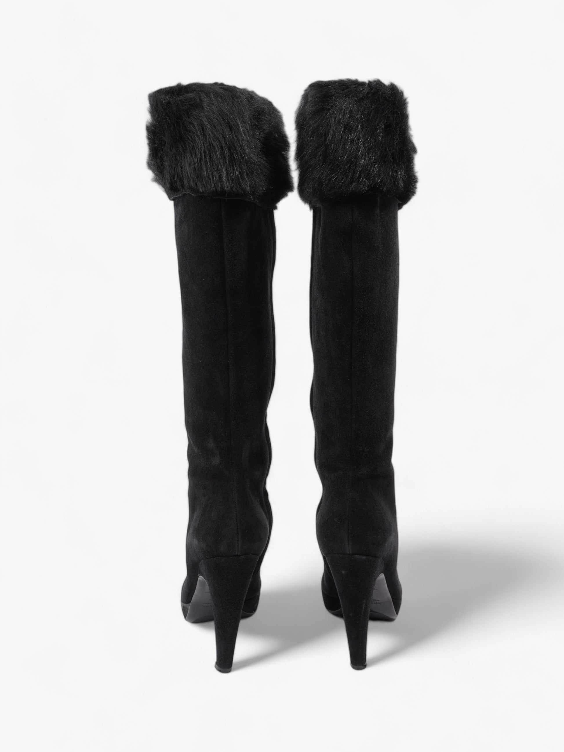 Prada Fur Trim Calf Boots 100mm Black Suede EU 37 UK 4