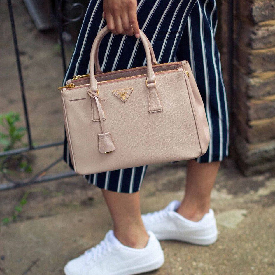 The Prada Galleria bag is modern and sleek in its design, showcasing Italian glamour. Although versatile and understated enough for everyday wear, it is a stunning and unique design with textured Saffiano leather, structured leather straps and gorgeous gold tone trims. This cameo colour way is the perfect addition to your spring/summer wardrobe. Wear on the shoulder with the detachable strap for daytime or carry but the structured leather handles for the evening; this bag suits any occasion.