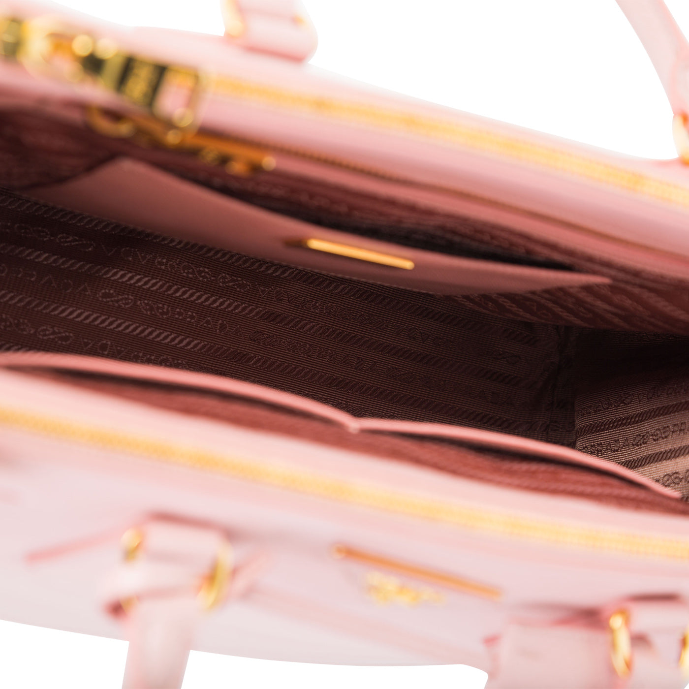 The Galleria is unmistakably the most iconic bag of the Italian fashion house. It is modern, sleek and showcases Italian glamour. Crafted from saffiano leather, the bag comes in a stunning pink hue, with structured leather straps and gorgeous gold tone trims. Wear it from daytime through to evening, this bag can accompany any outfit.
