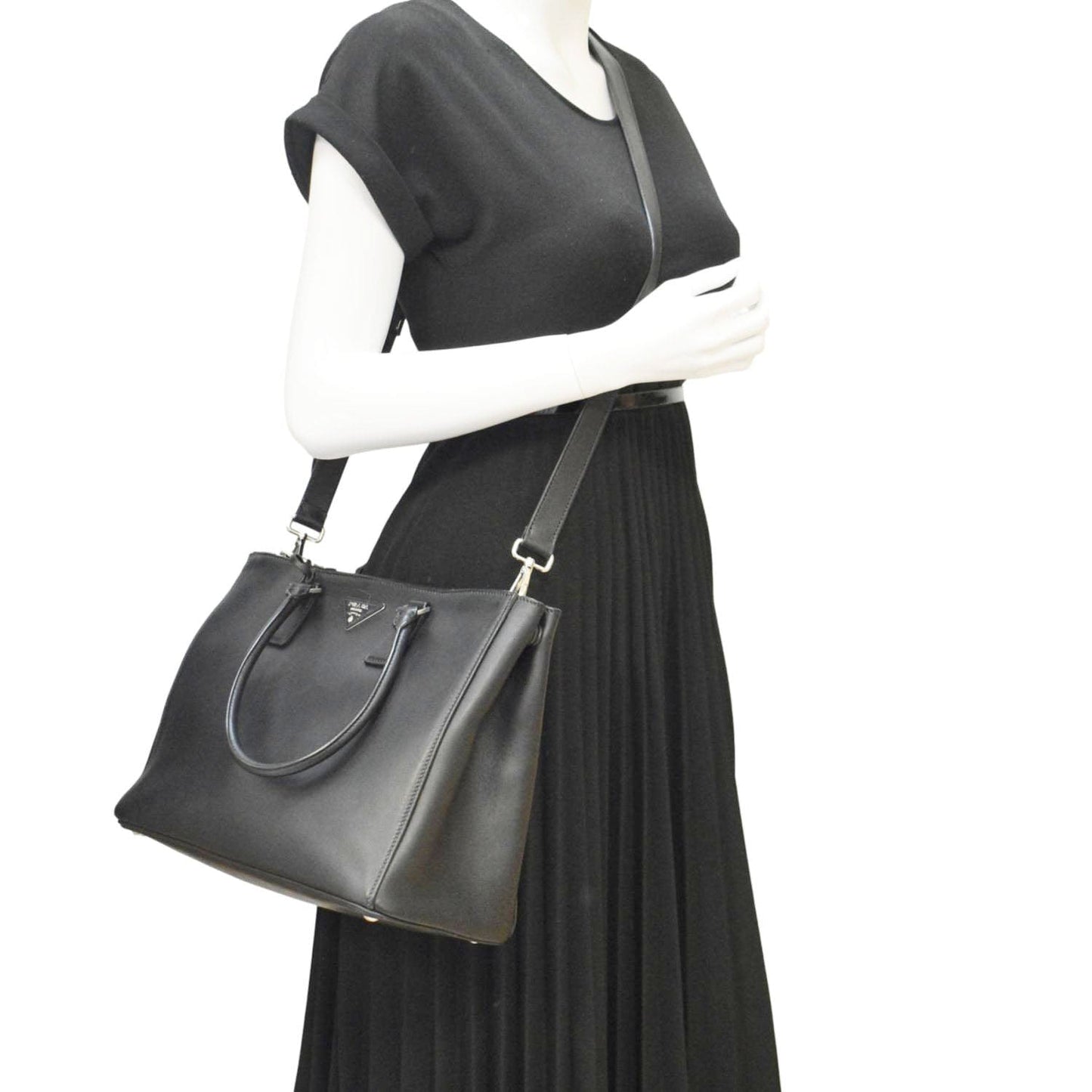 PRADA Galleria Large Leather Tote Shoulder Bag Black