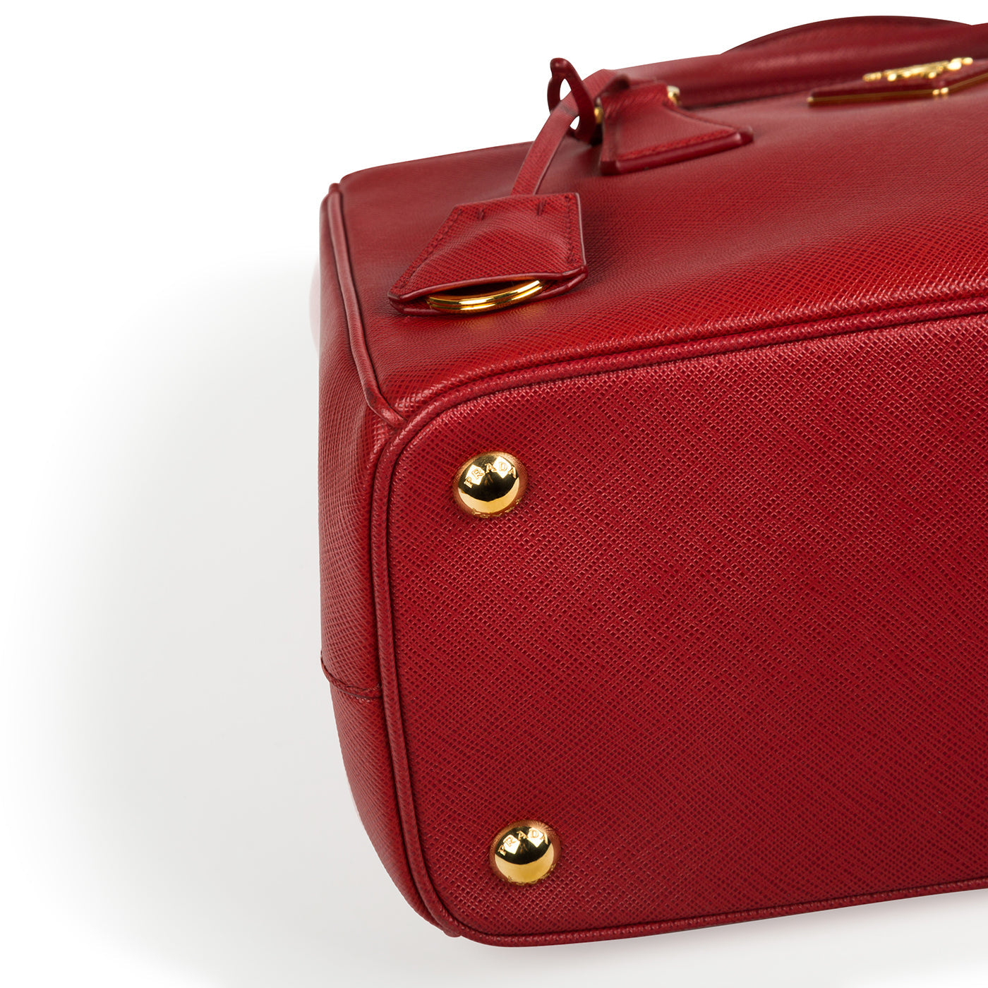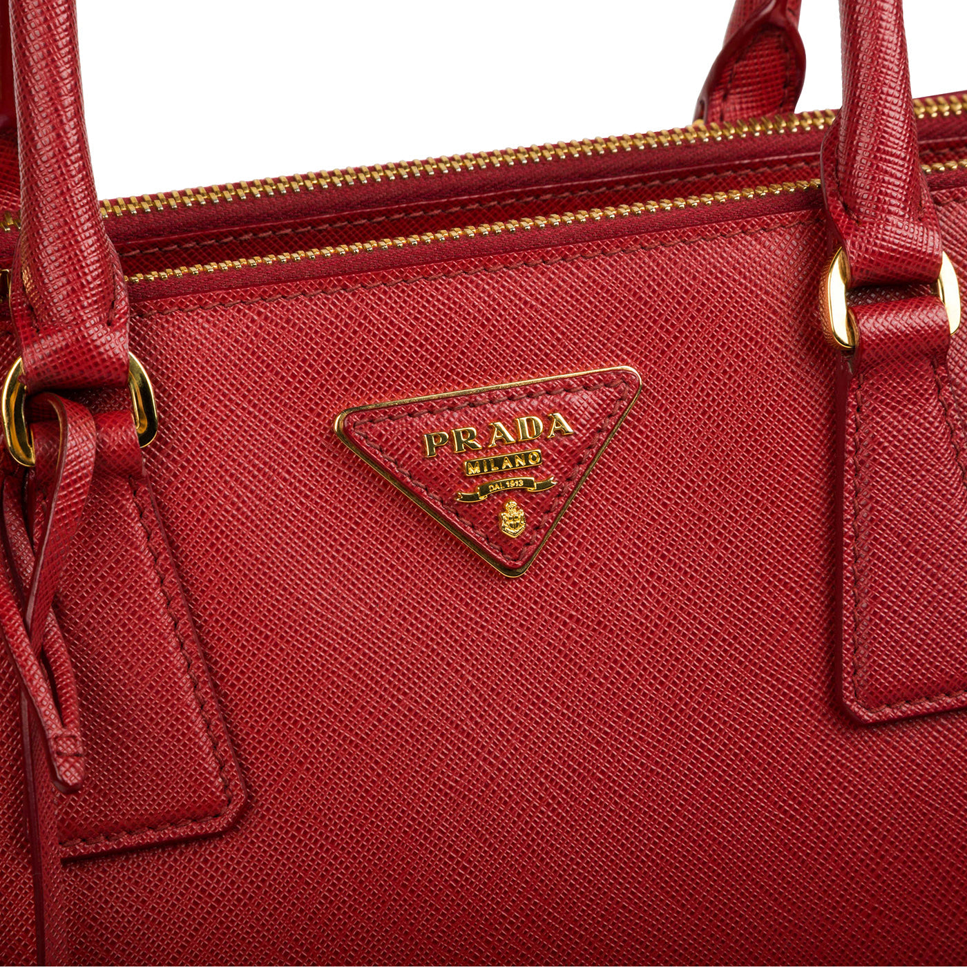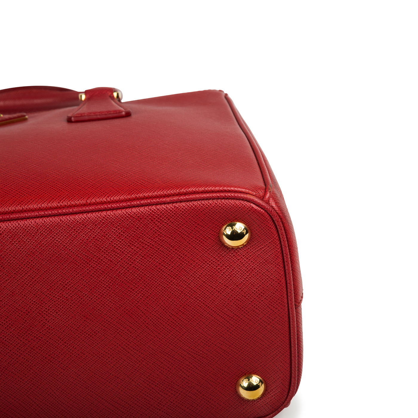Immaculately crafted from the widely renowned saffiano leather, Prada presents the coveted Small Galleria Tote in red saffiano leather. The handbag’s red leather exterior is magnificently adorned with gold toned hardware, maintaining the perfect balance between sophisticated and contemporary. The bag is further punctuated with Prada’s coveted logo plaque and a hanging clochette. The bag also features an open top design, with two large zip compartments on the front and back of the bag. Its interior is lined with their quintessential dark logo textile. Ideal for work or quite simply lunches and dinners, the Prada Galleria Tote was made to last.