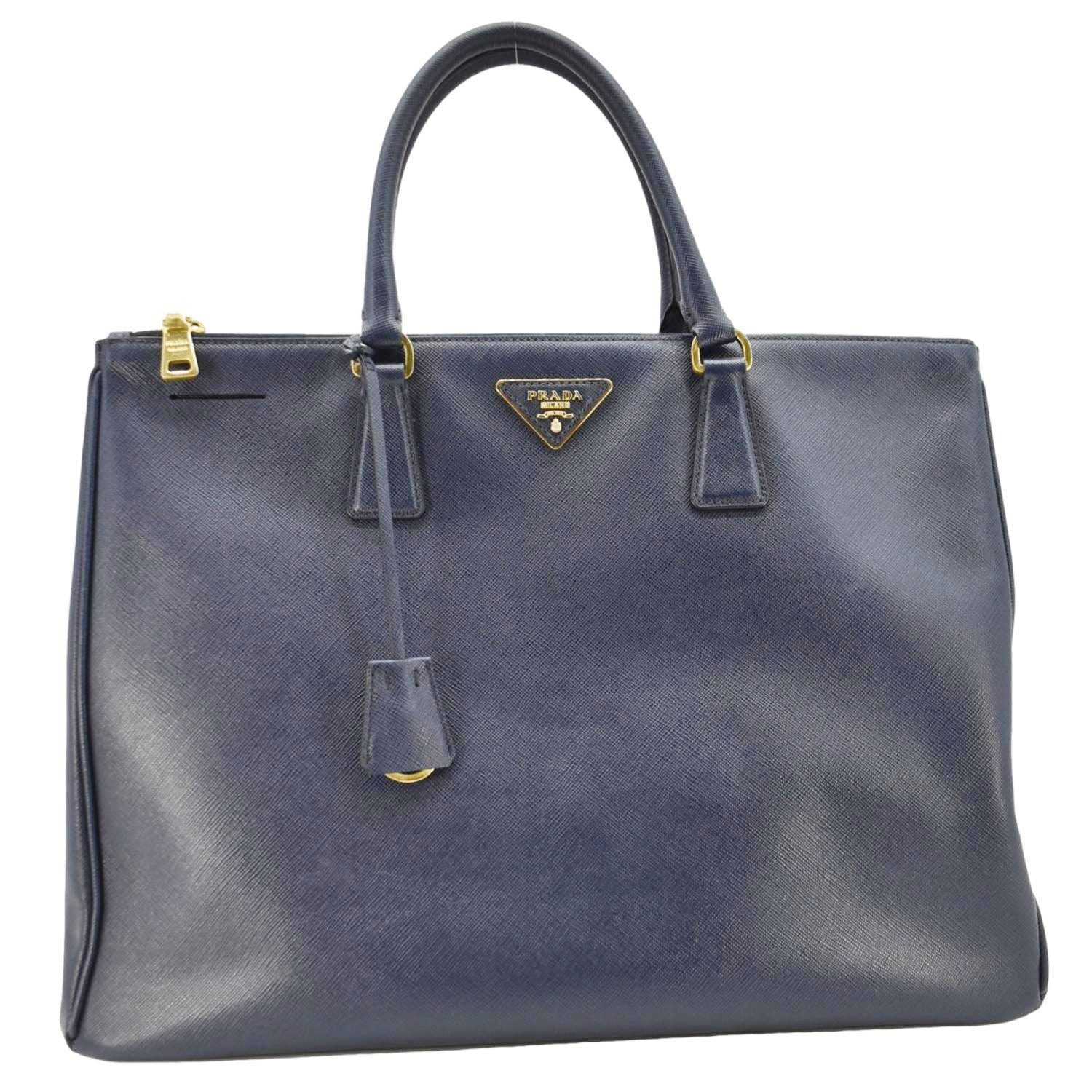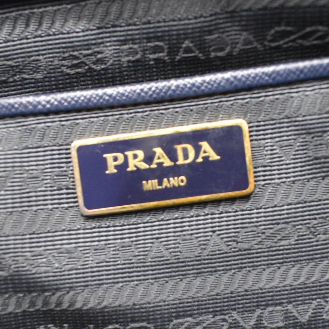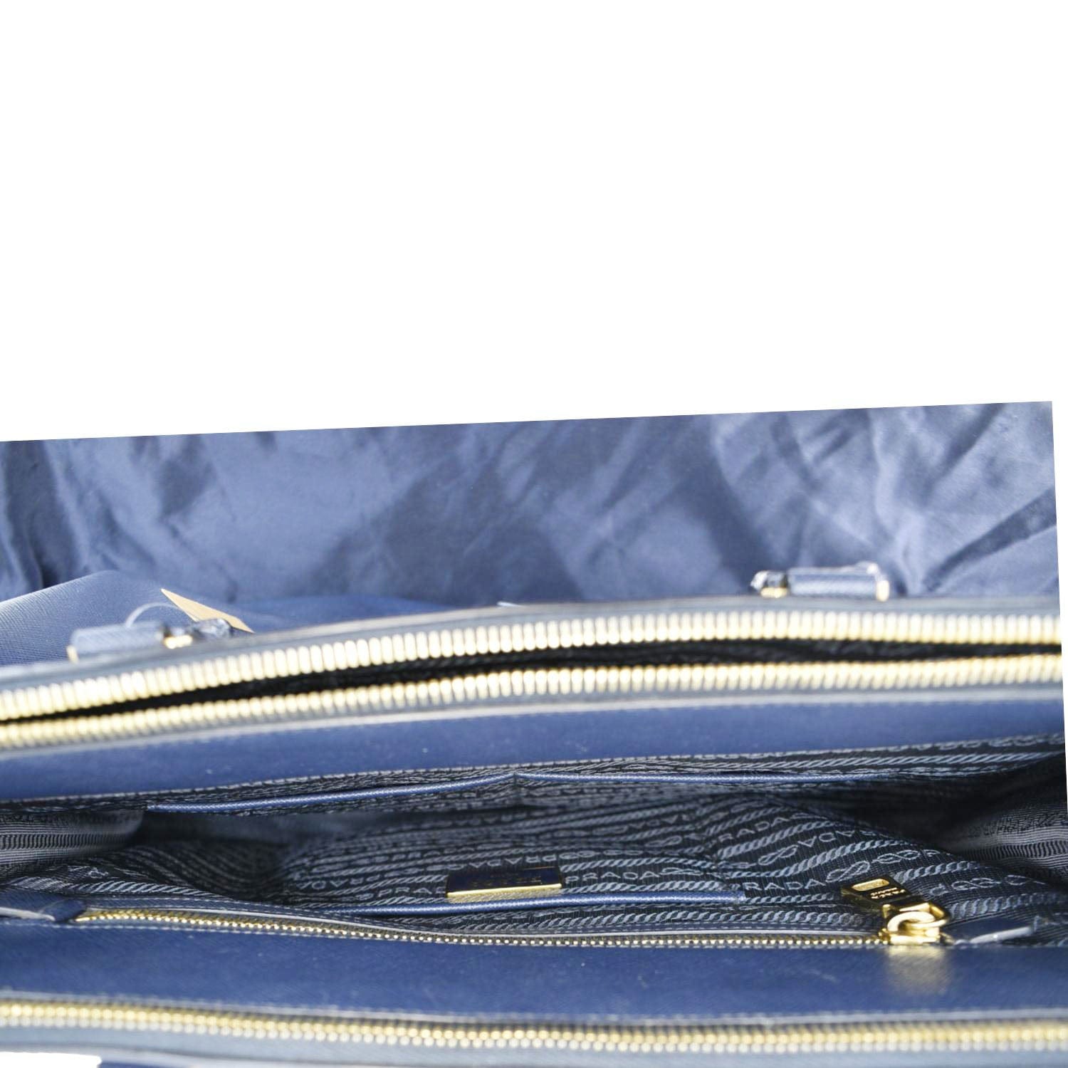 PRADA Galleria Double Zip Saffiano Leather Top Handle Tote Bag Blue