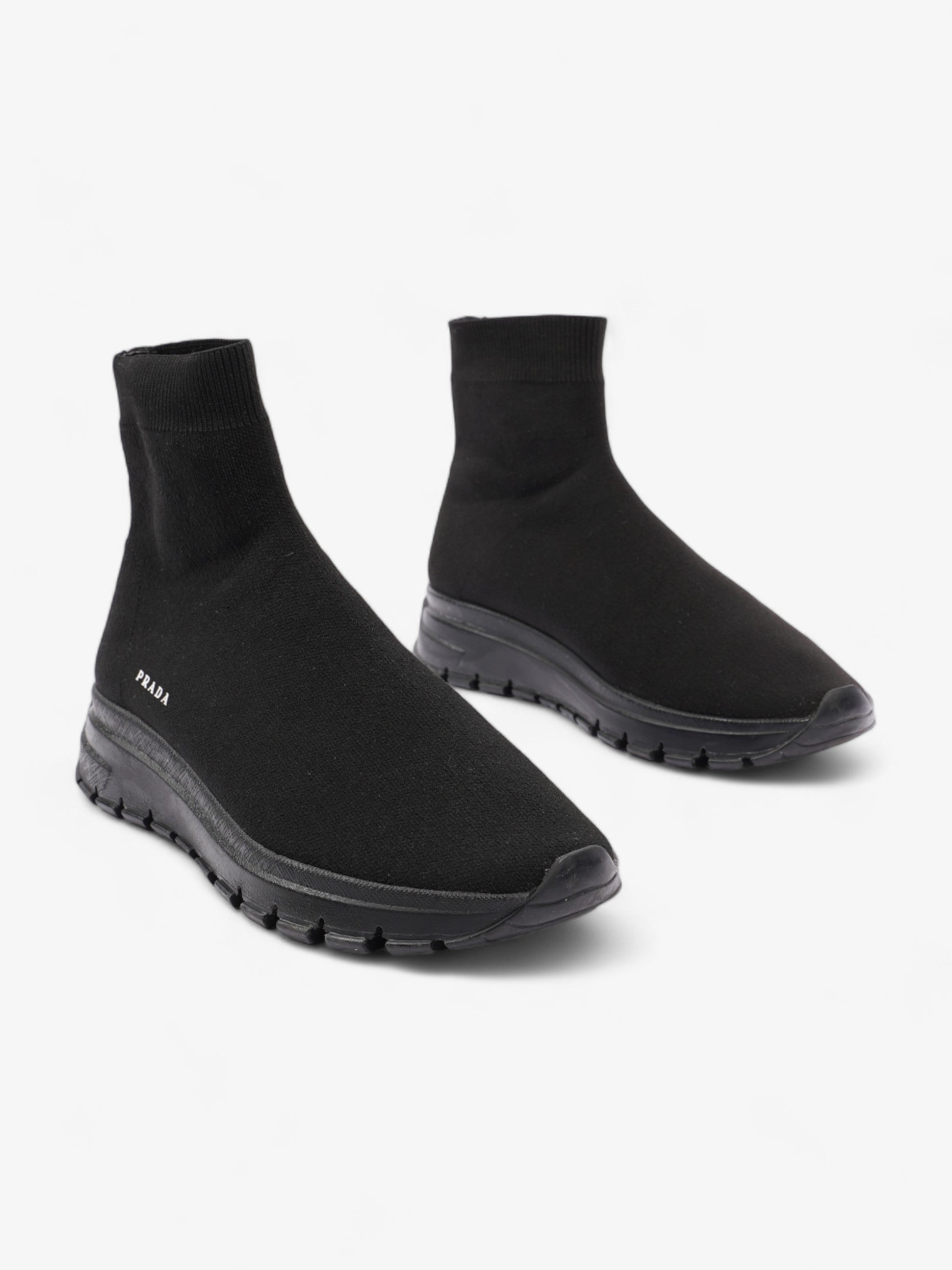 Prada High Top Sock Sneakers Black Cotton EU 39 UK 6