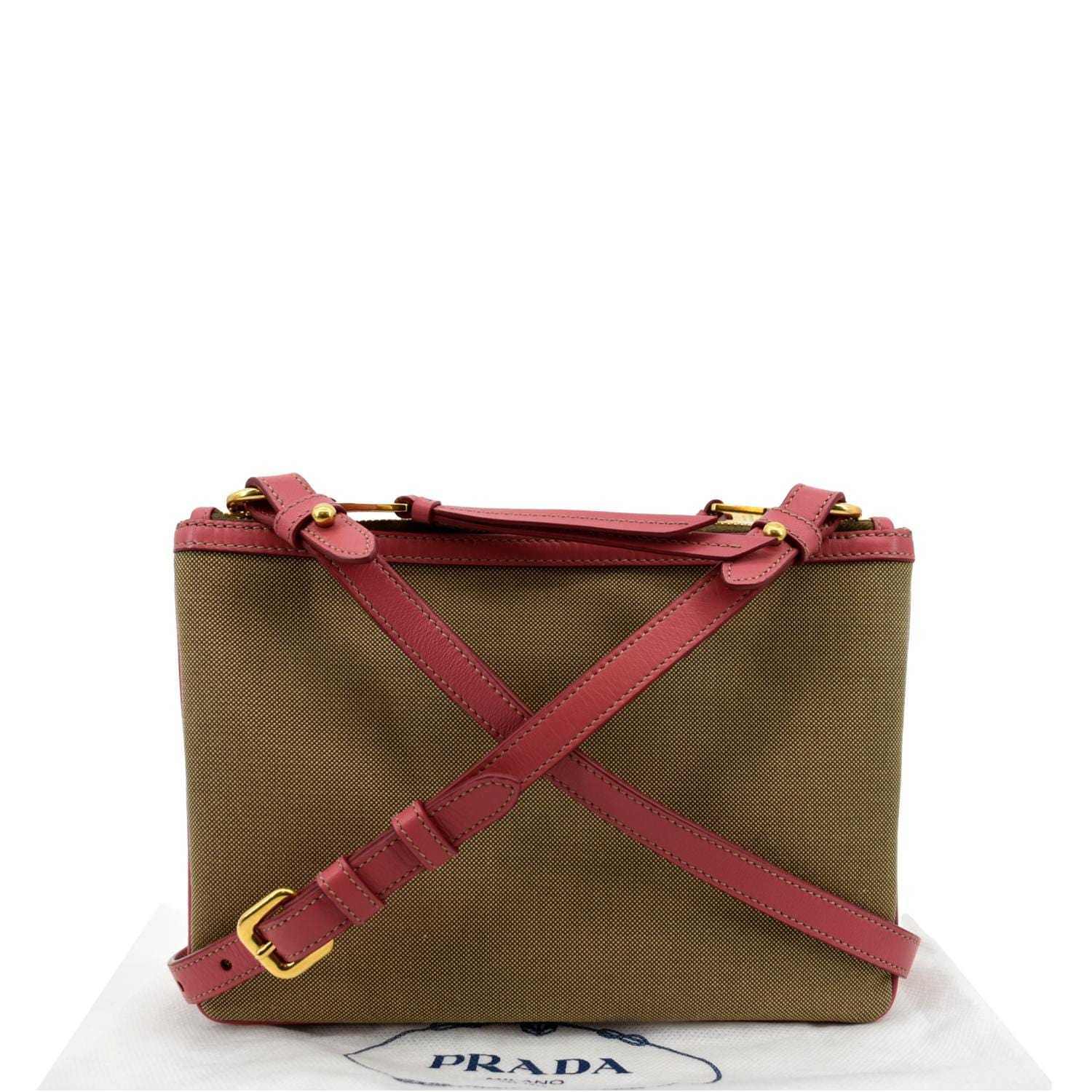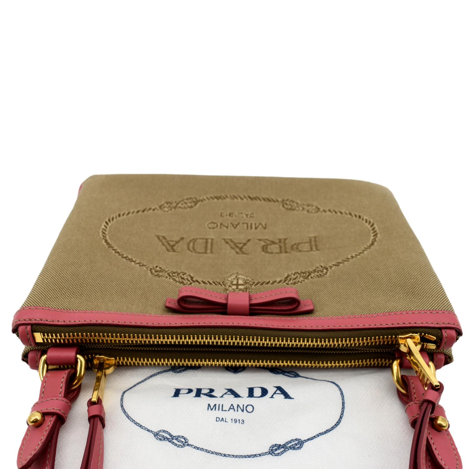 PRADA Jacquard Fabric Trim Crossbody Bag Brown