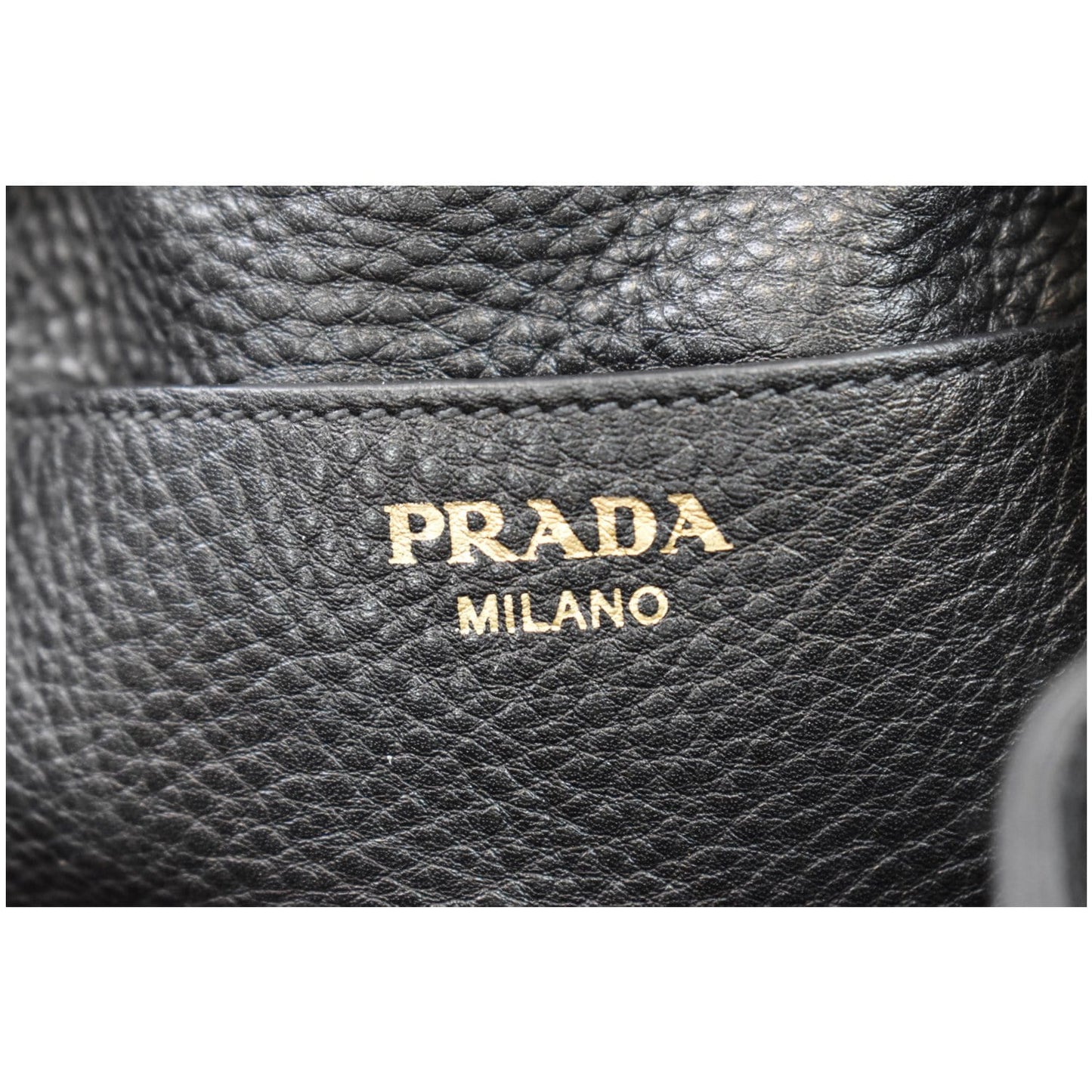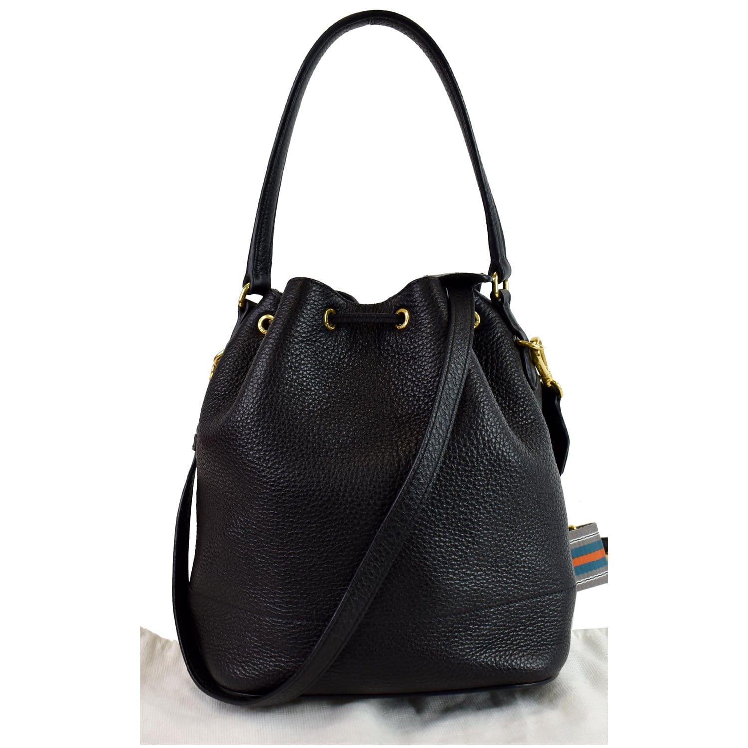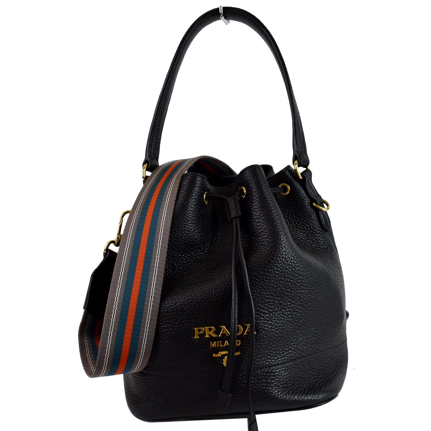 PRADA Logo Drawstring Leather Bucket Shoulder Bag Black