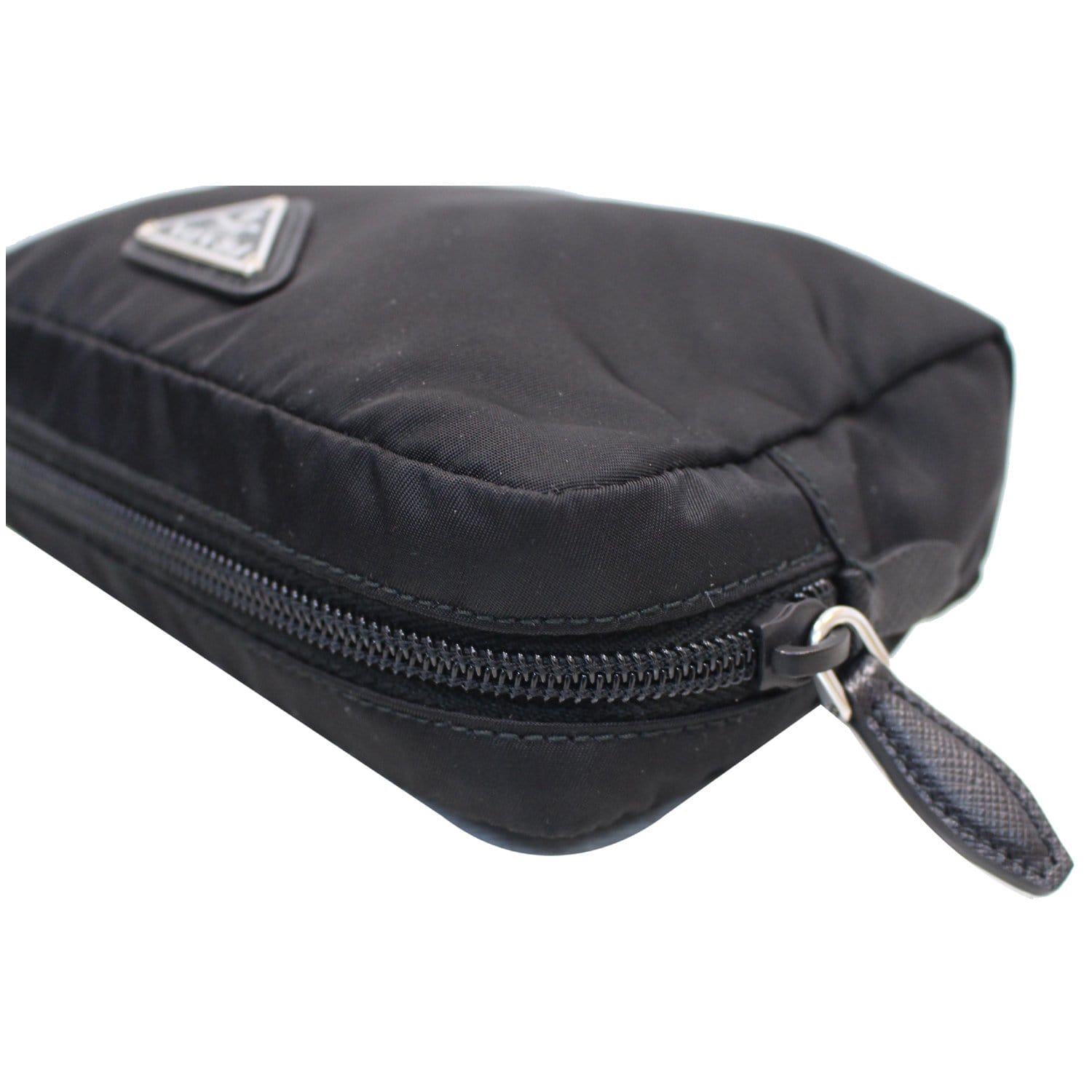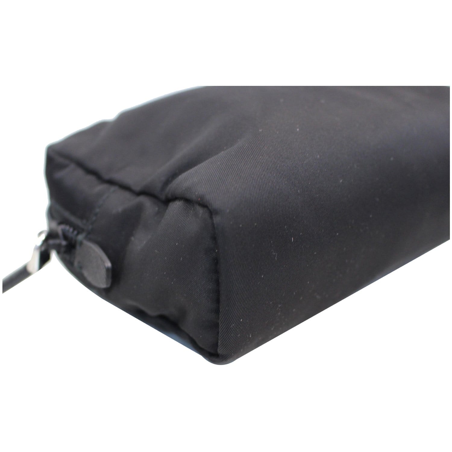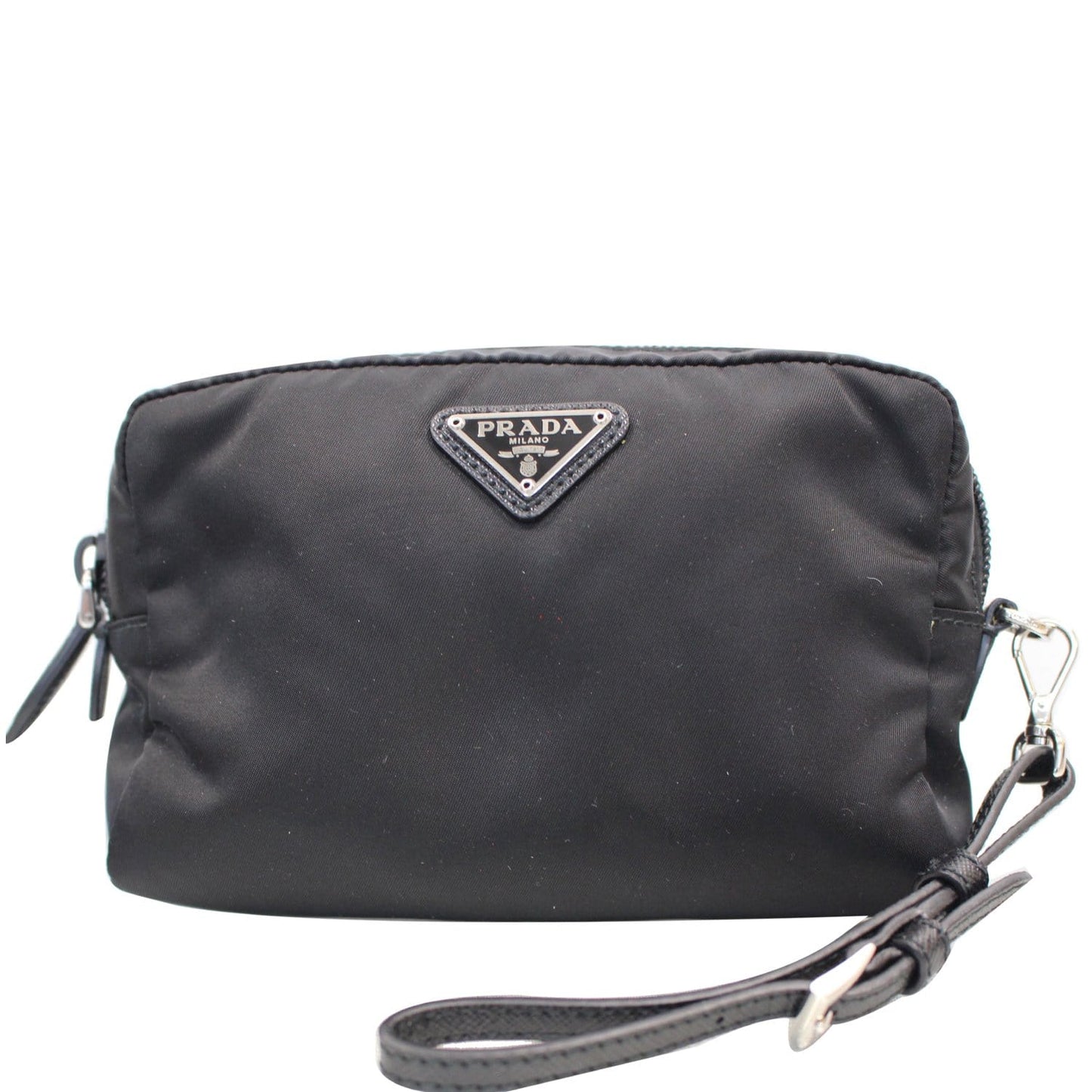 PRADA Logo Round Edge Nylon Cosmetic Wristlet Pouch Black 1NE021