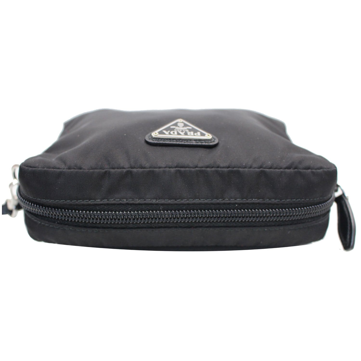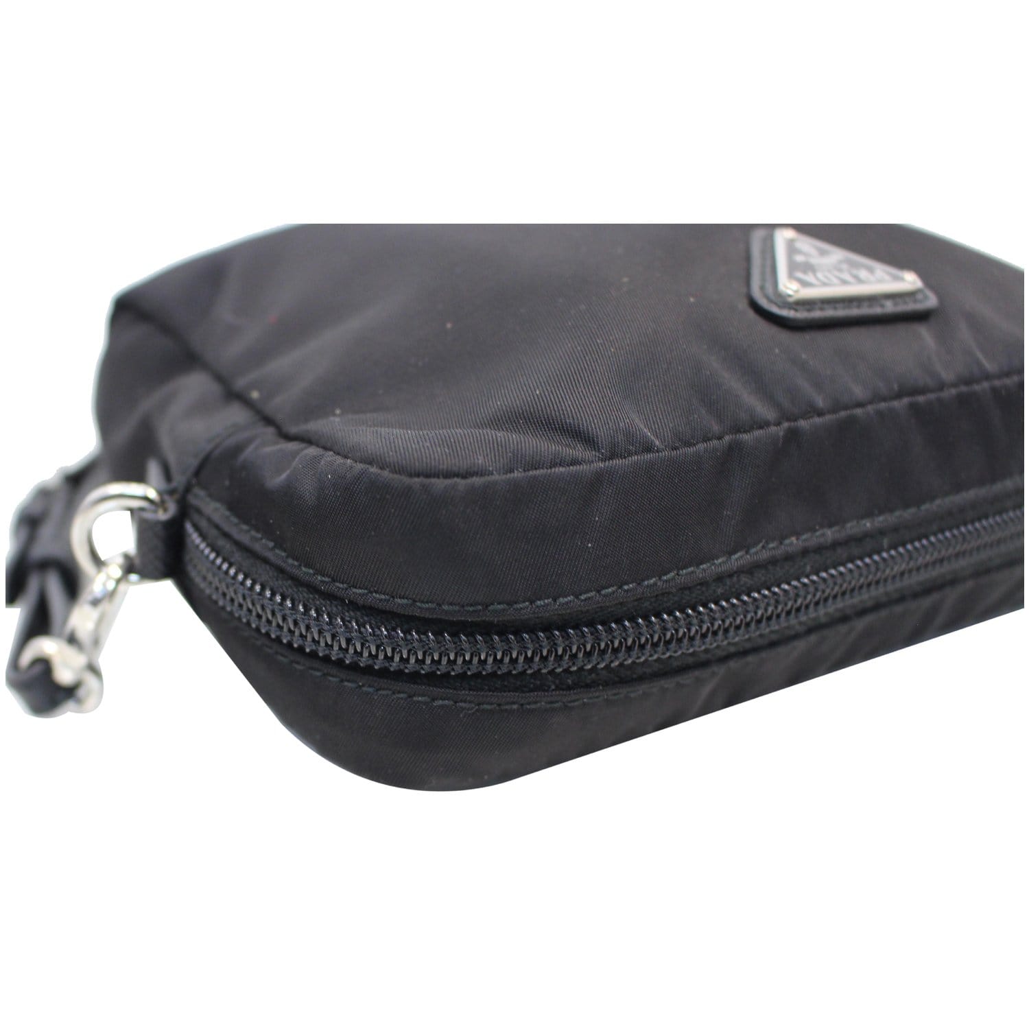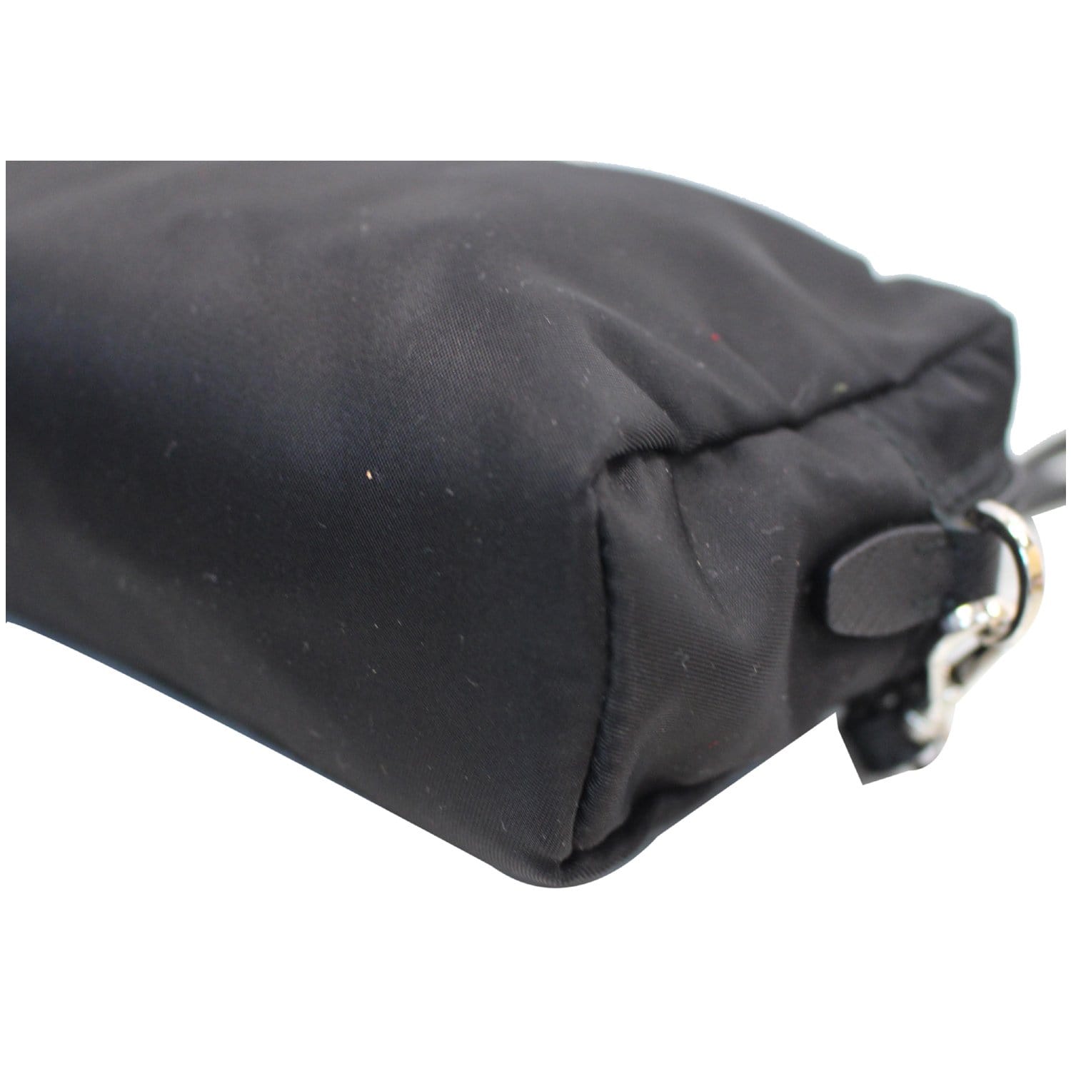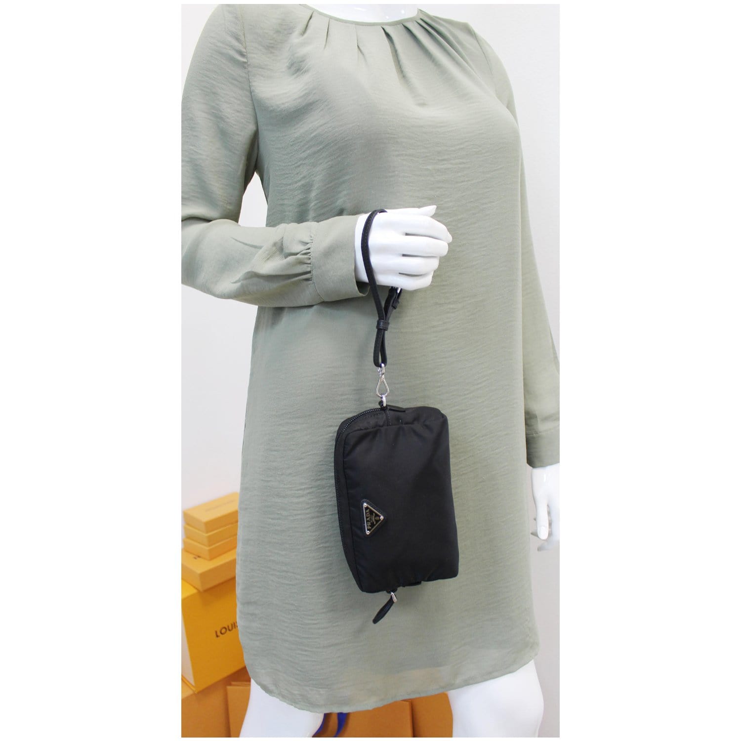 PRADA Logo Round Edge Nylon Cosmetic Wristlet Pouch Black 1NE021