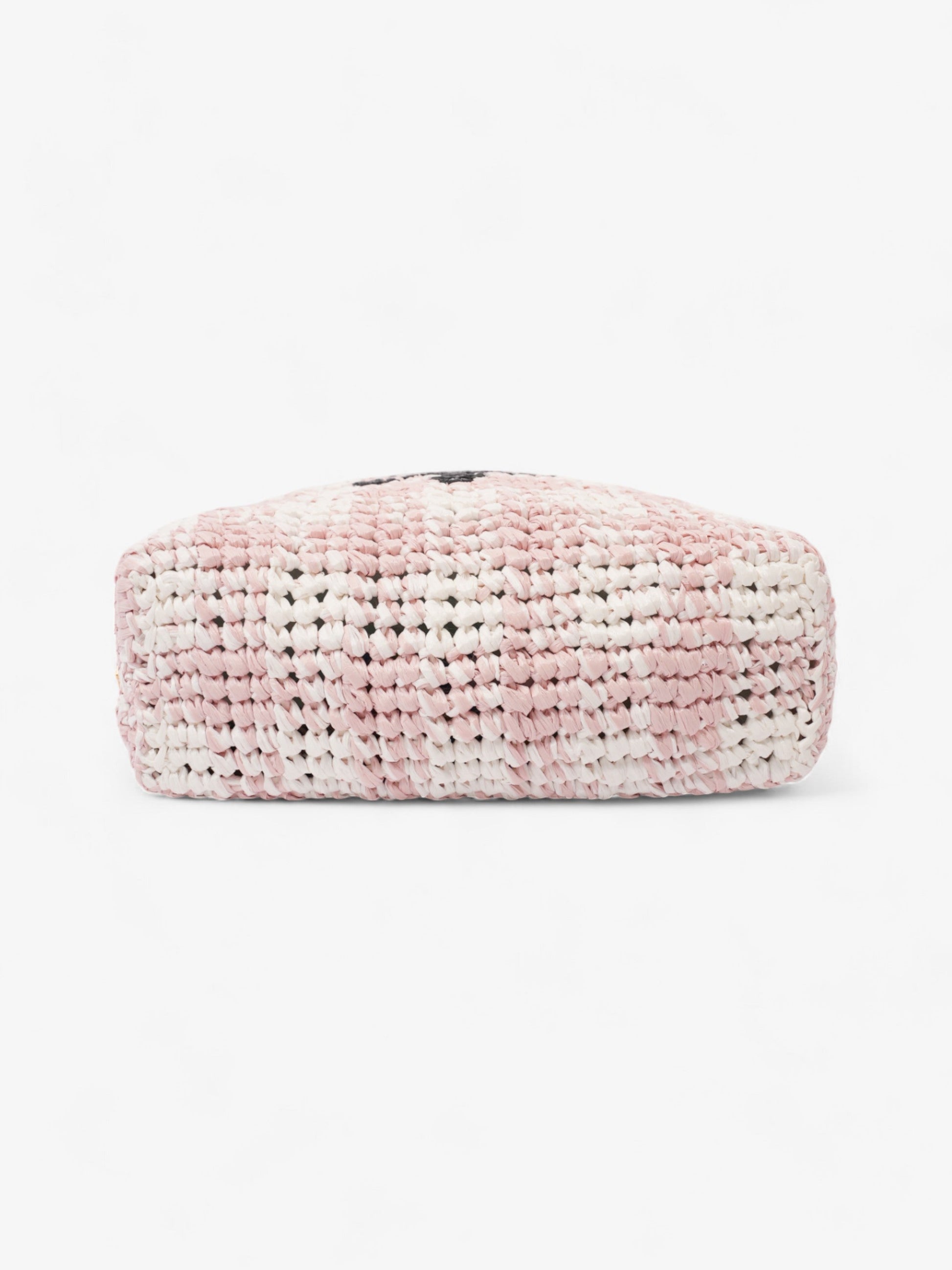 Prada Logo Tote Bag Pink / White / Black Raffia Small