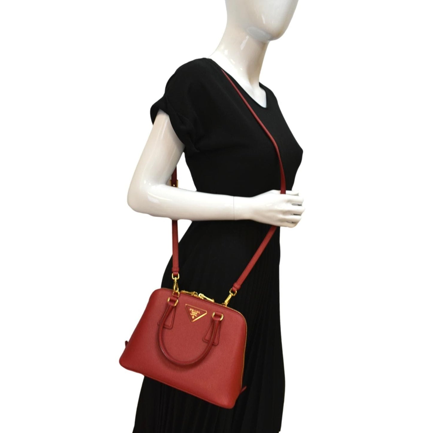 PRADA Lux Saffiano Leather Top Handle Satchel Bag Red
