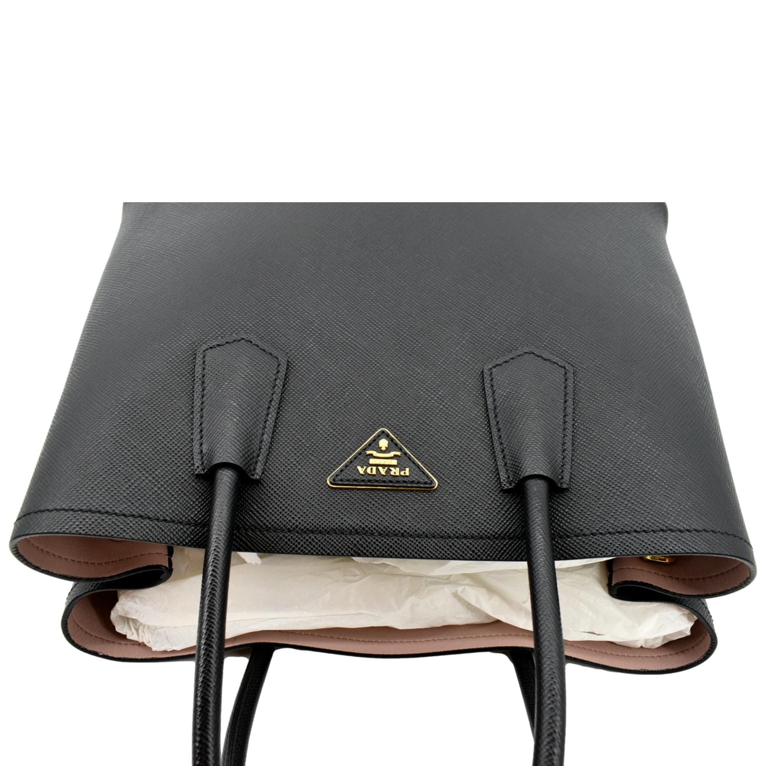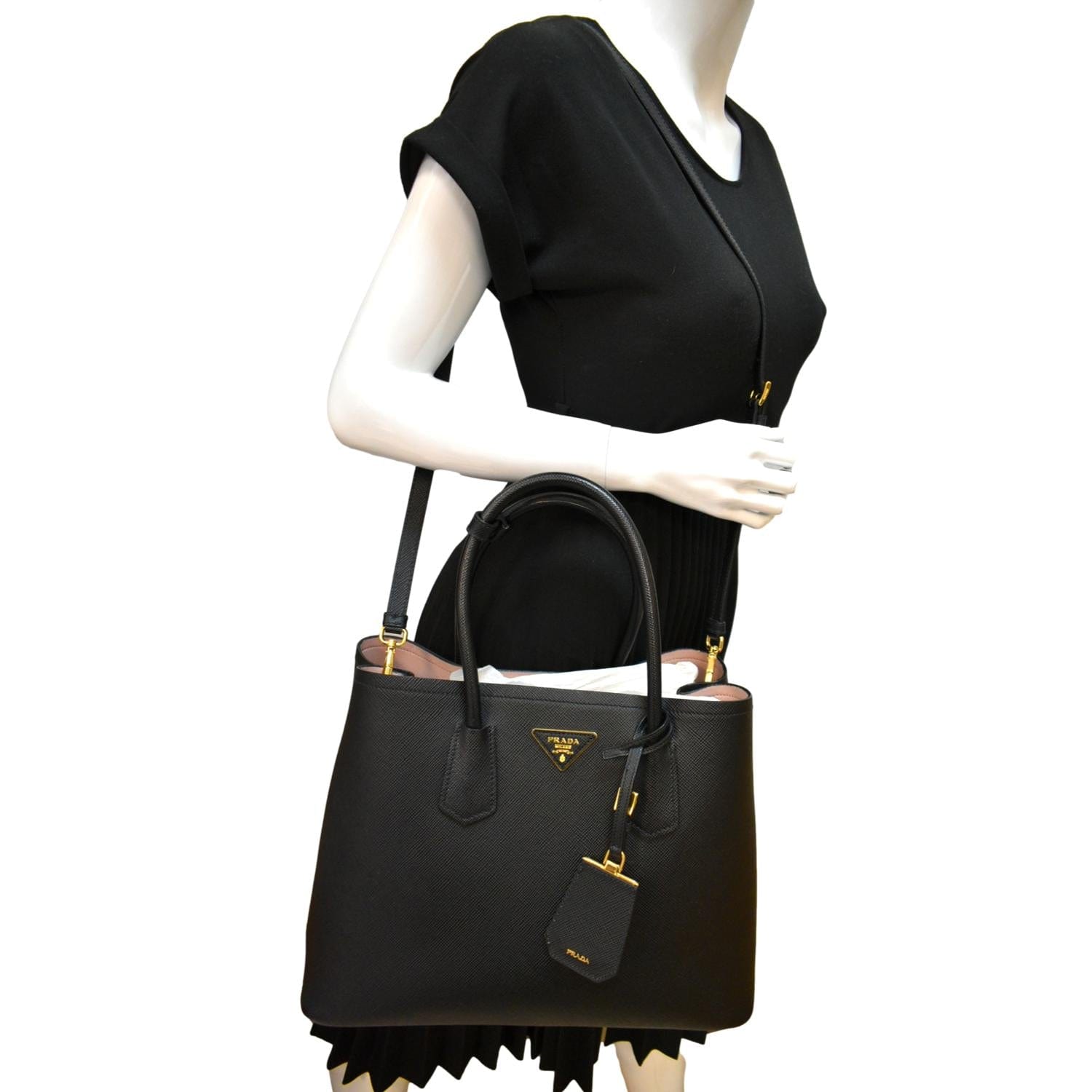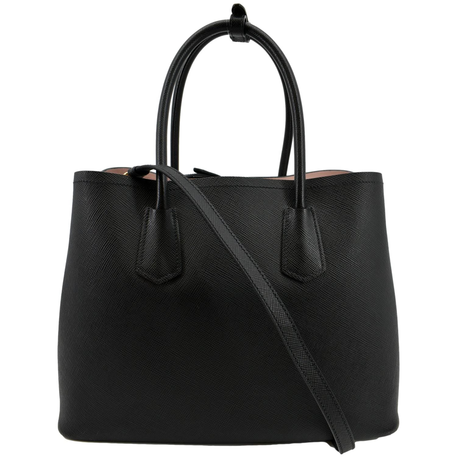 PRADA Medium Double Saffiano Leather Crossbody Bag Black