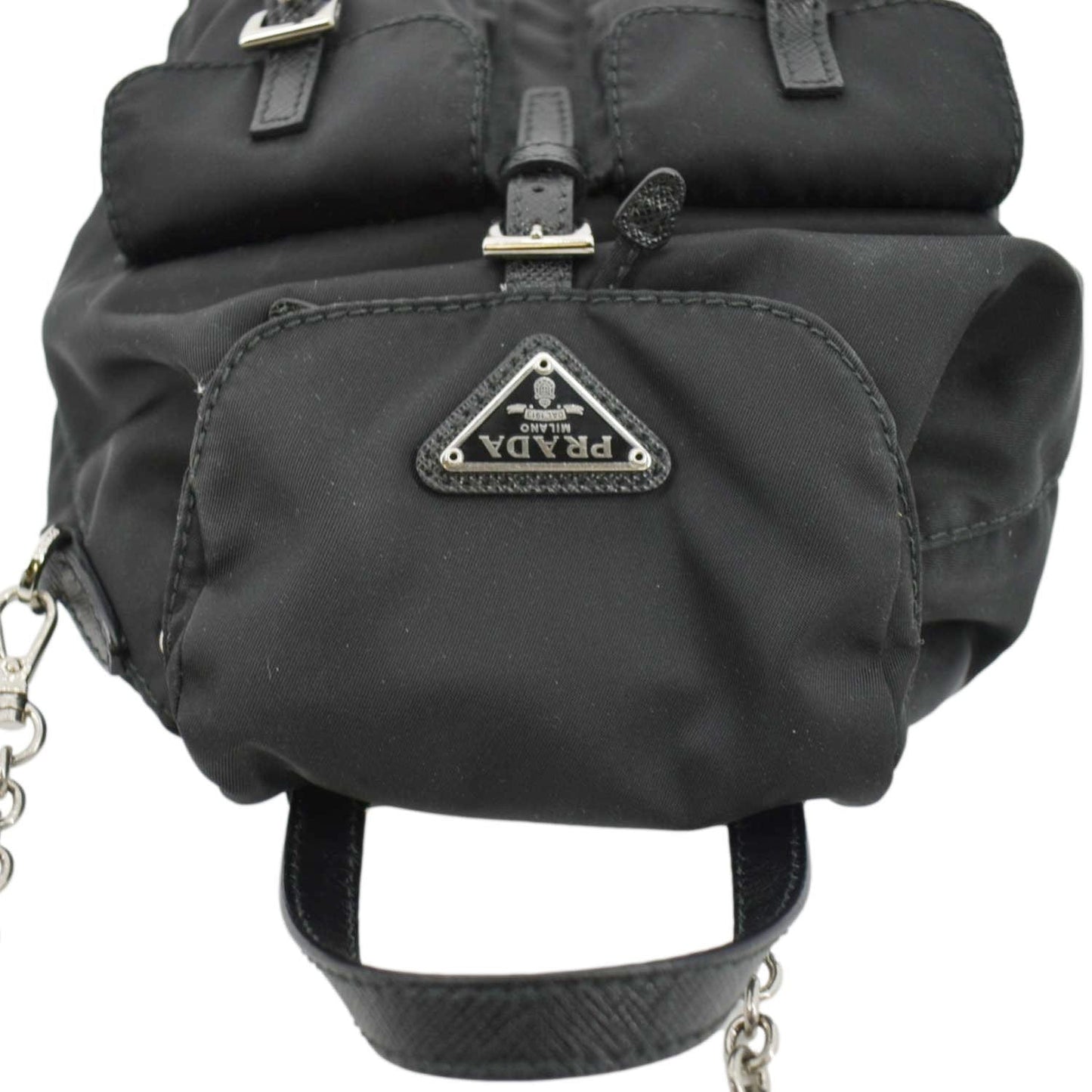 PRADA Double Pocket Mini Nylon Backpack Shoulder Bag Black