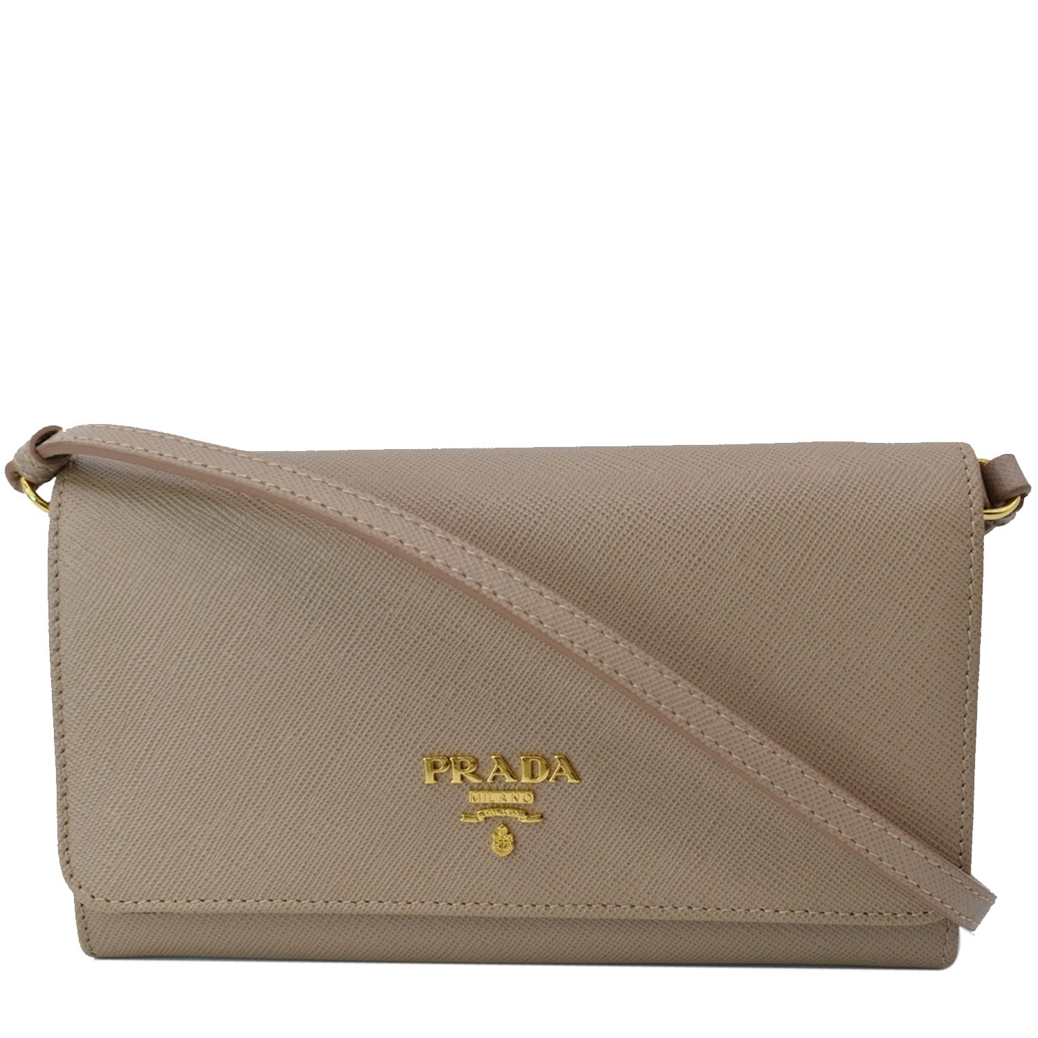 PRADA Mini Saffiano Leather Strap Crossbody Bag Natural
