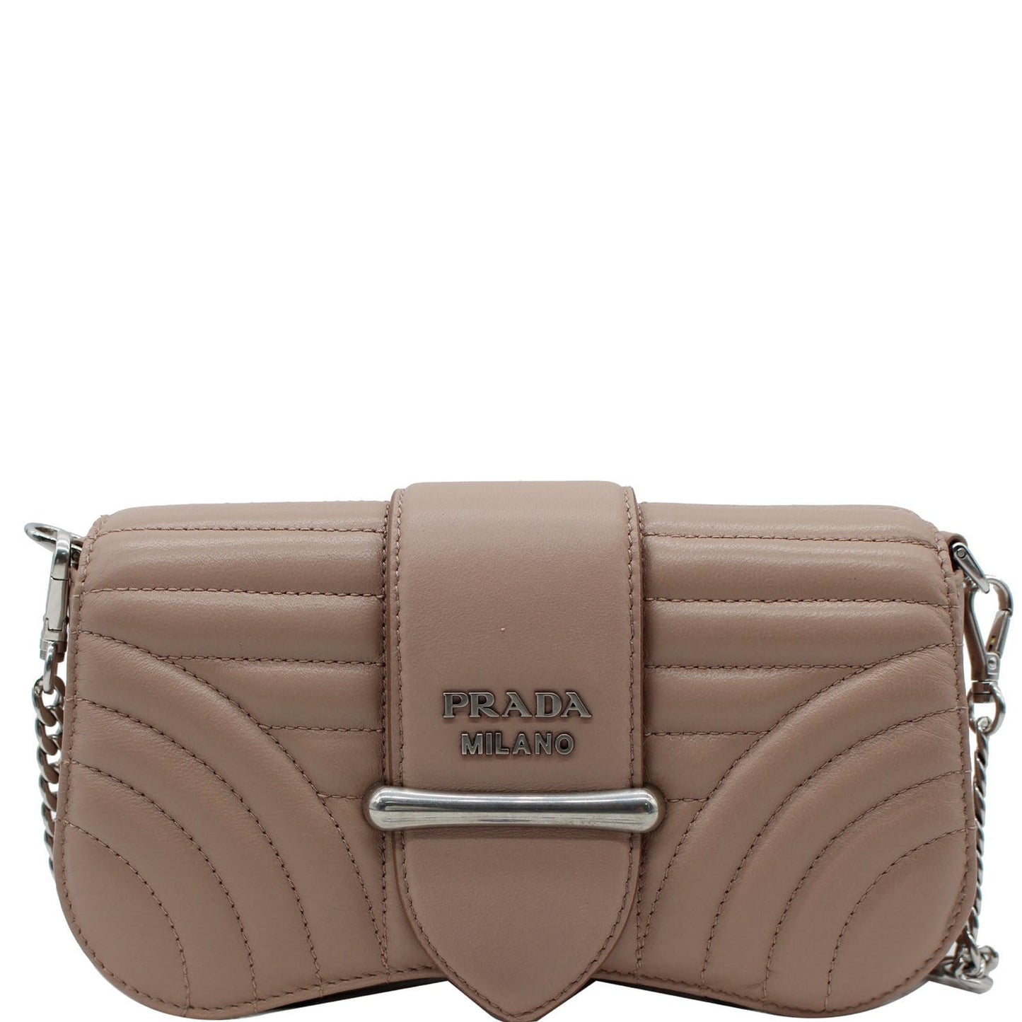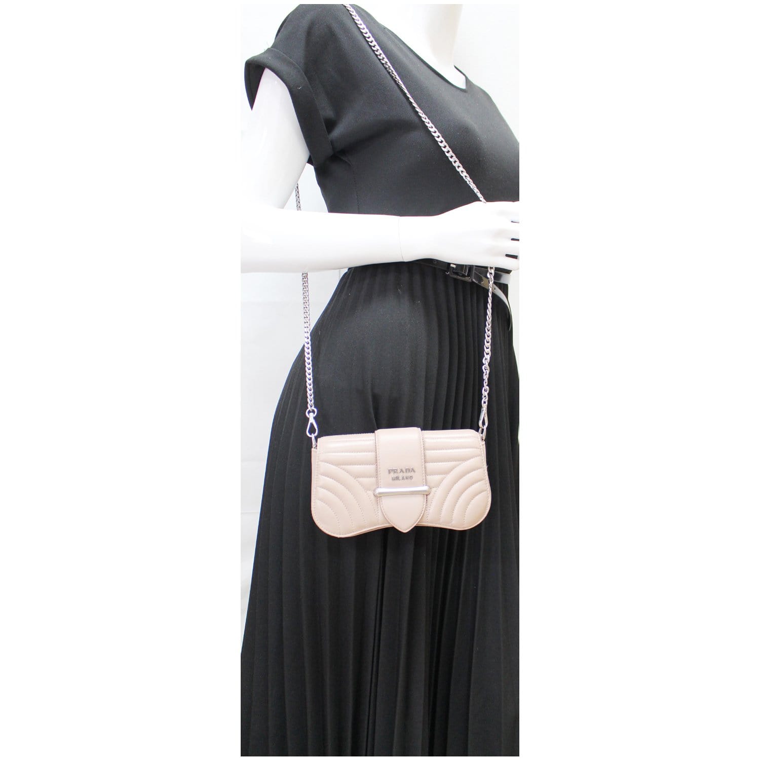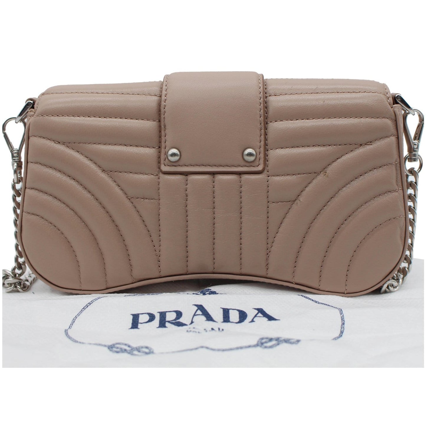 PRADA Mini Sidonie Nappa Diagramme Leather Chain Crossbody Bag Nude