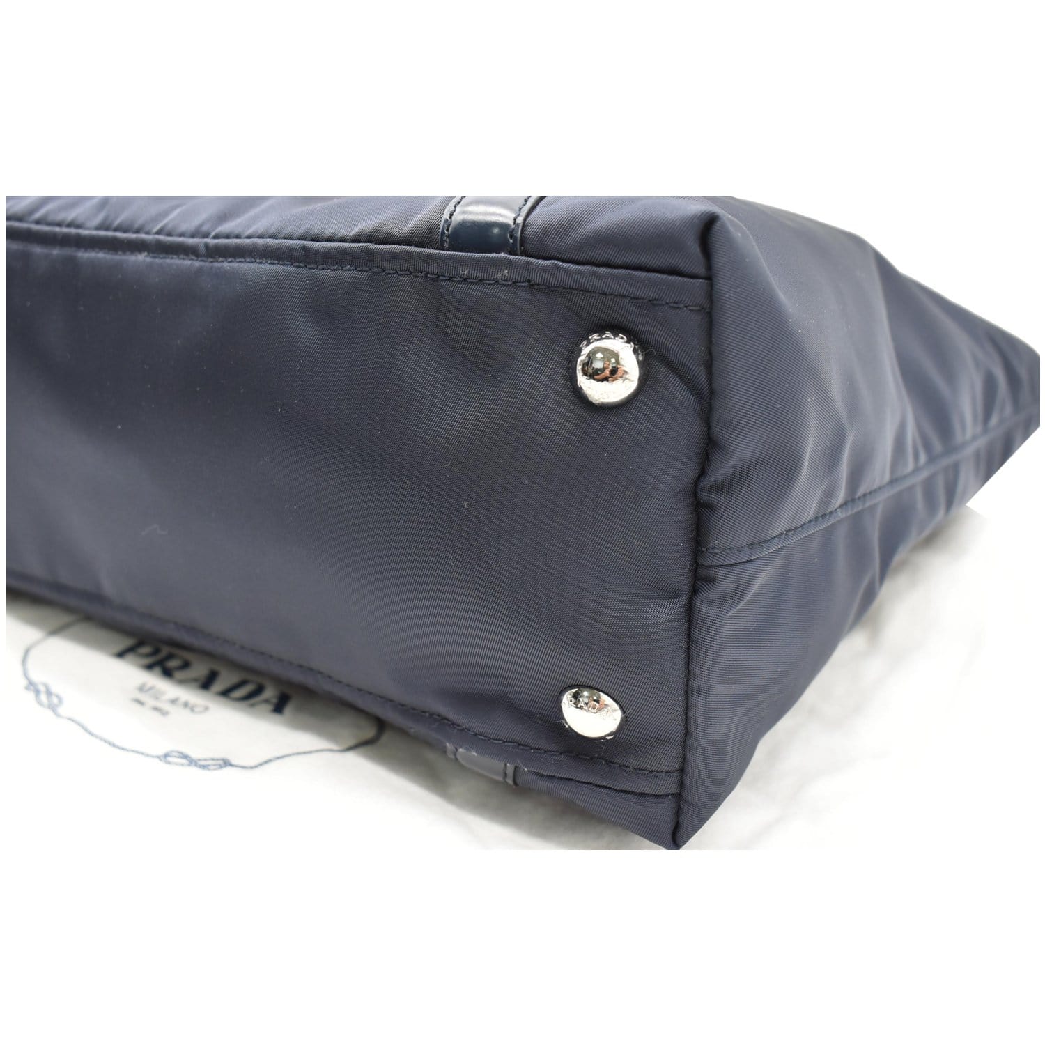 PRADA Nylon Leather Shopping Tote Shoulder Bag Dark Blue
