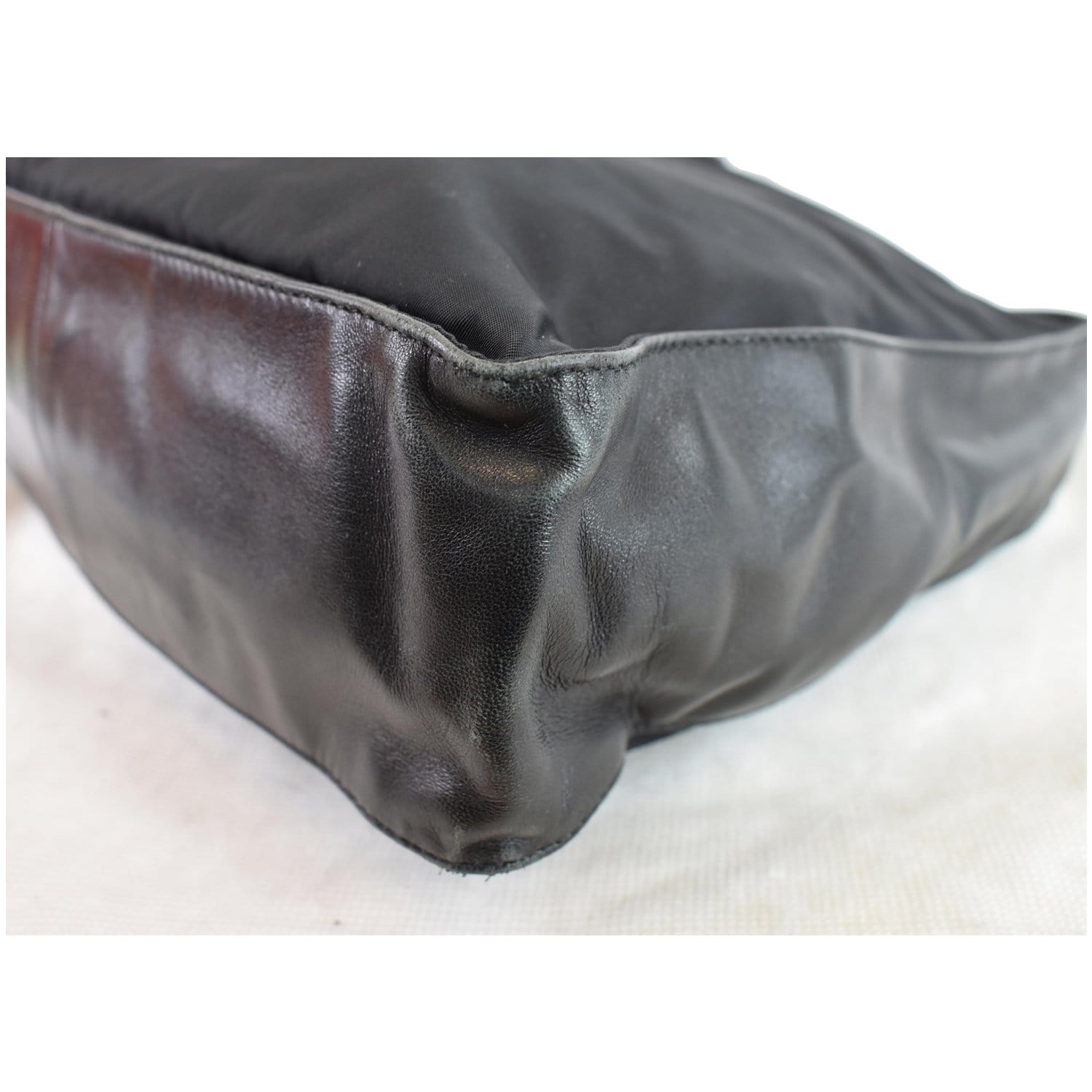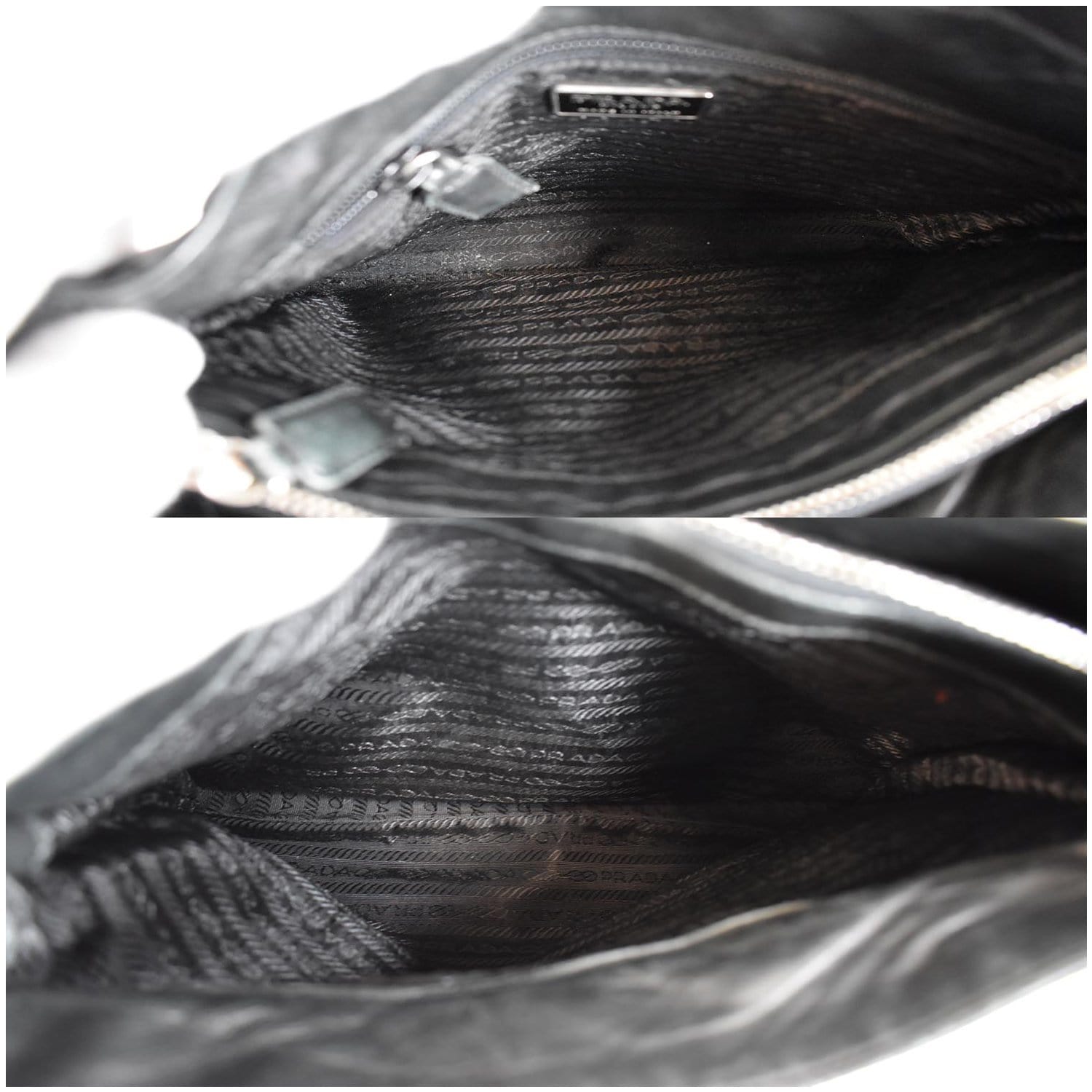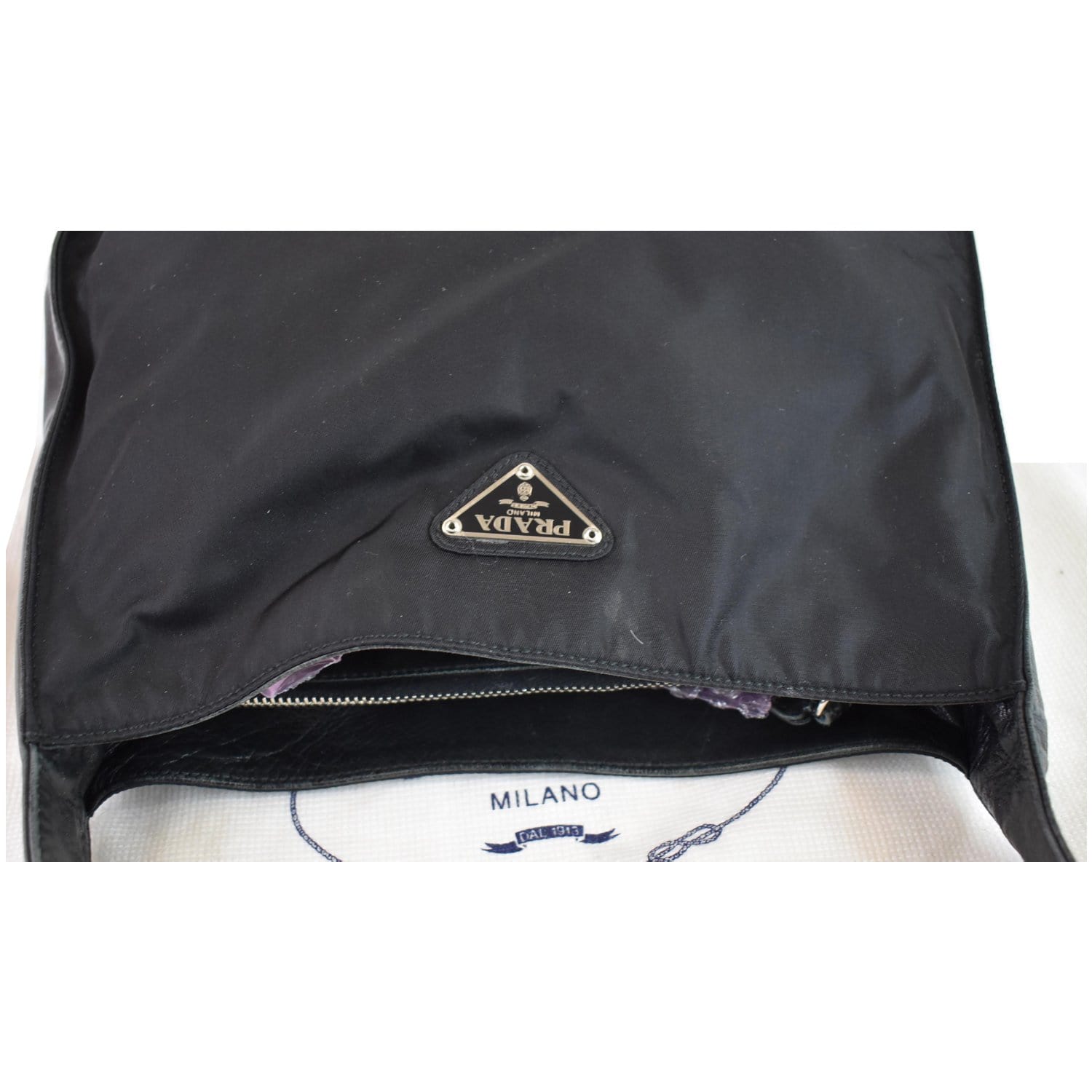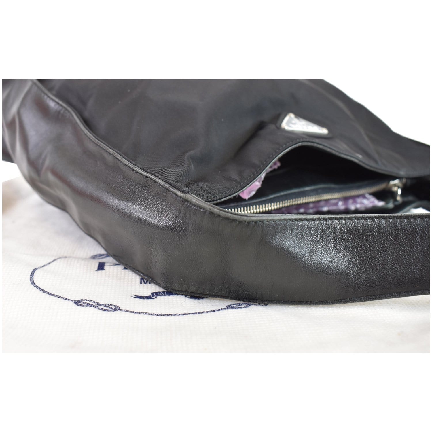 PRADA Nylon Leather Strap Shoulder Bag Black