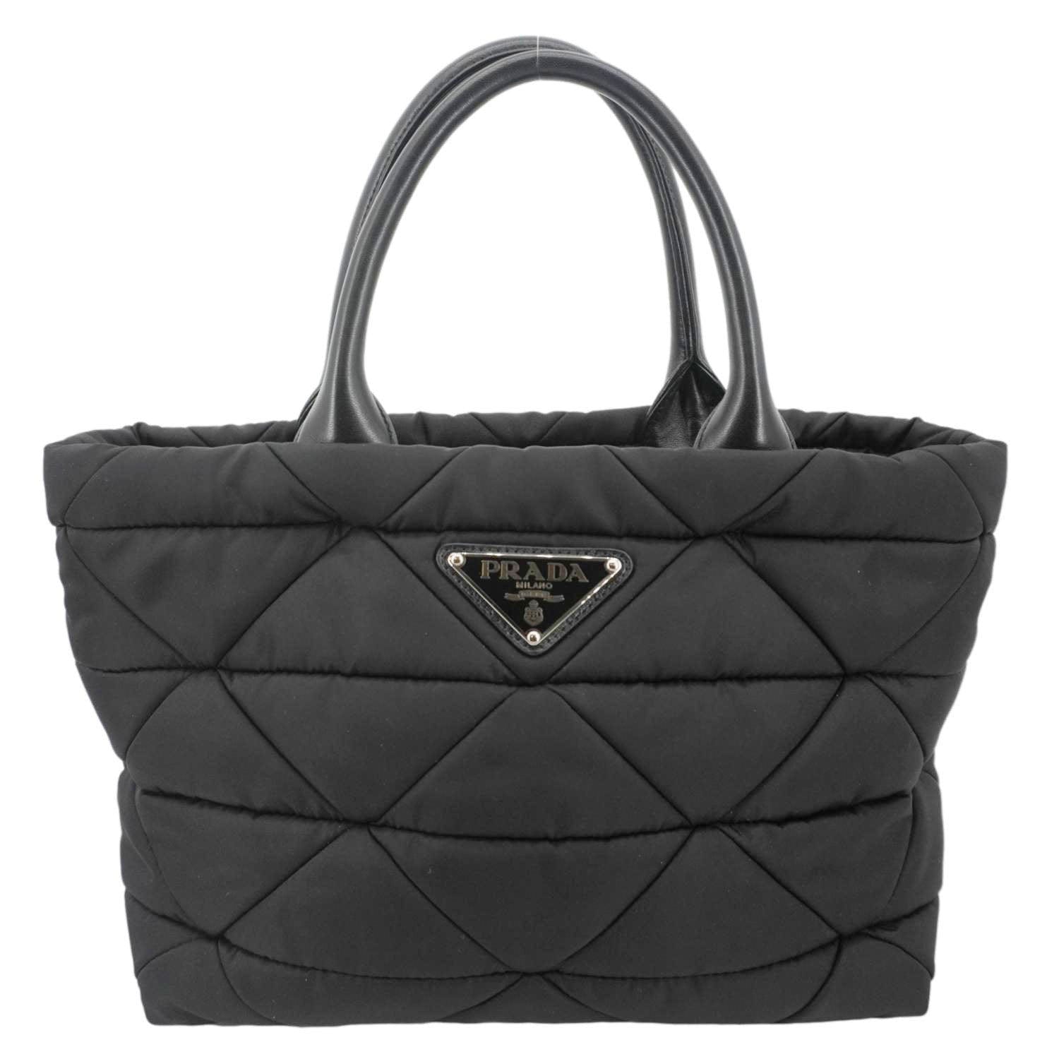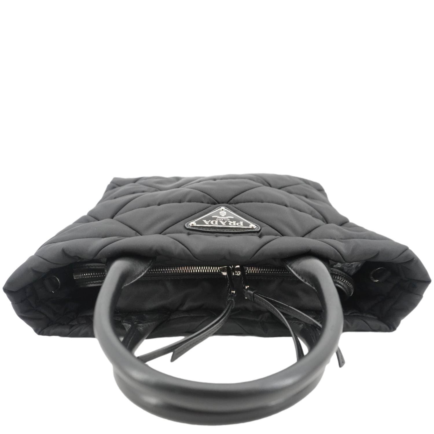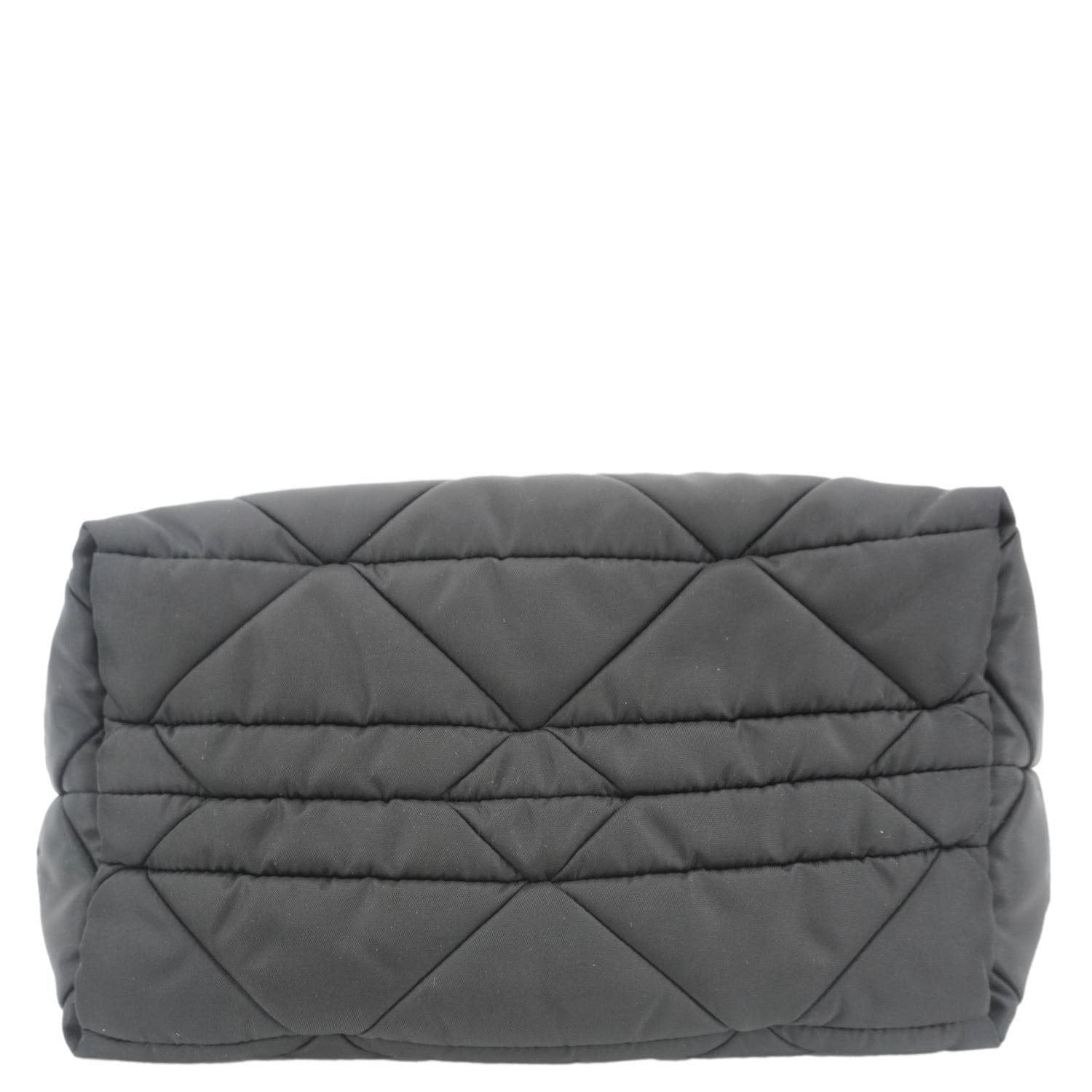 The PRADA Padded Re-Nylon Tote Bag in Black combines luxury with sustainability, featuring a sleek padded design crafted from recycled nylon. Its spacious interior and signature enamel triangle logo make it both stylish and functional for everyday use.