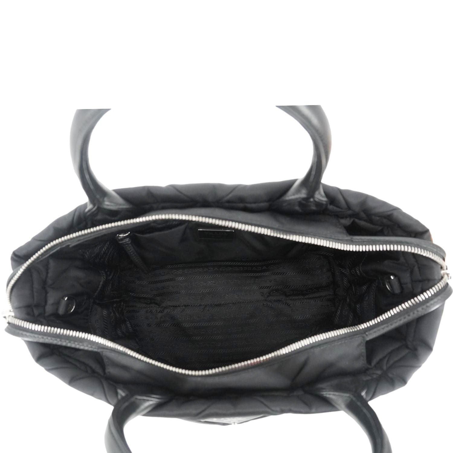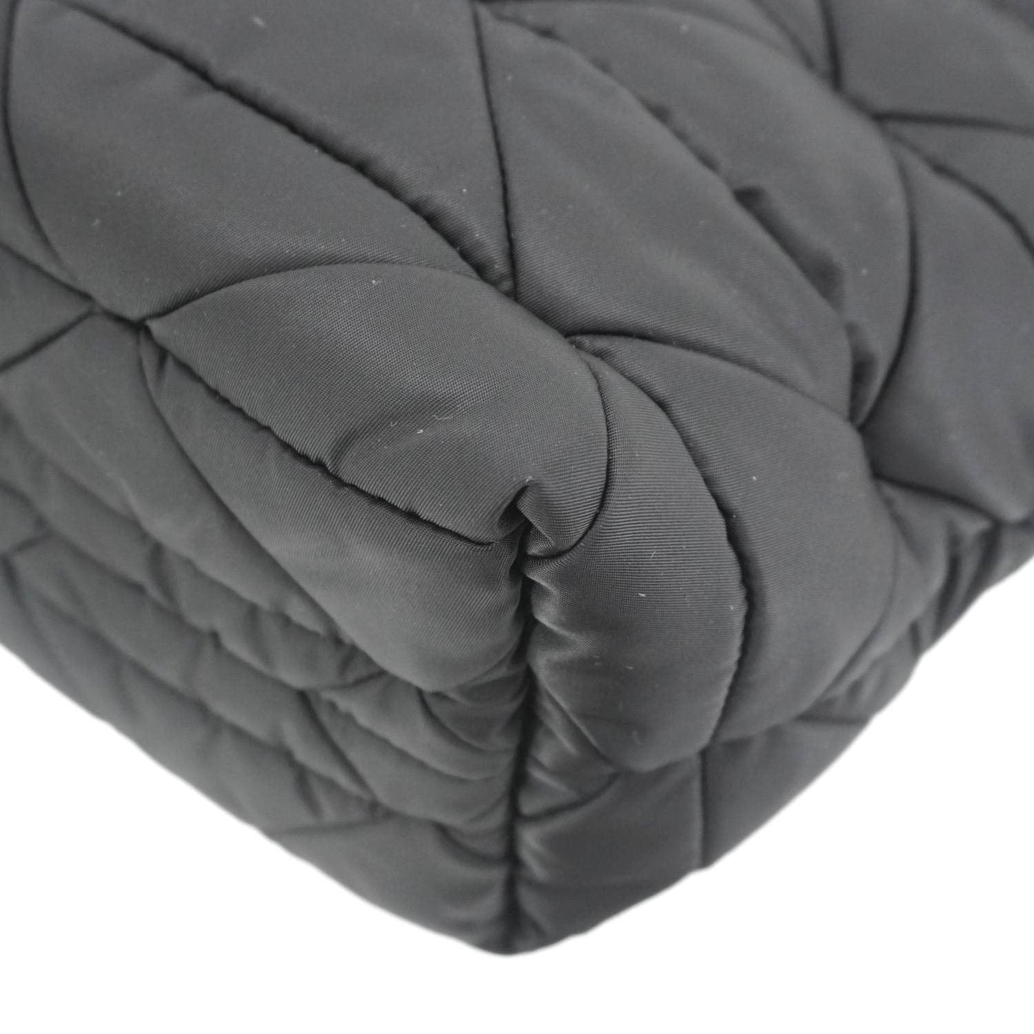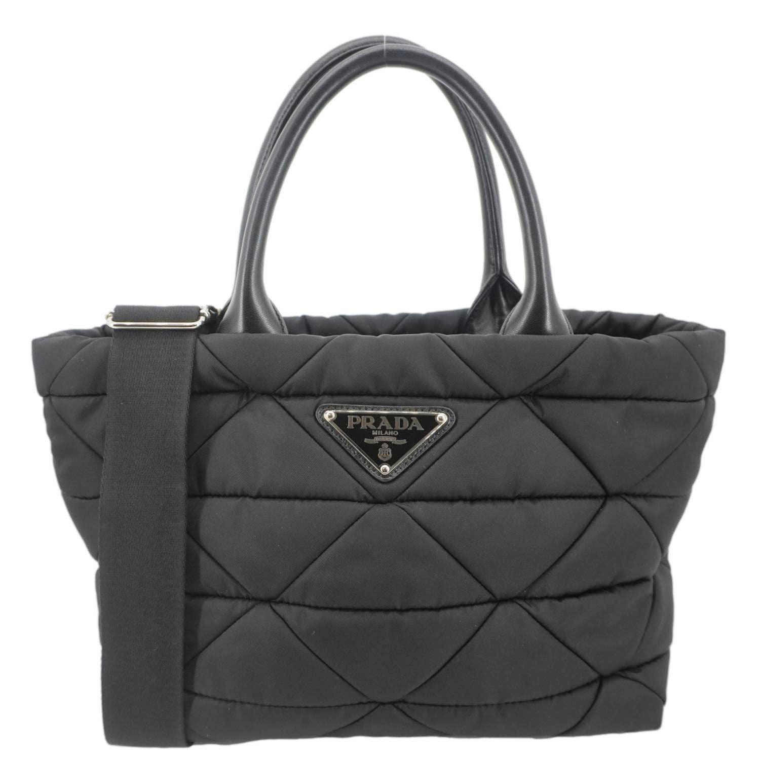 The PRADA Padded Re-Nylon Tote Bag in Black combines luxury with sustainability, featuring a sleek padded design crafted from recycled nylon. Its spacious interior and signature enamel triangle logo make it both stylish and functional for everyday use.