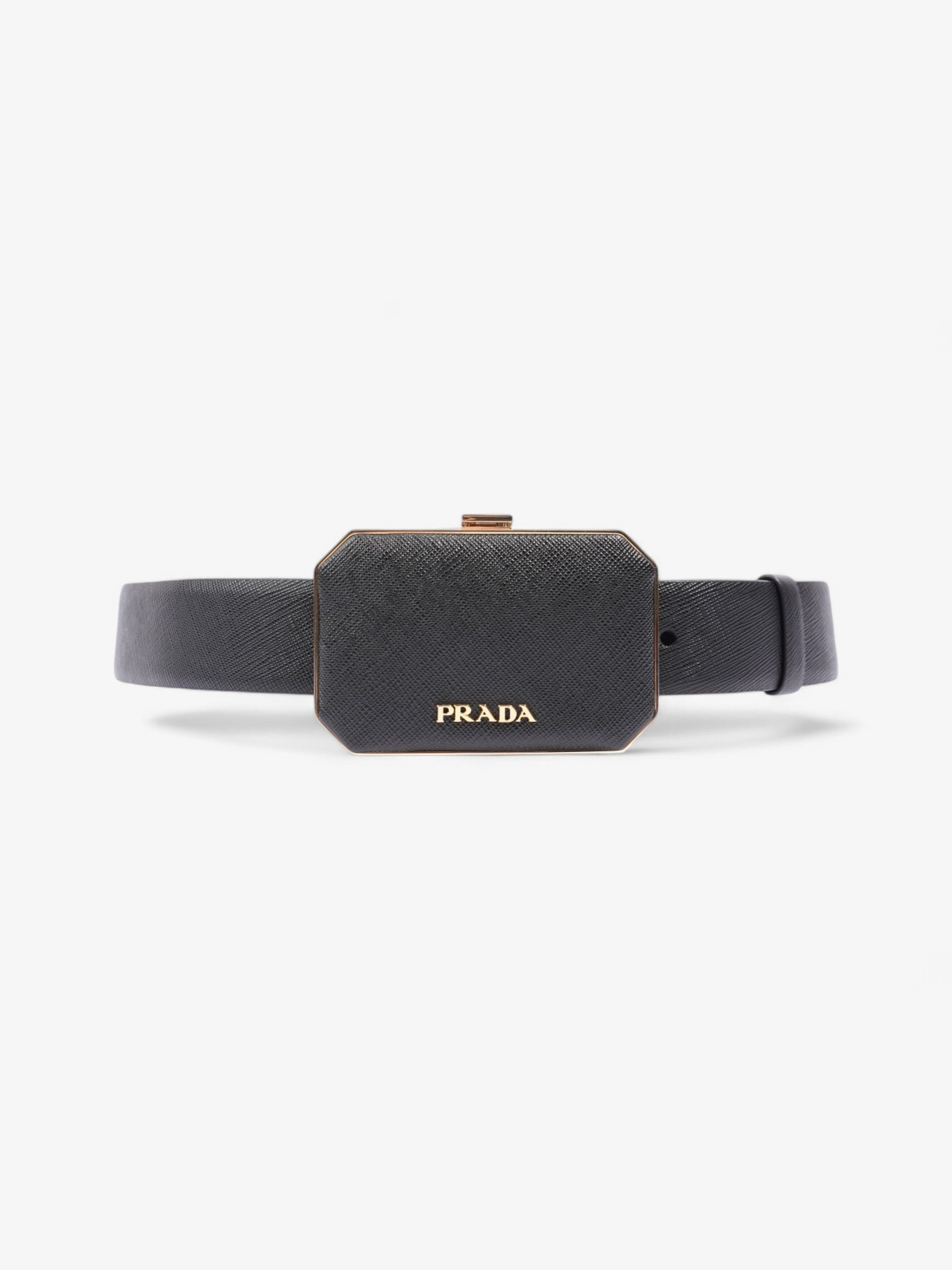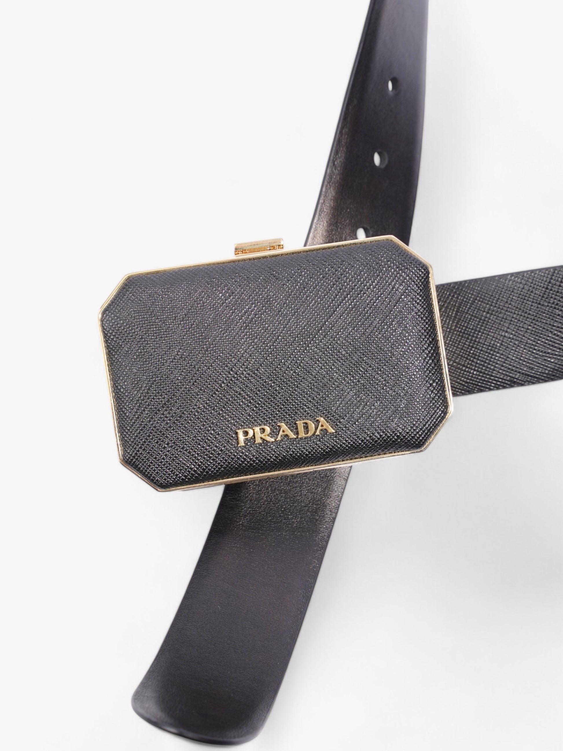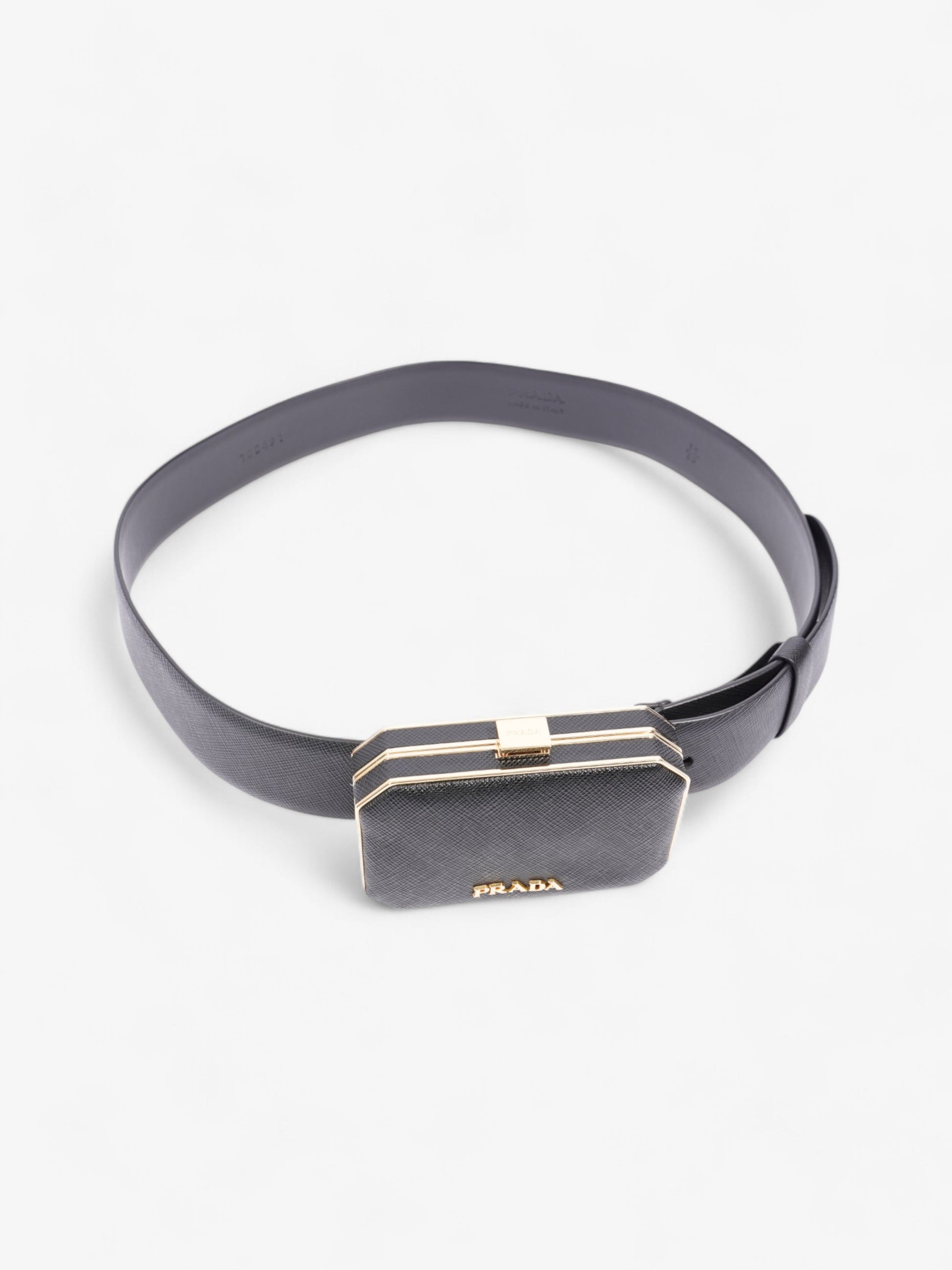 Prada Octagon Logo Belt with Bag Black / Gold Saffiano Leather 80cm / 32"